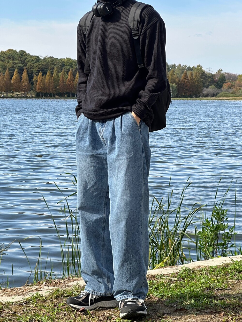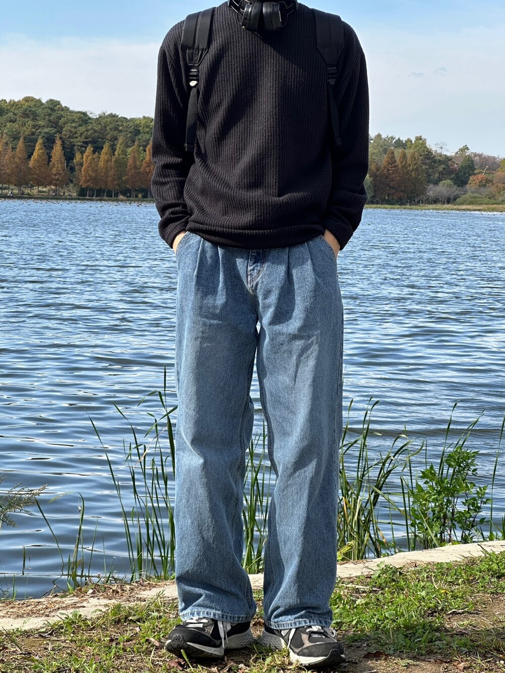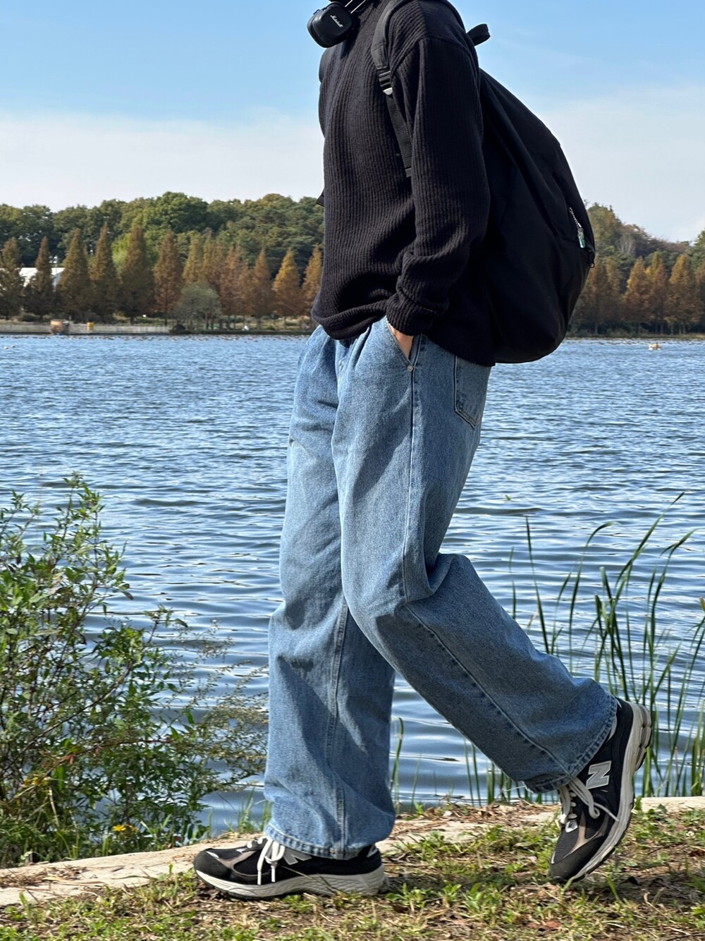 허리 반 밴딩 디테일 덕에 여유롭게 착용한 팬츠 !