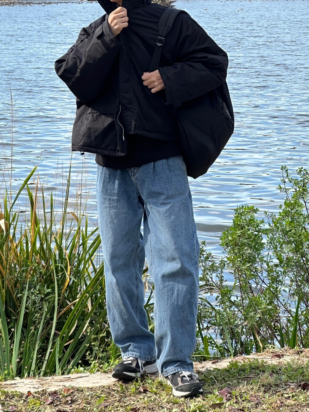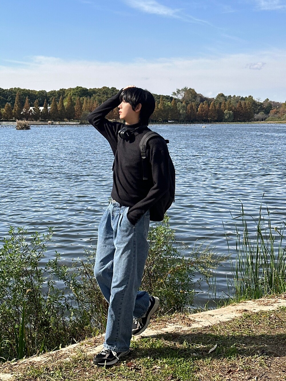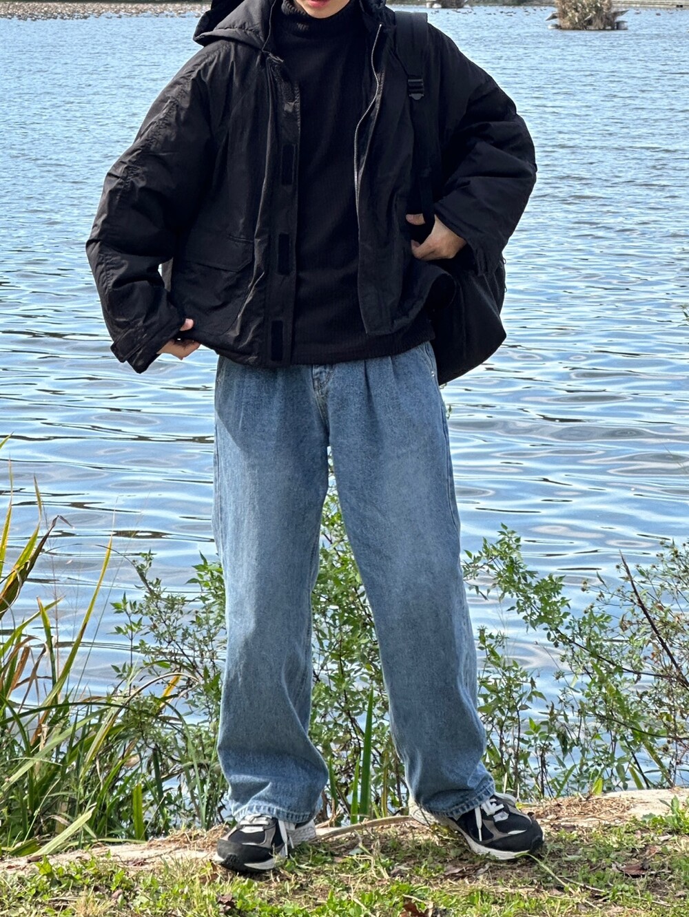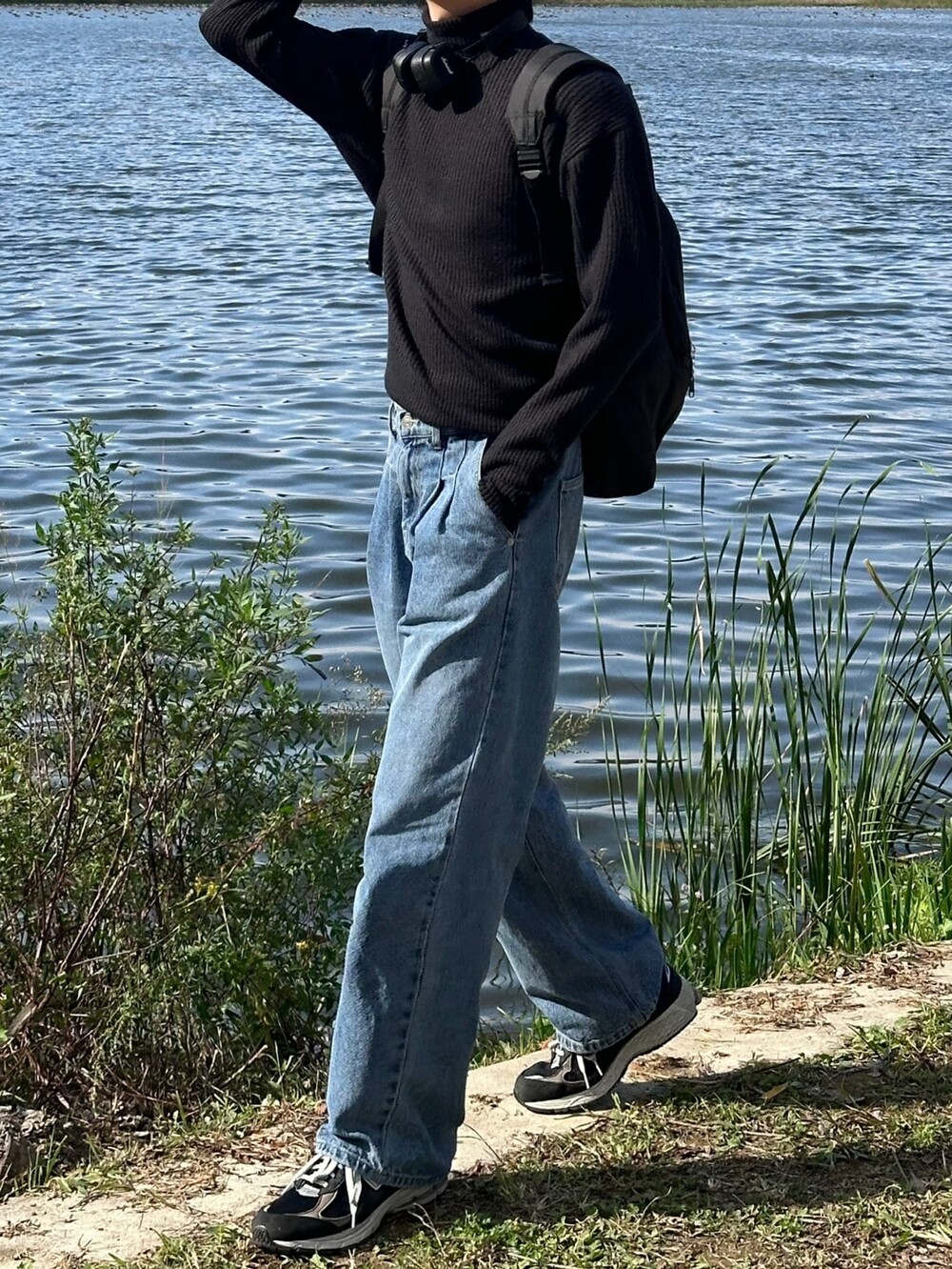 허리 반 밴딩 디테일 덕에 여유롭게 착용한 팬츠 !