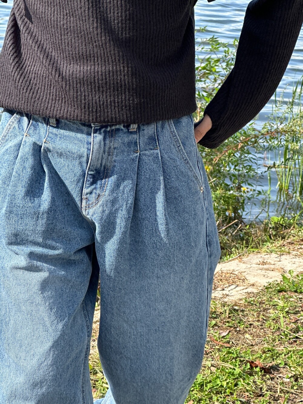 앞 판에 투턱 고인치 디테일이 가리기 너무 아까워서 배바지로