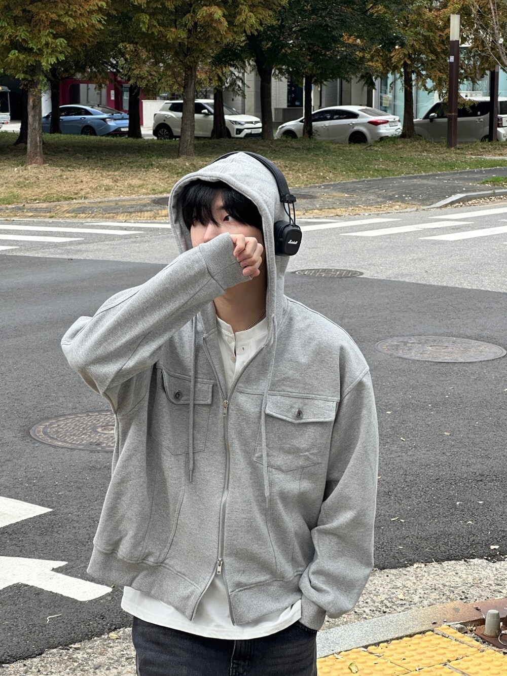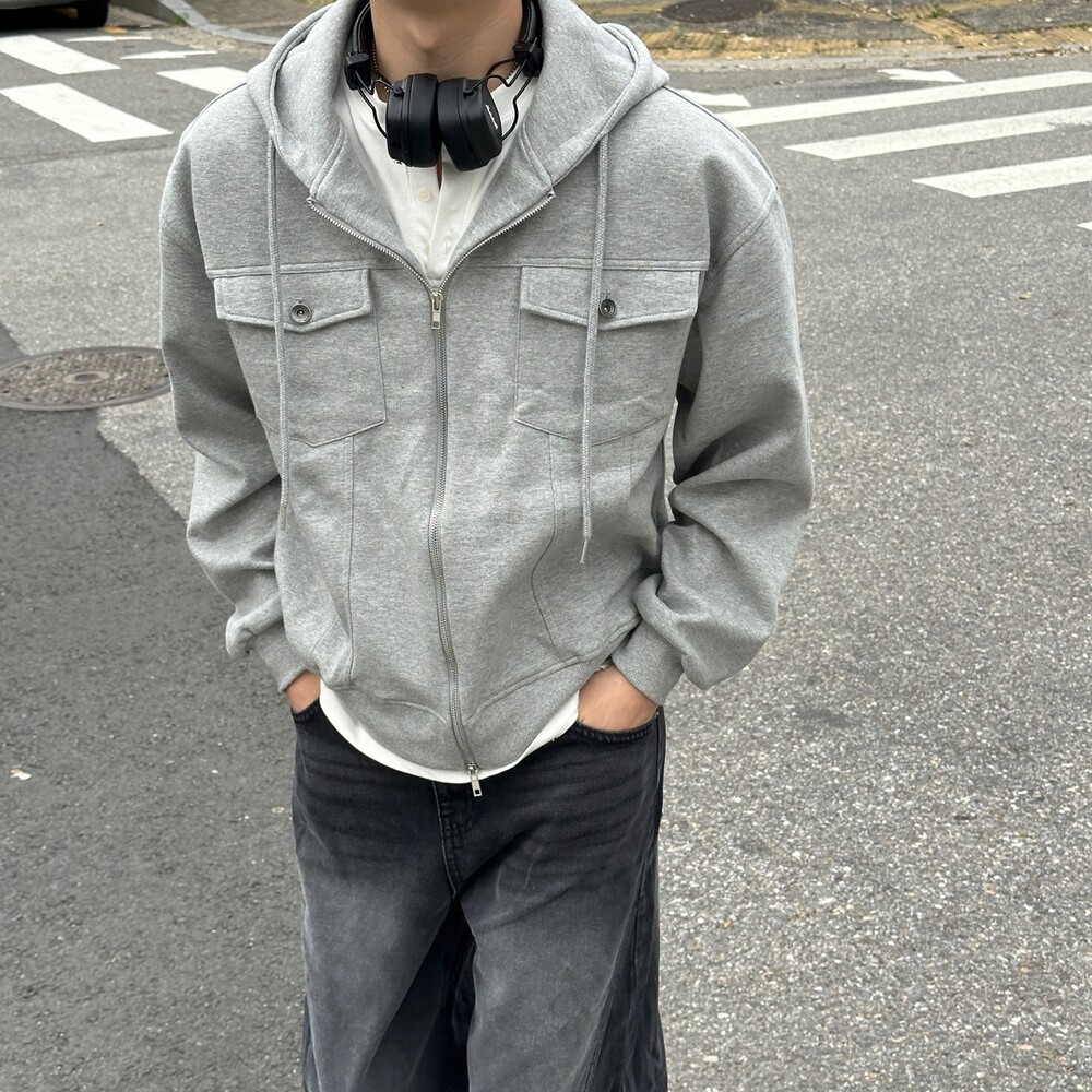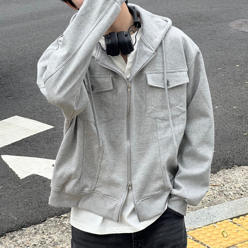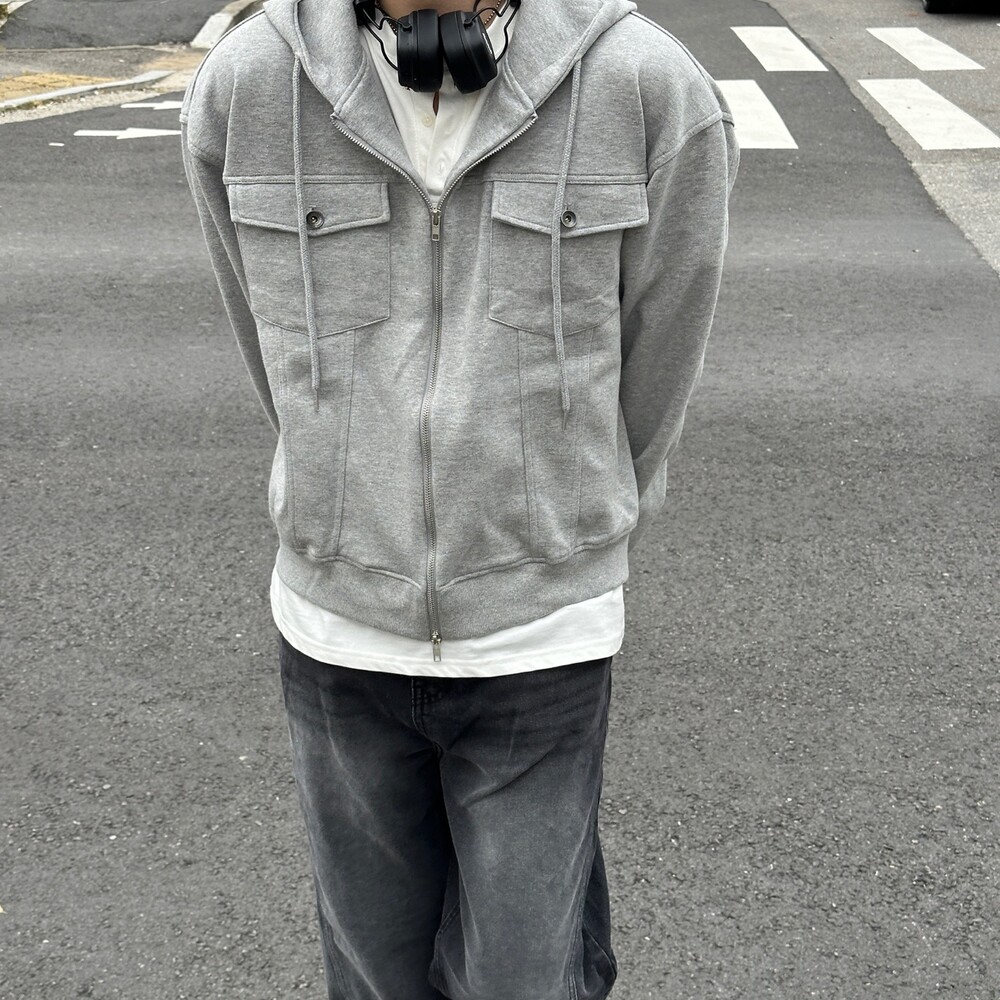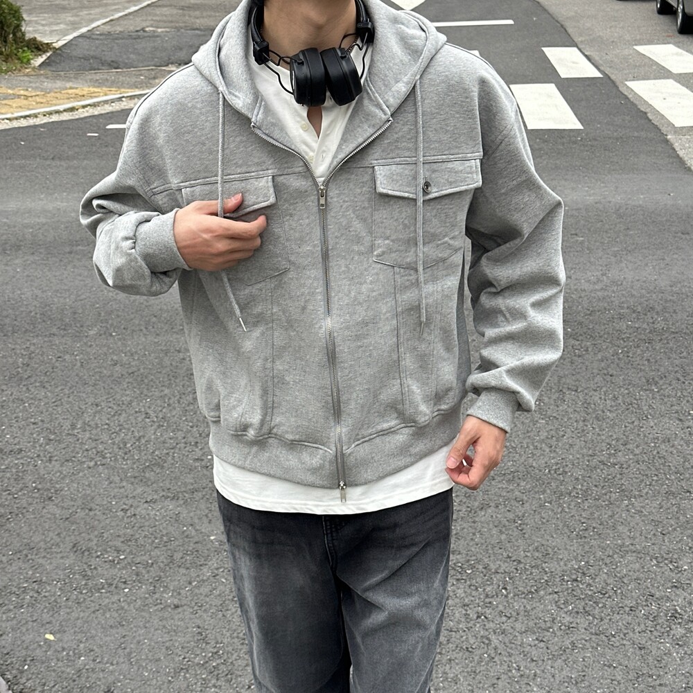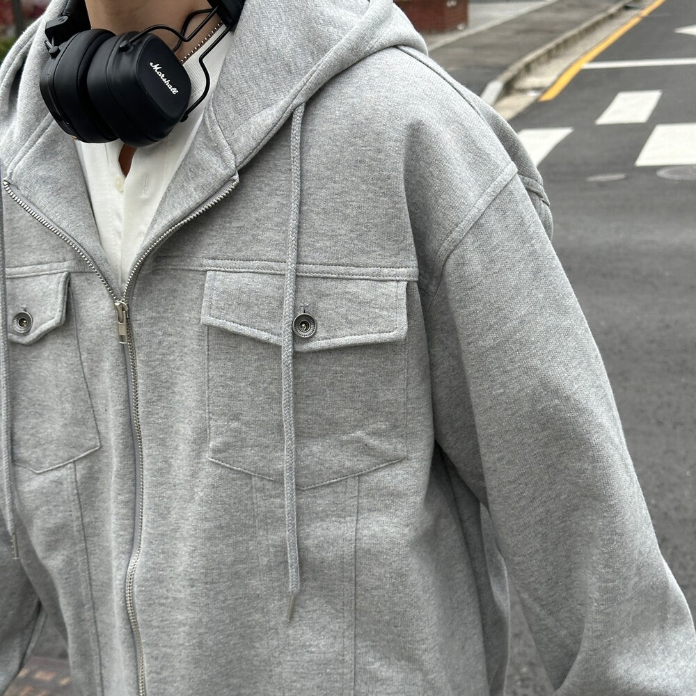 심심한 후드집업에 더 트렌디한 트러커 자켓 디테일이 들어간 아이템 !