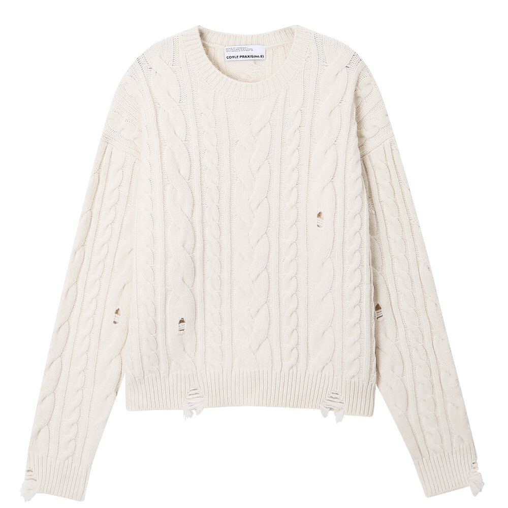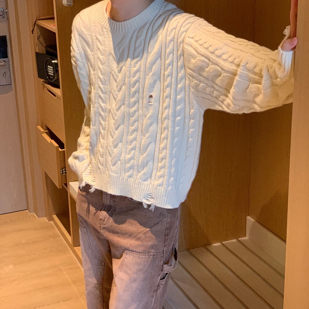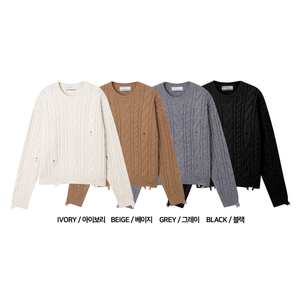 데미지 크롭 케이블 니트 (4color)