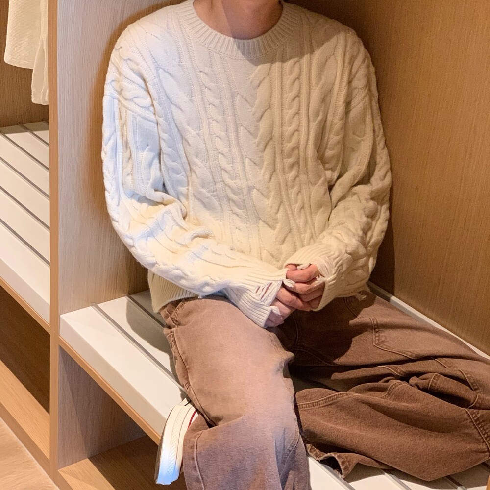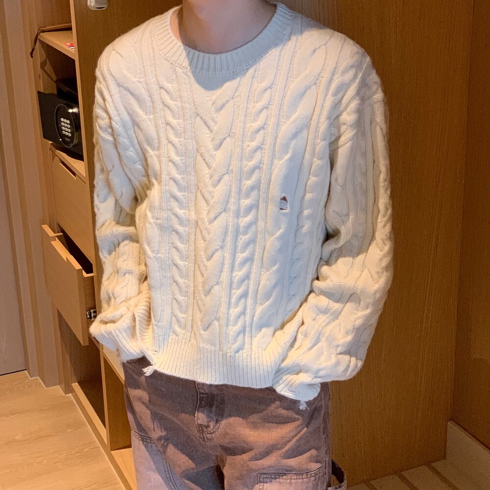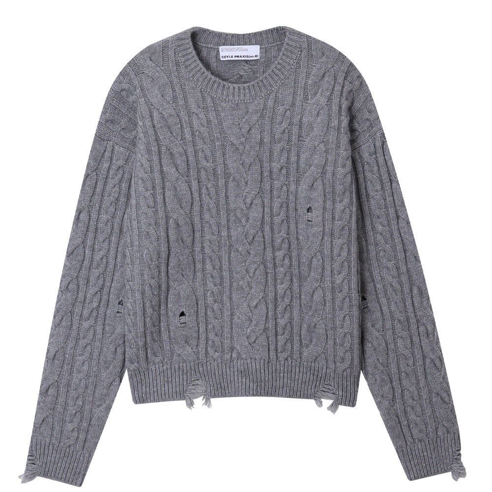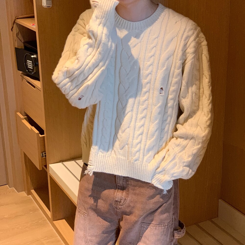 데미지 크롭 케이블 니트 (4color)
