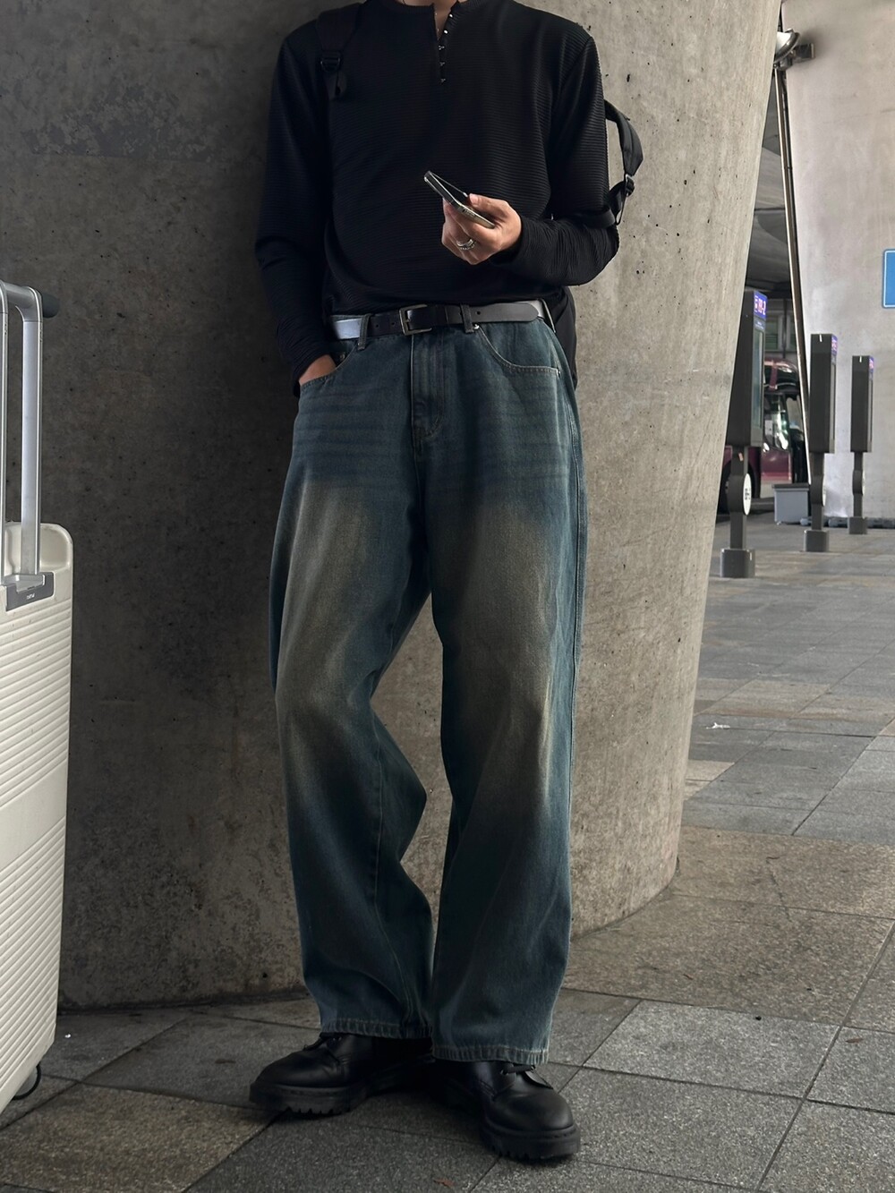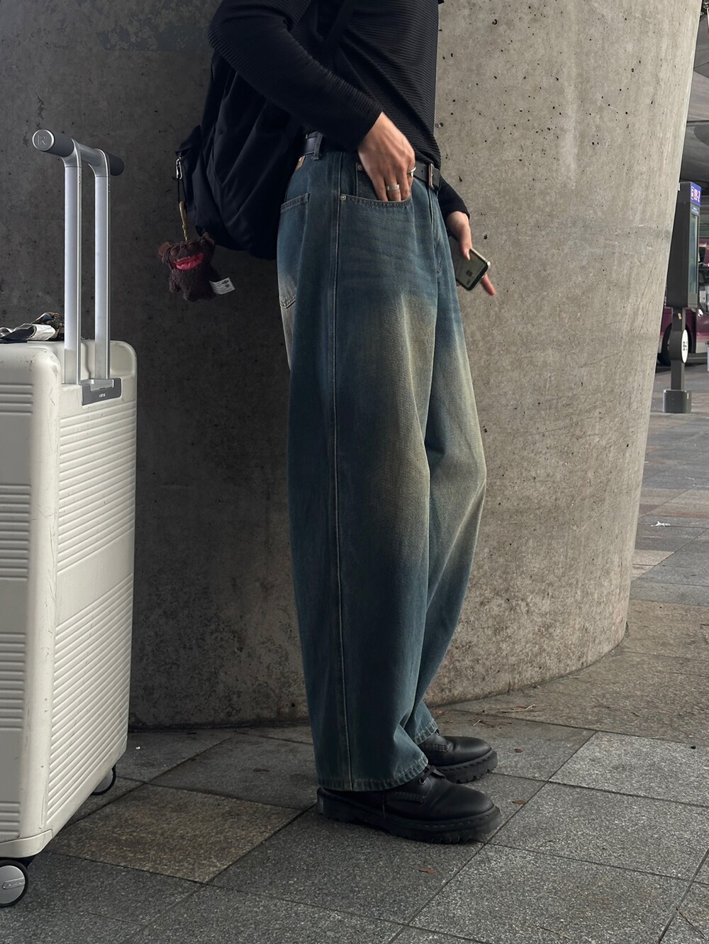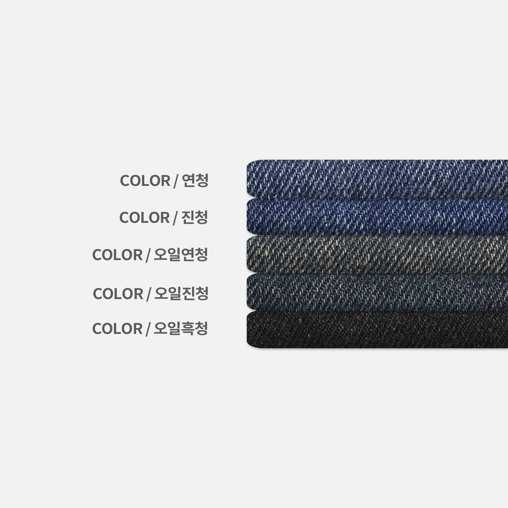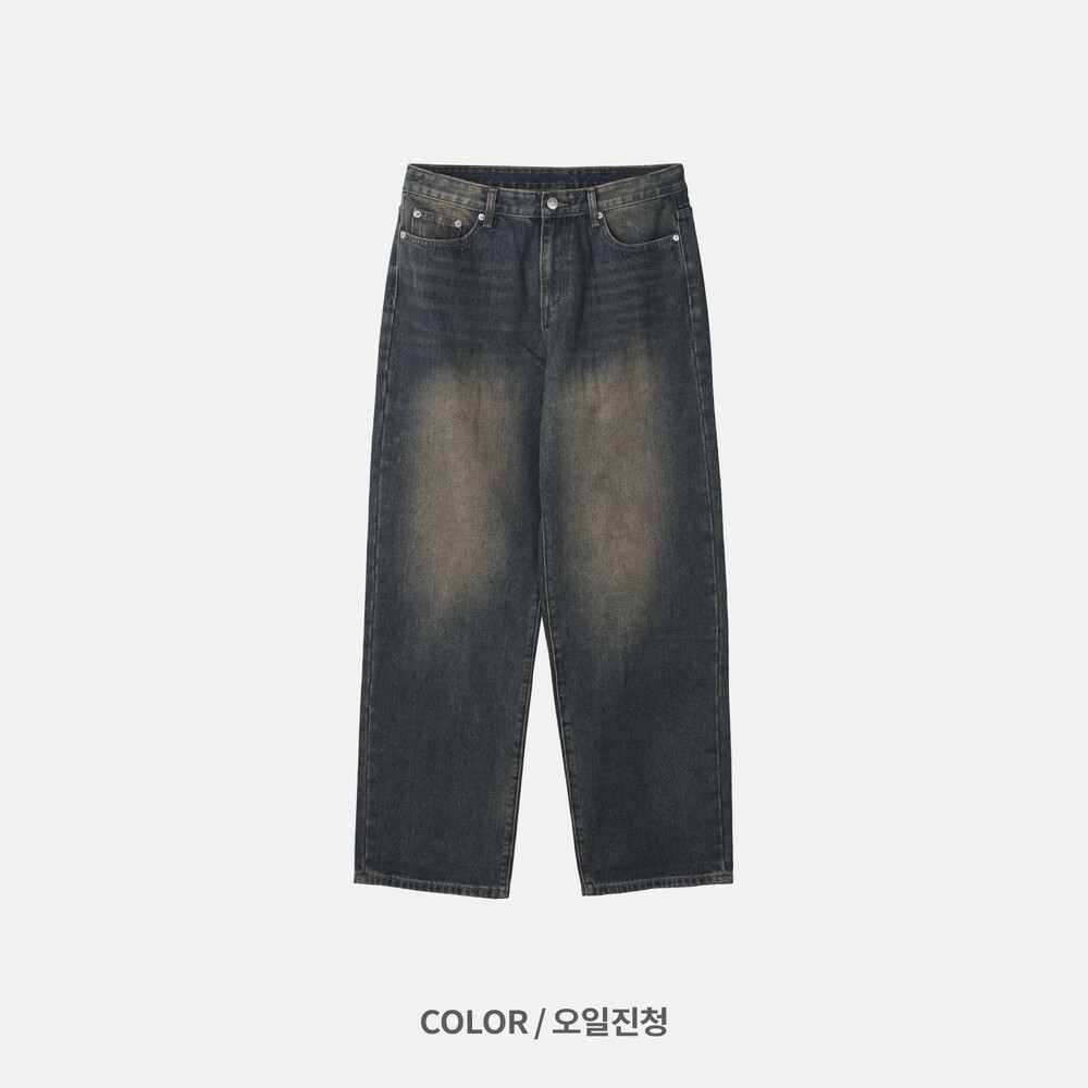 은은한 오일 진청 워싱감에 세미한 벌룬 핏으로 여유로운 느낌으로 착용하기 좋습니다