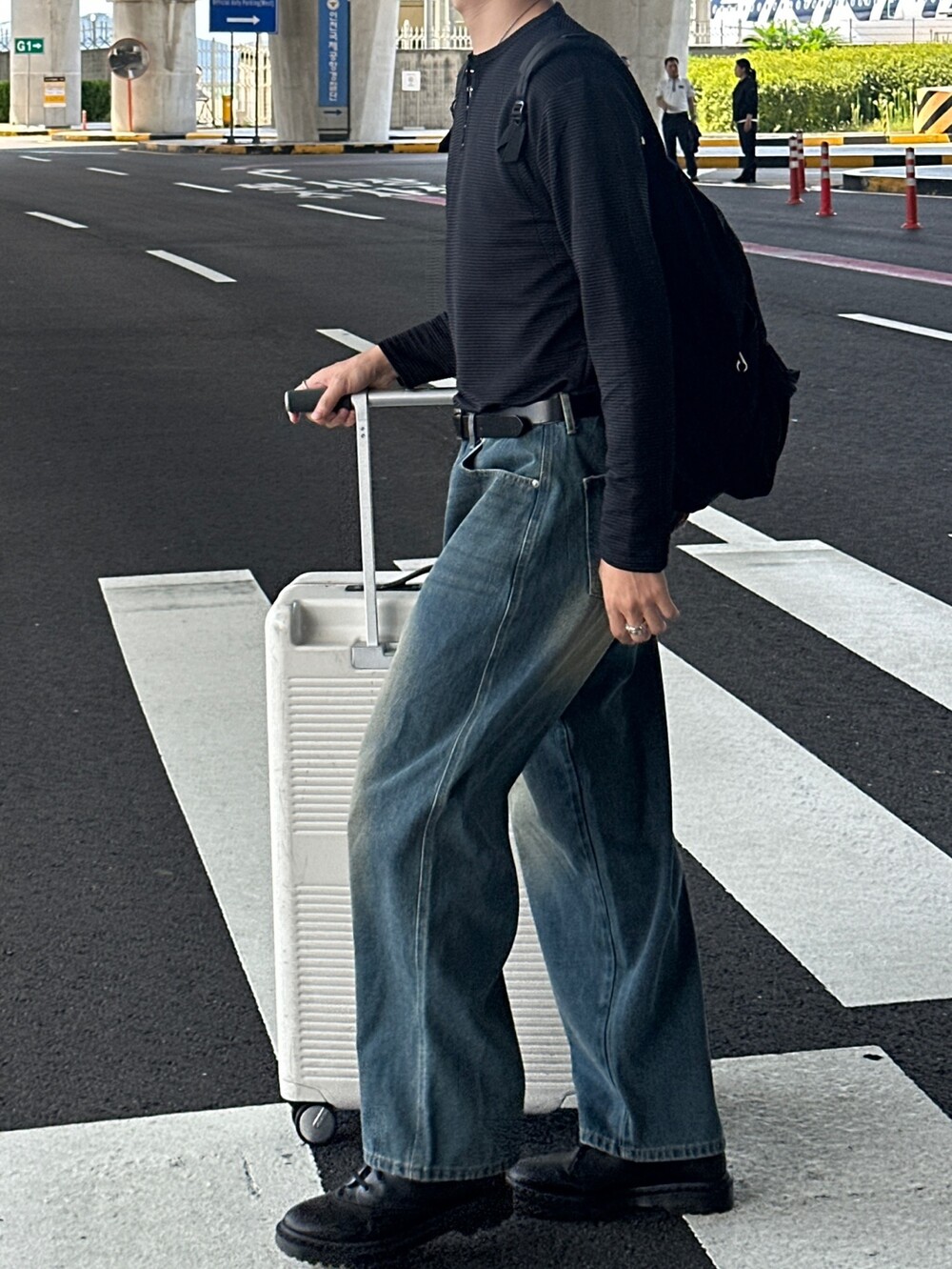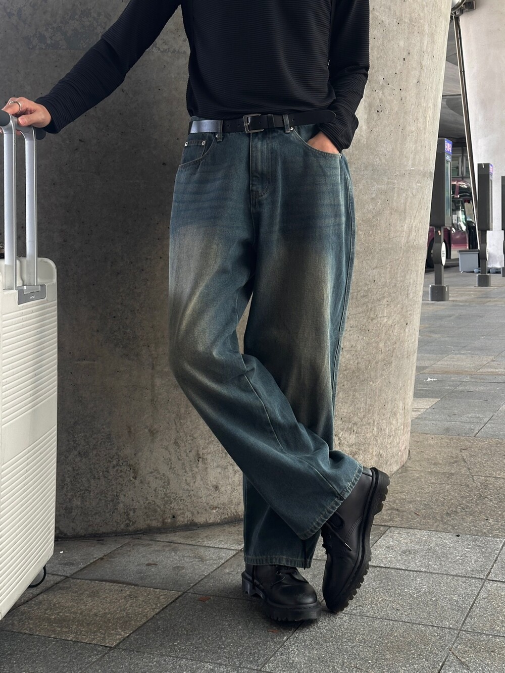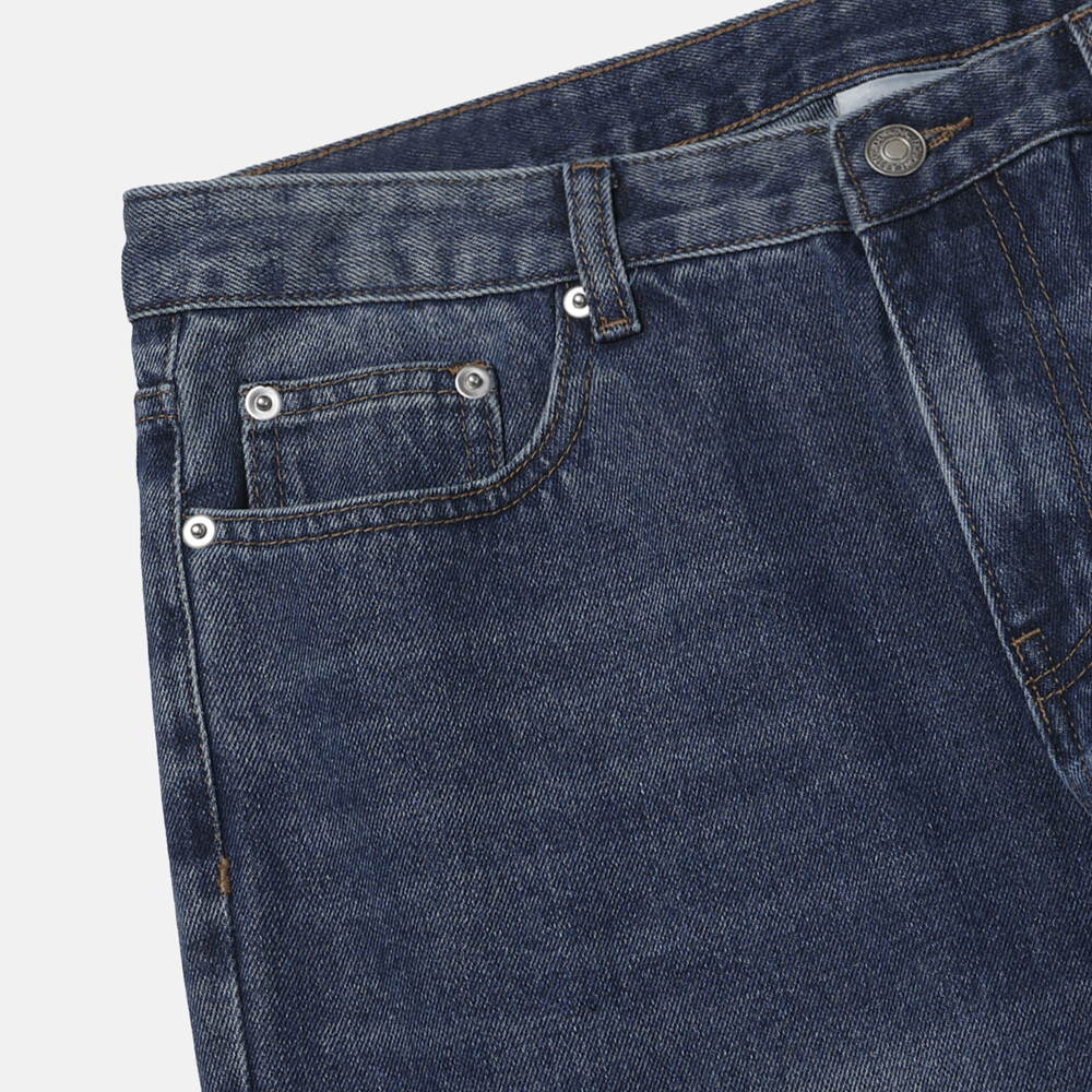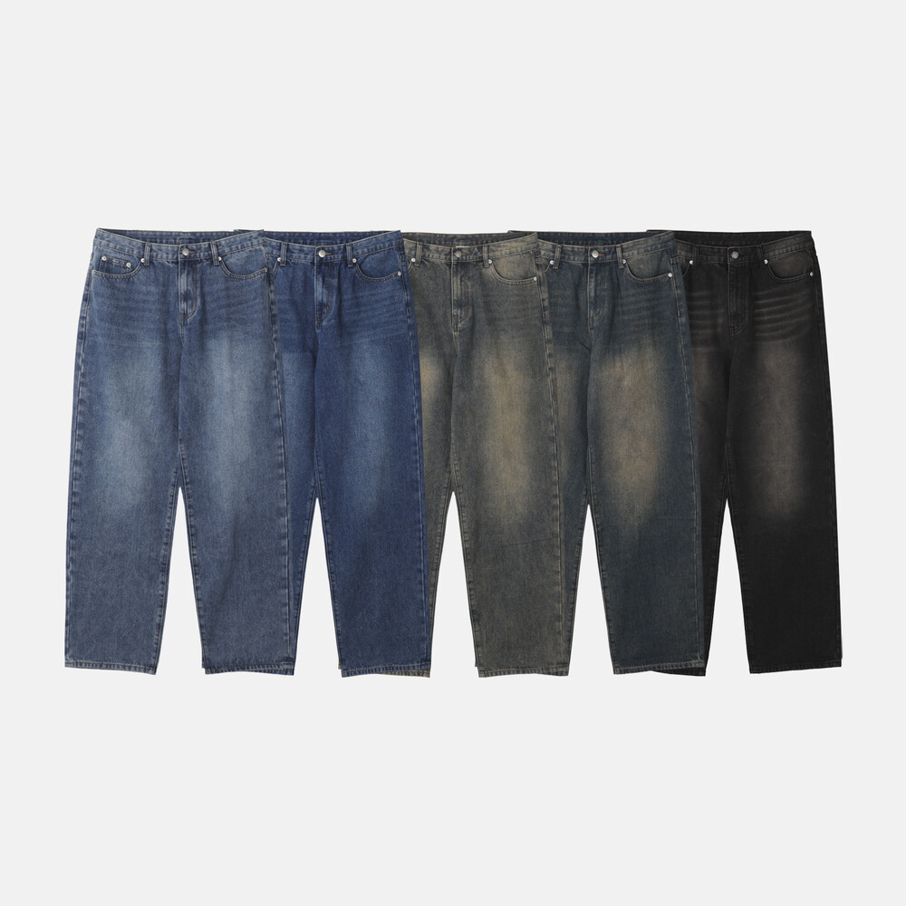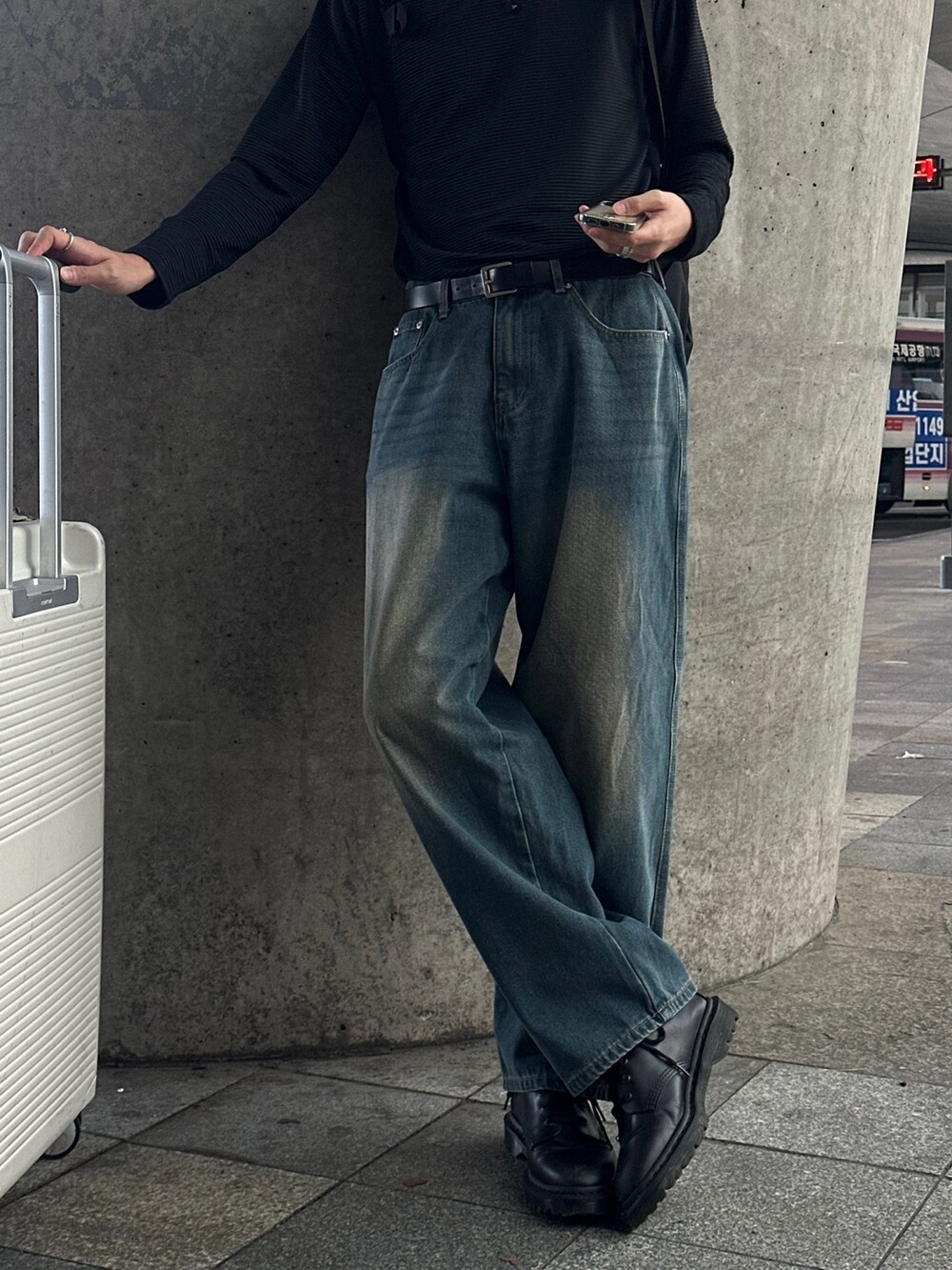 은은한 오일 진청 워싱감에 세미한 벌룬 핏으로 여유로운 느낌으로 착용하기 좋습니다