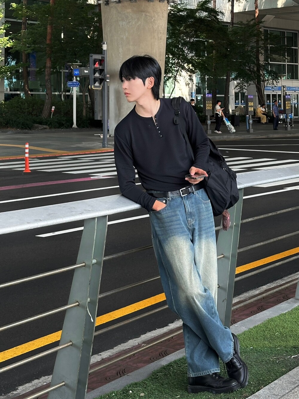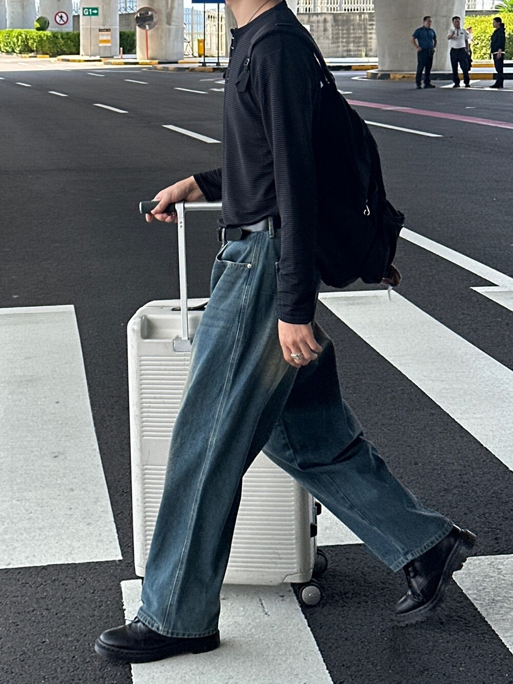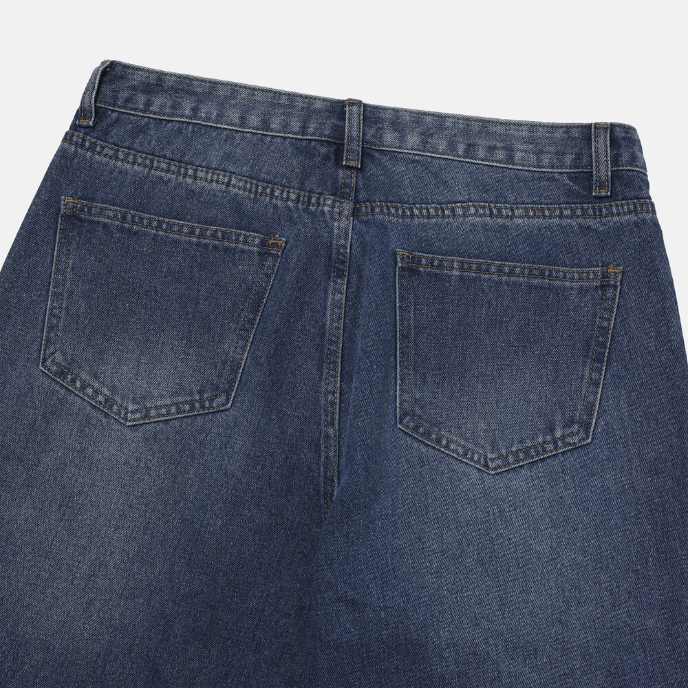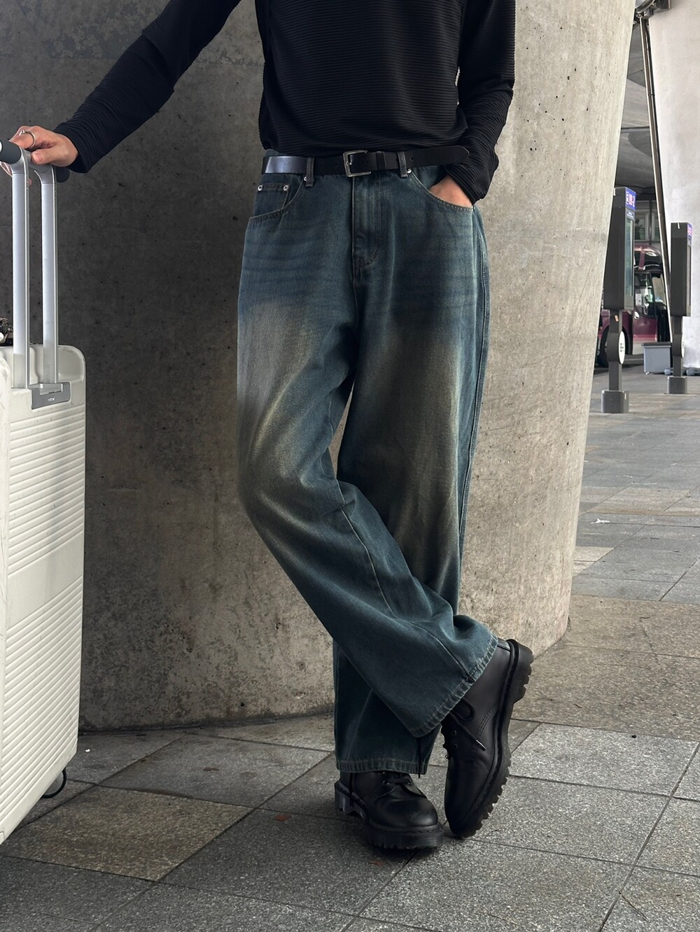 은은한 오일 진청 워싱감에 세미한 벌룬 핏으로 여유로운 느낌으로 착용하기 좋습니다