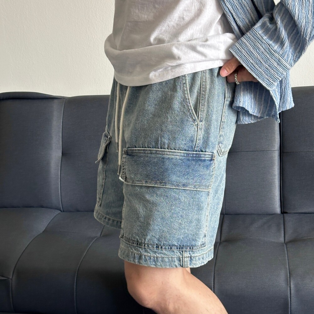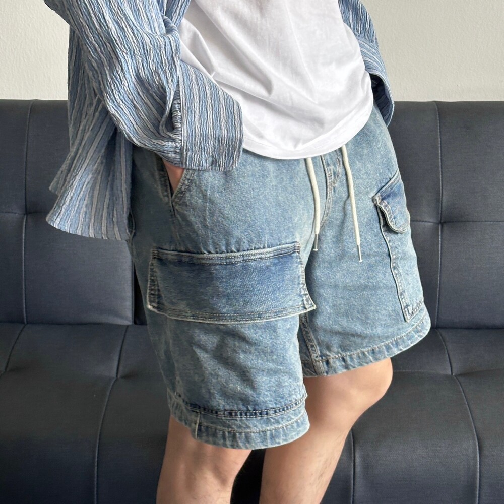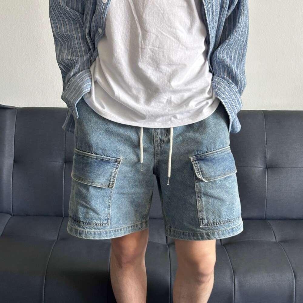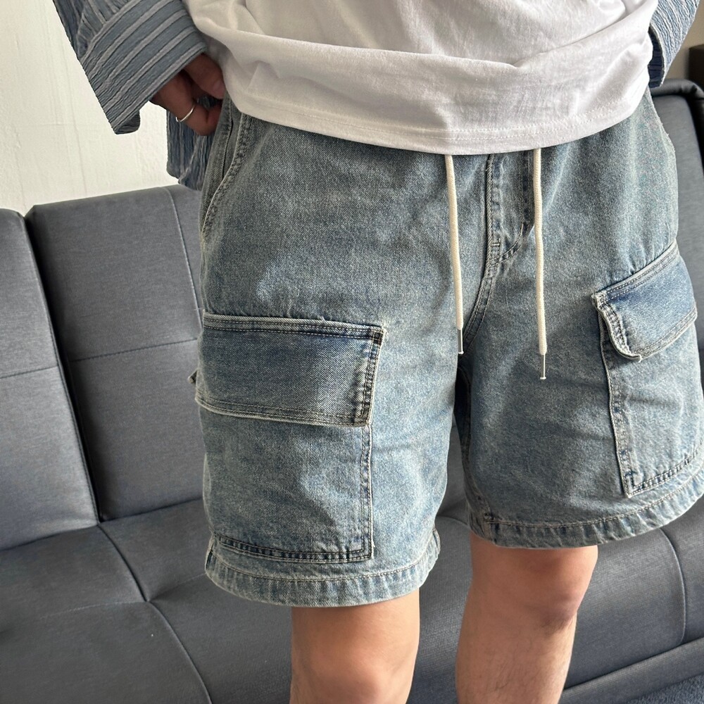 펄슨 밴딩 카고 버뮤다 데님팬츠