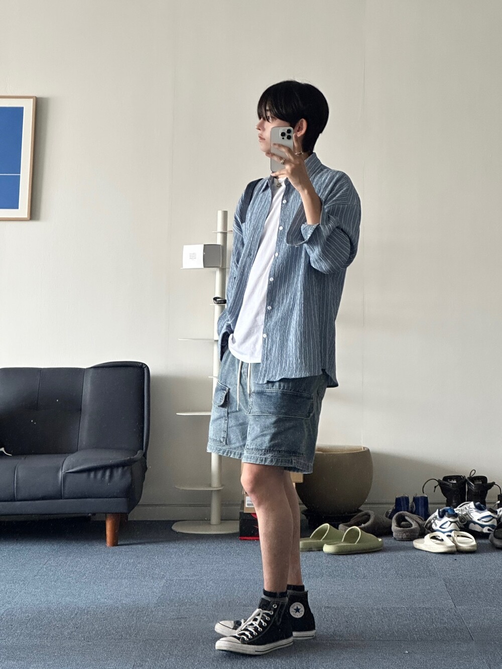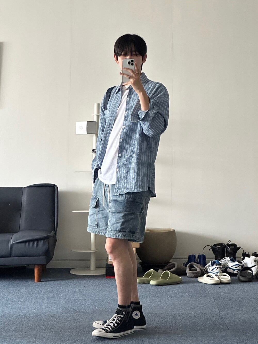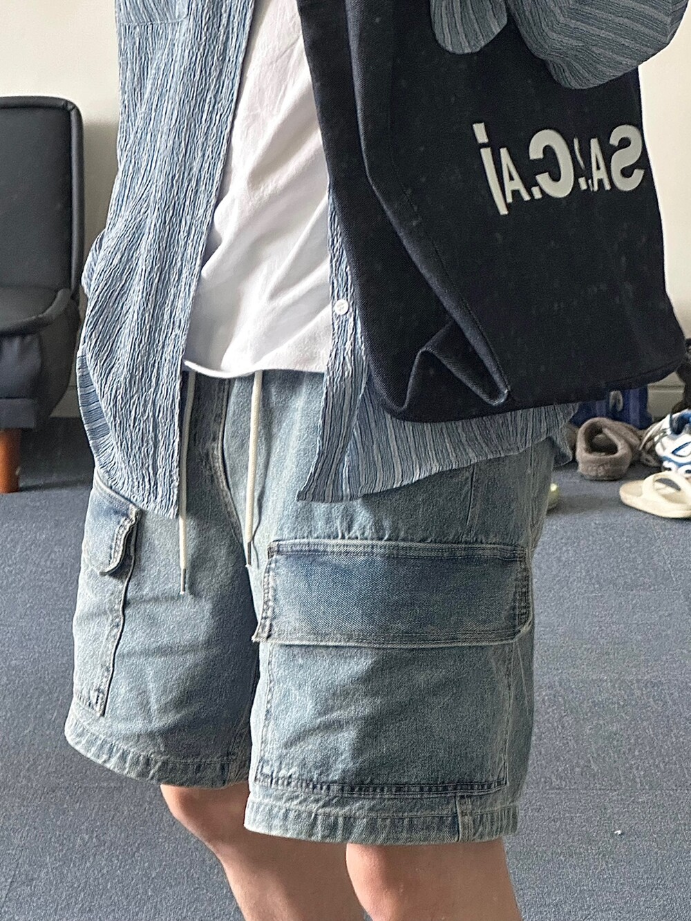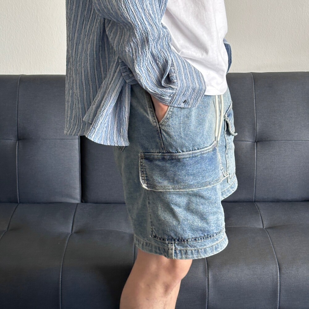 펄슨 밴딩 카고 버뮤다 데님팬츠