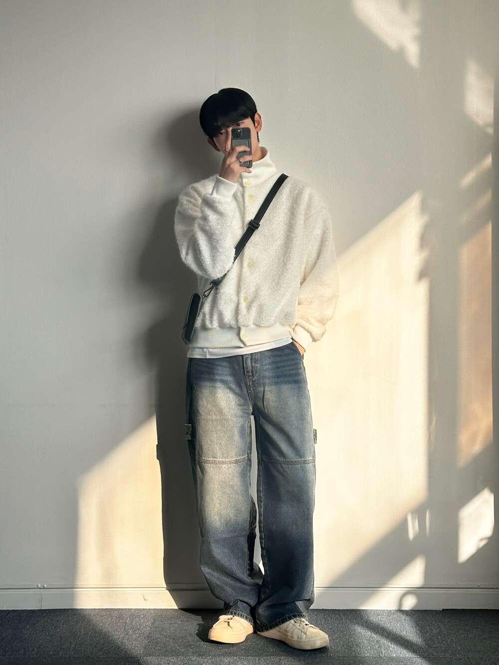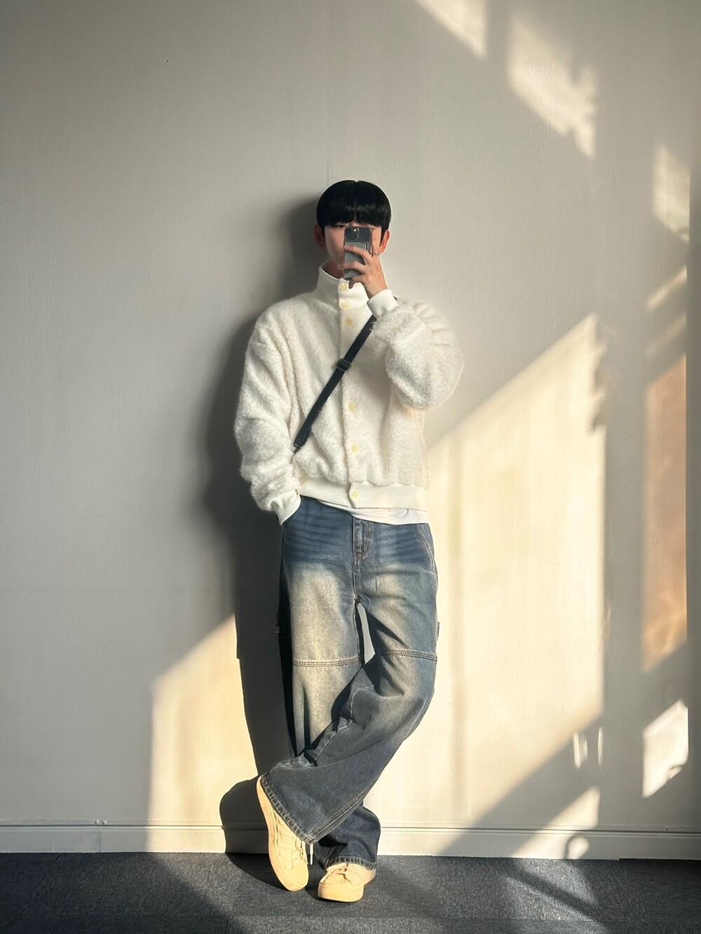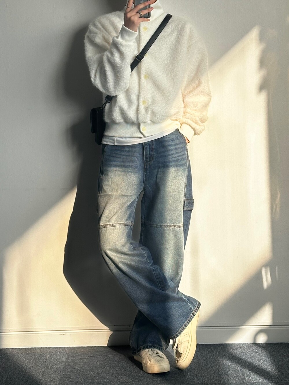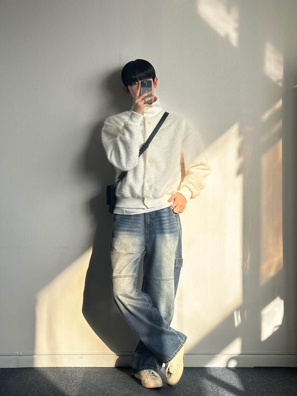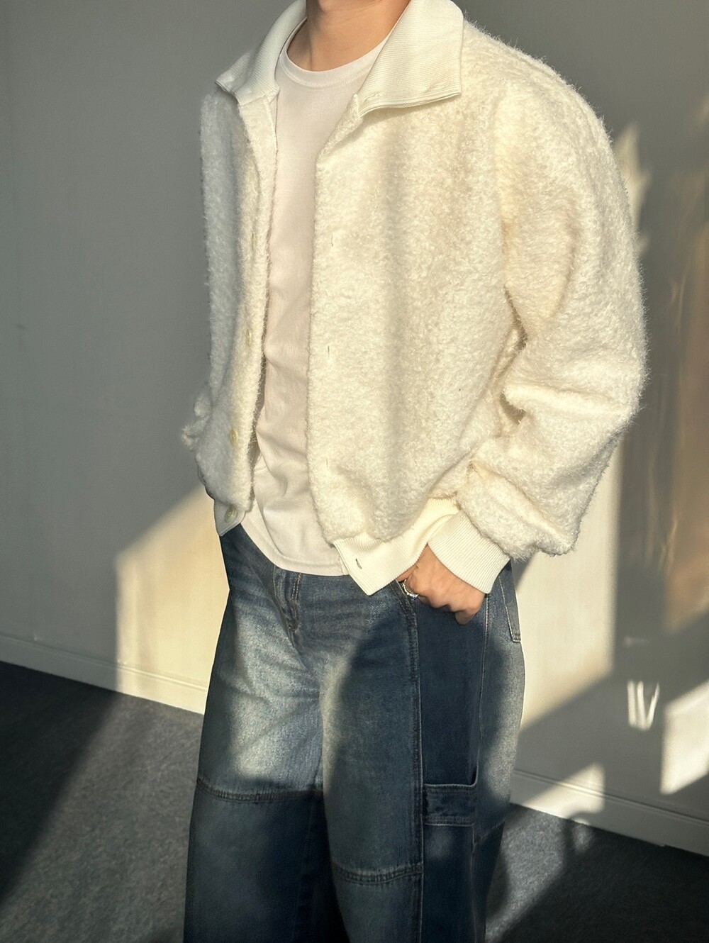 무스탕같은 실루엣의 가디건으로 이름만 가디건이지 자켓으로 착용 했습니다!