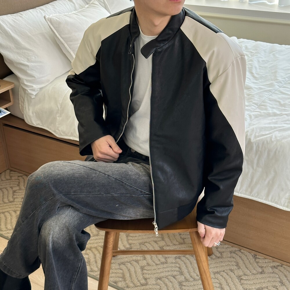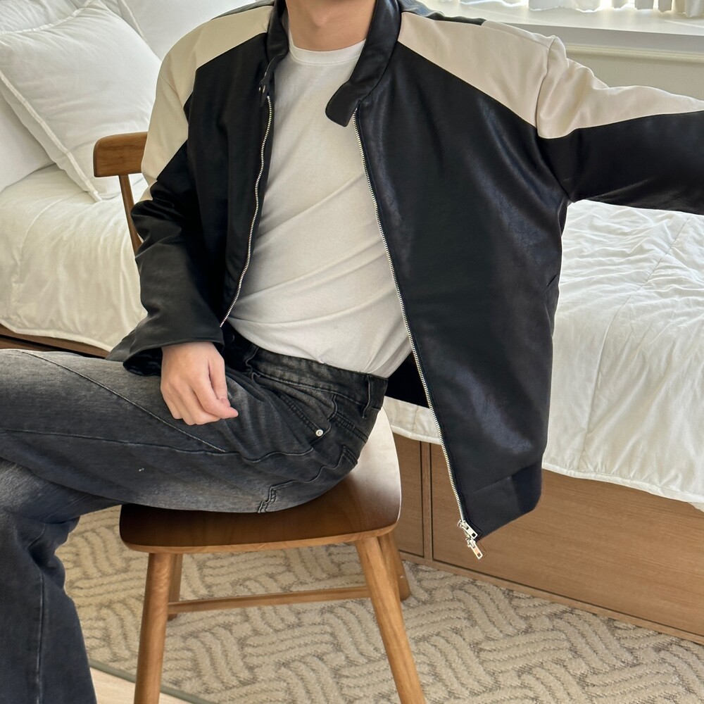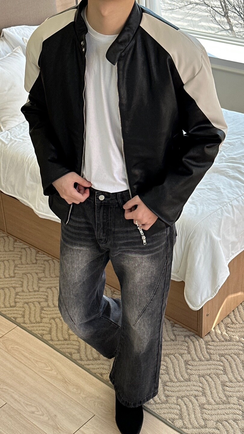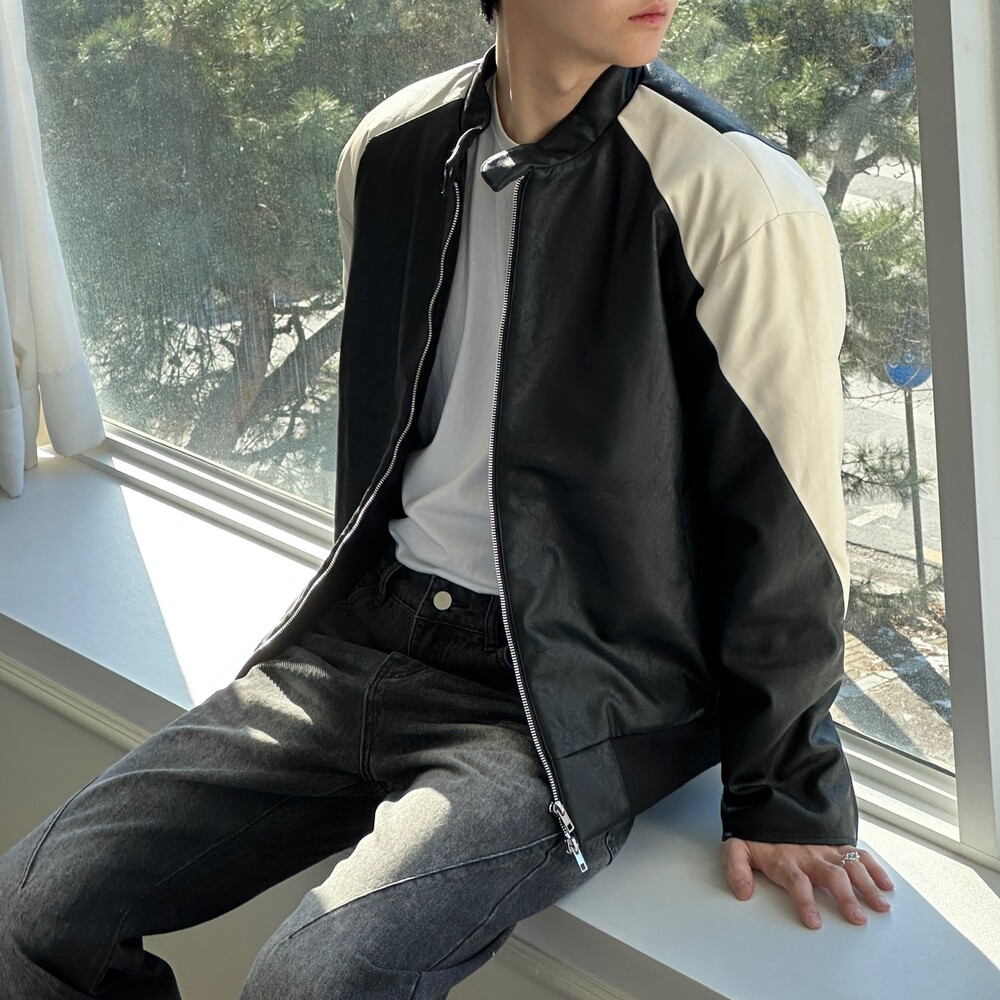 누빔 레더 바이커 자켓