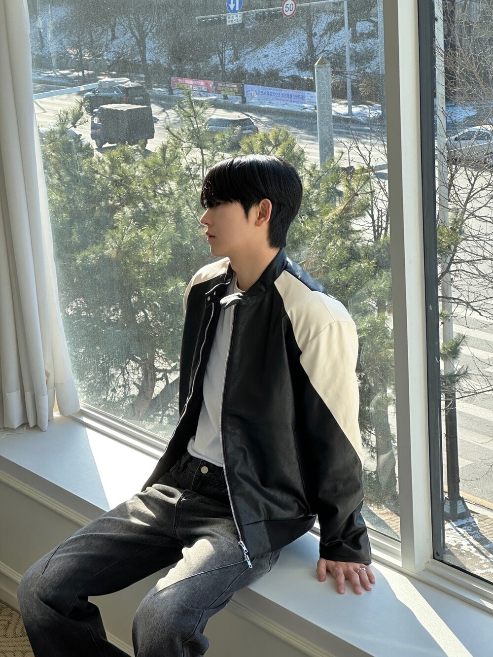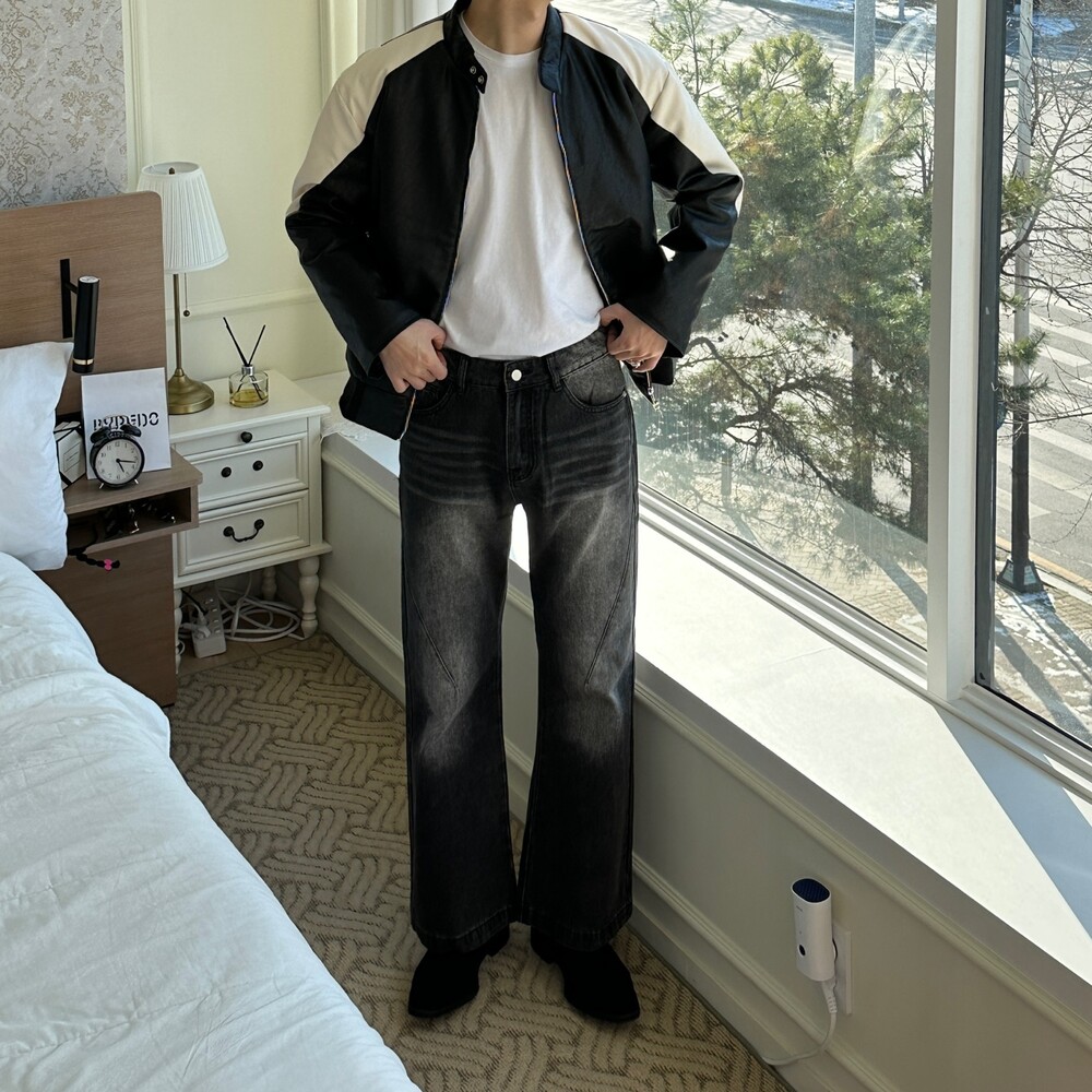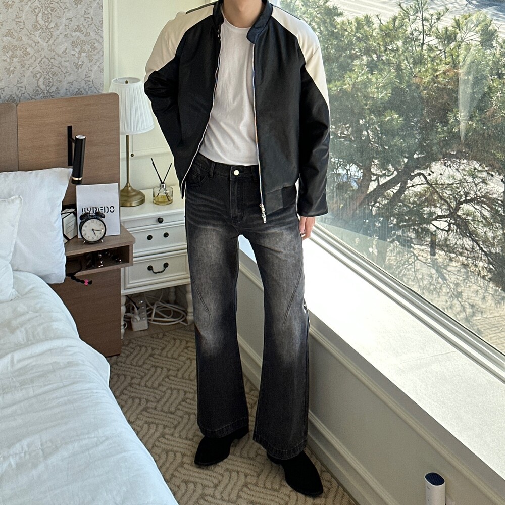 누빔 레더 바이커 자켓