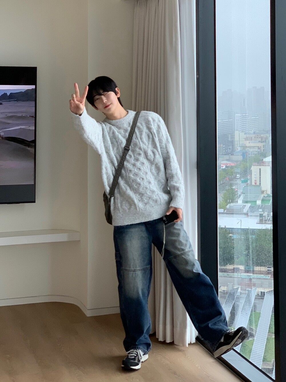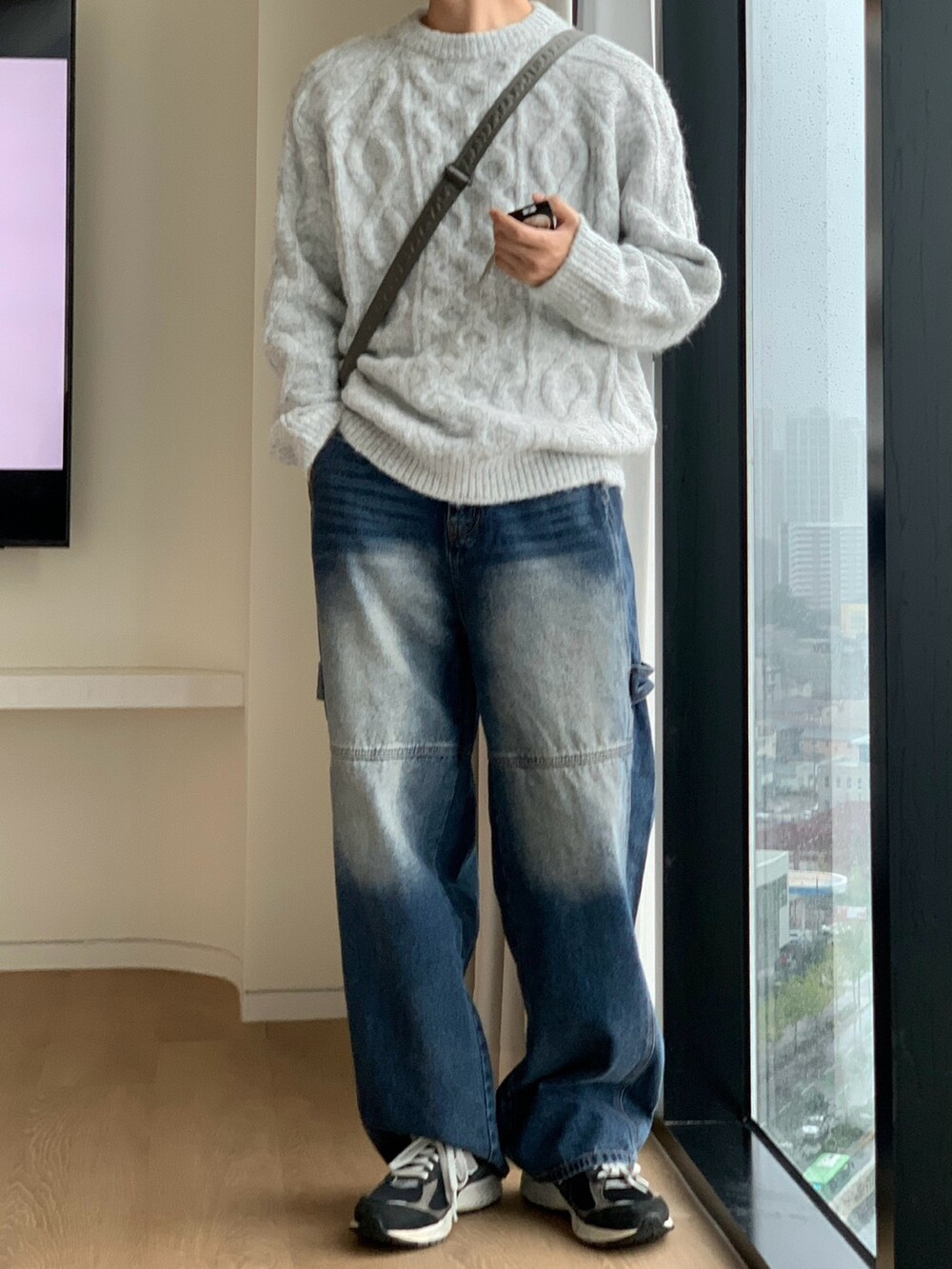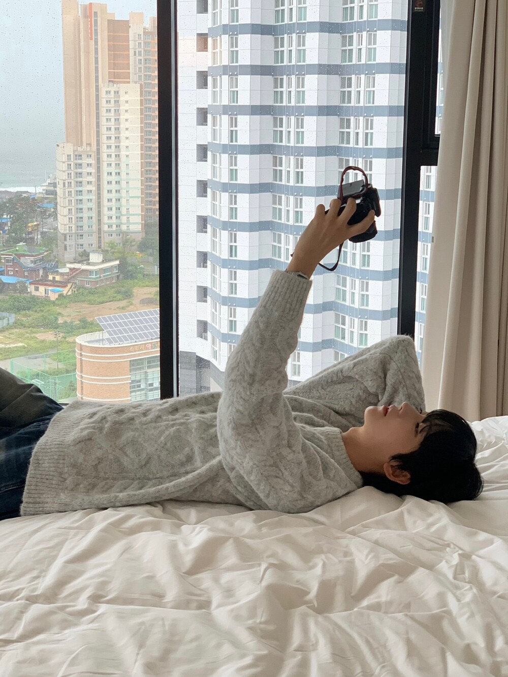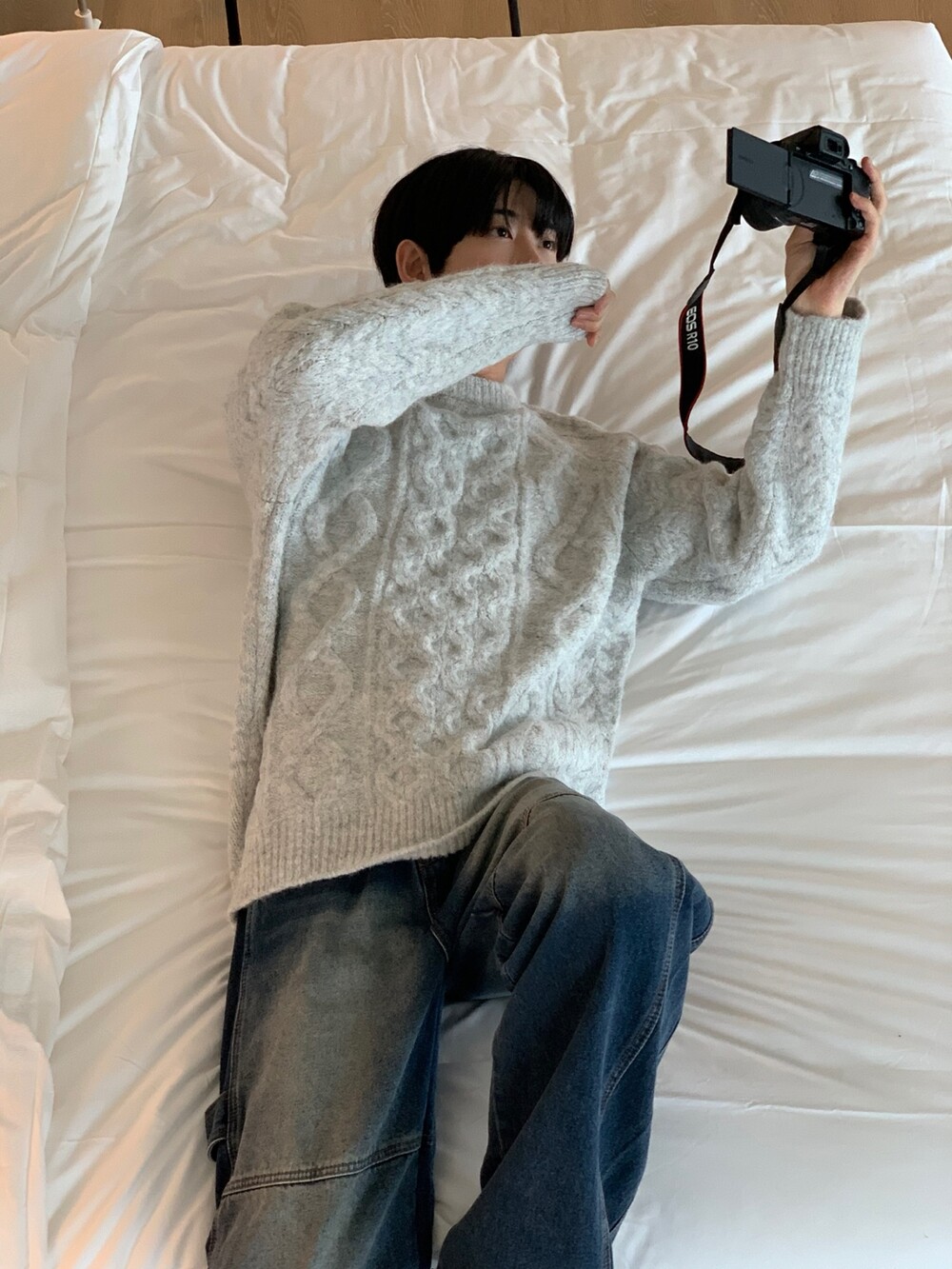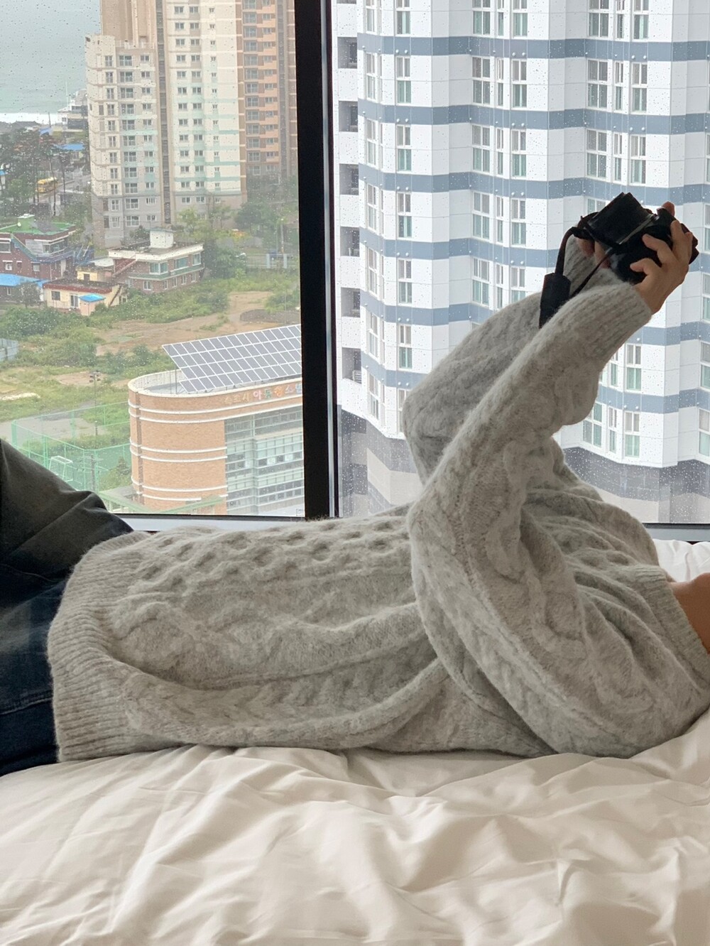 도톰하고 과빼기 디테일이 은은하게 있는 부드러워 보이는 질감의 따듯한 분위기 니트 !