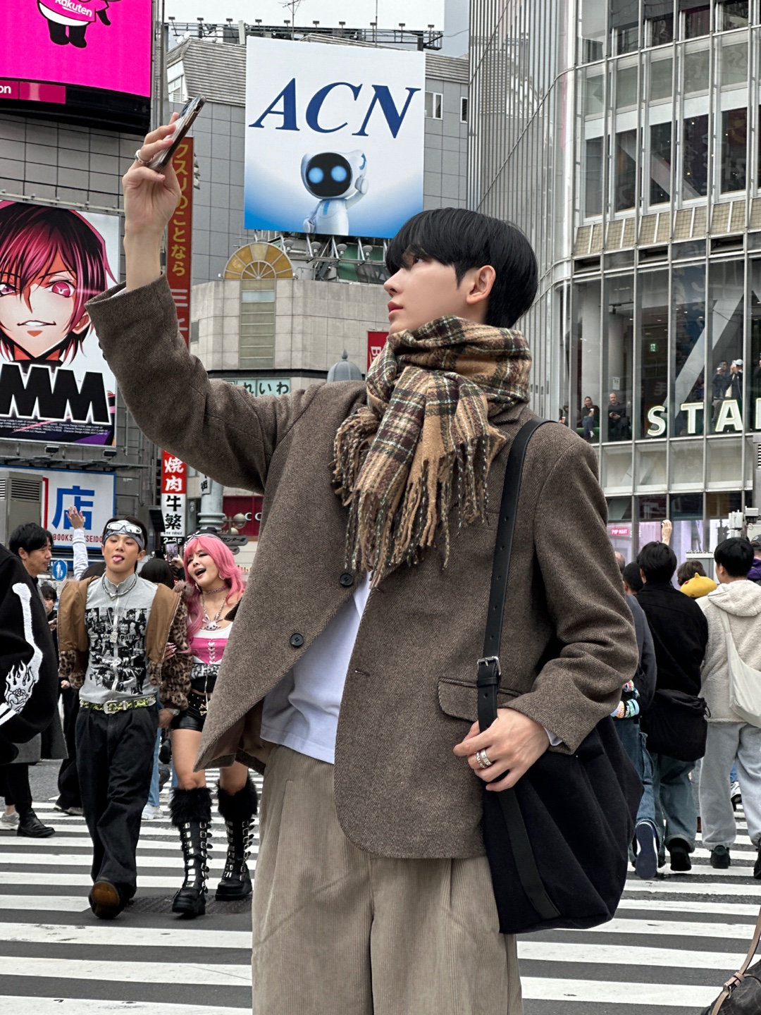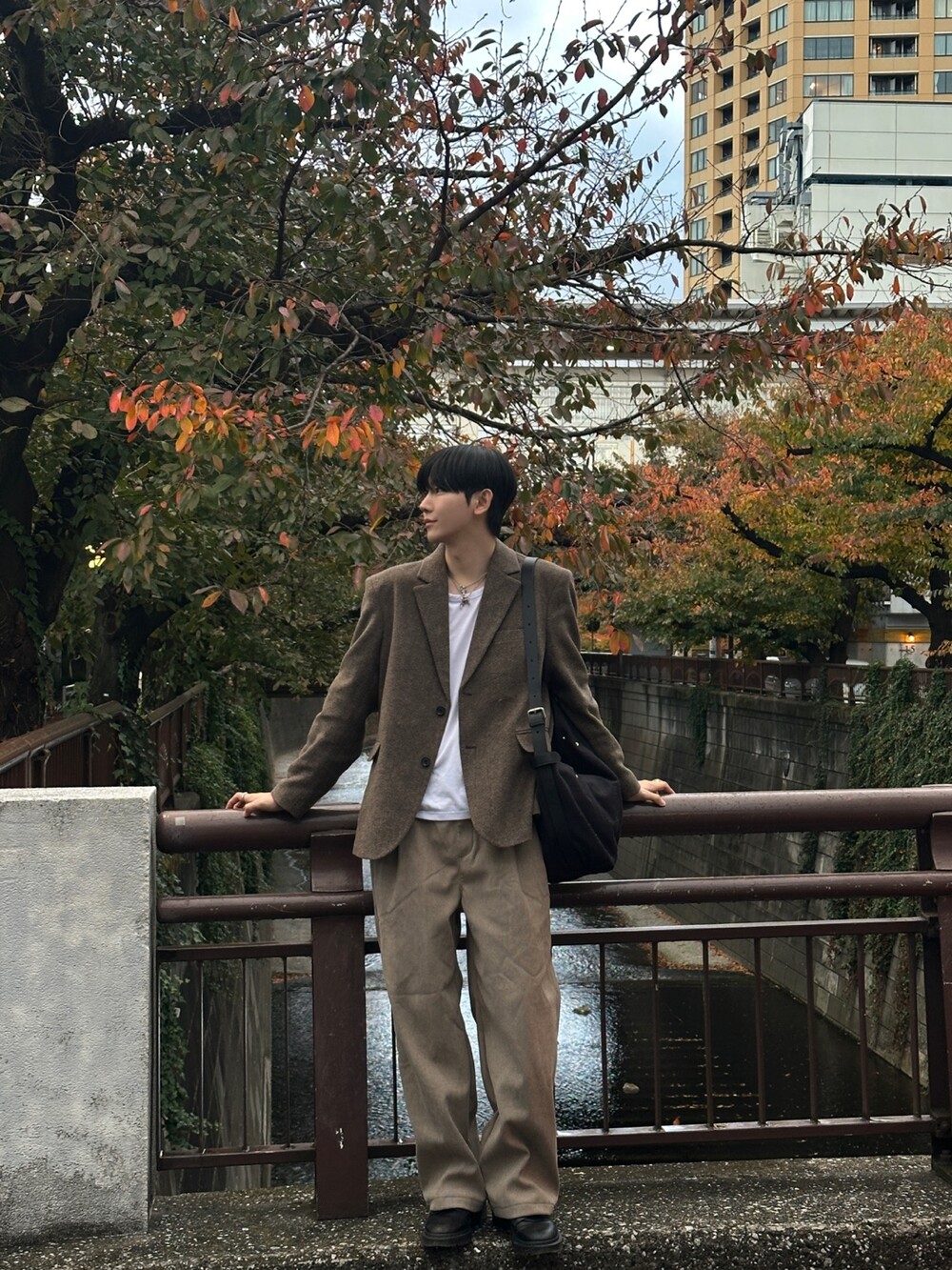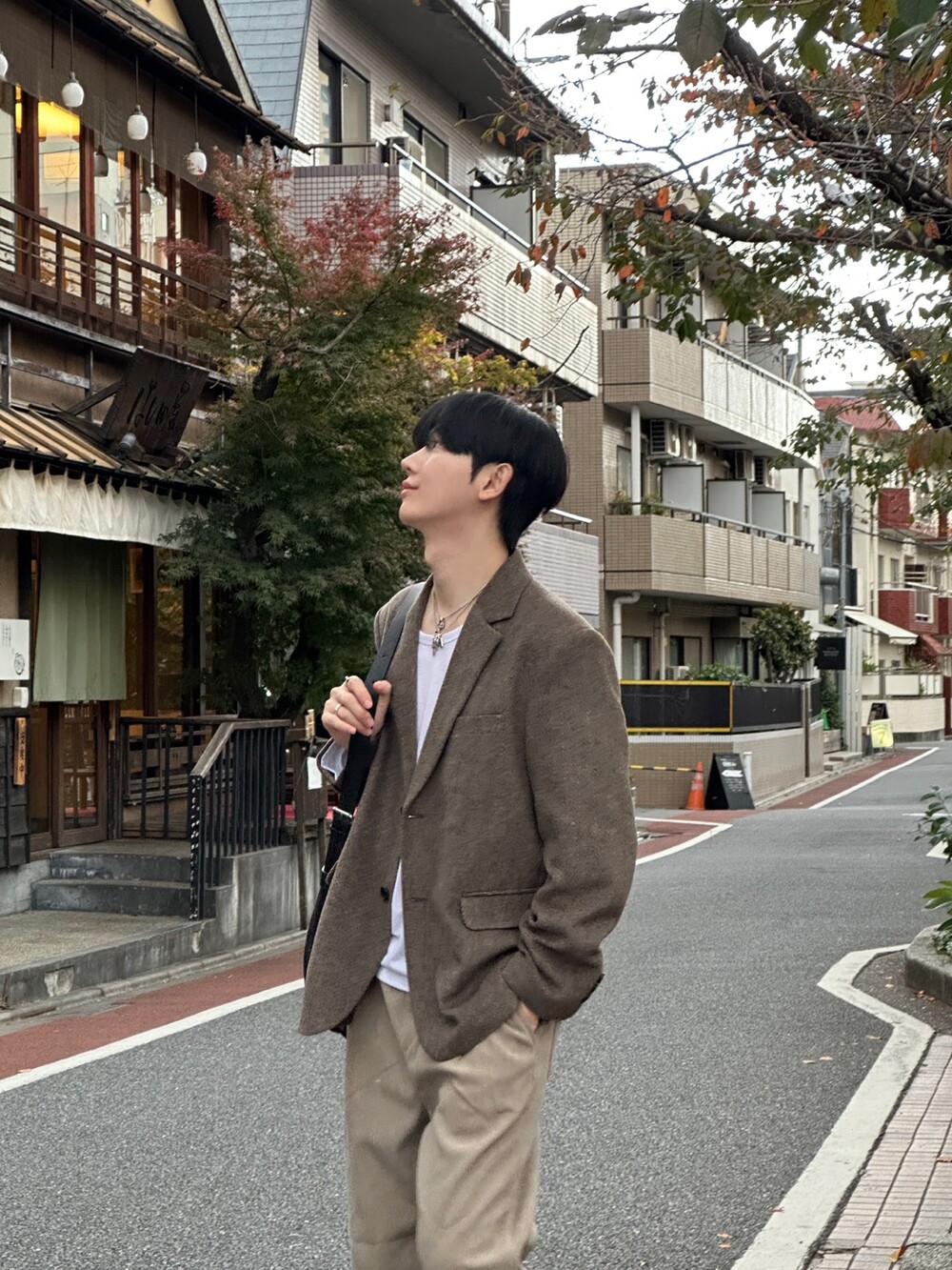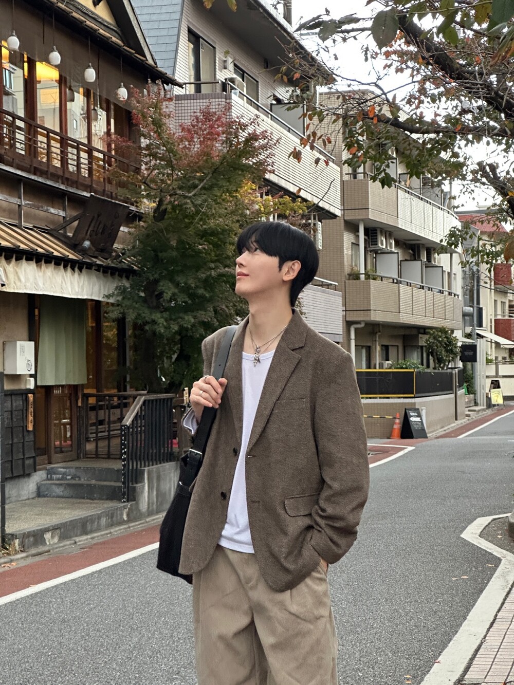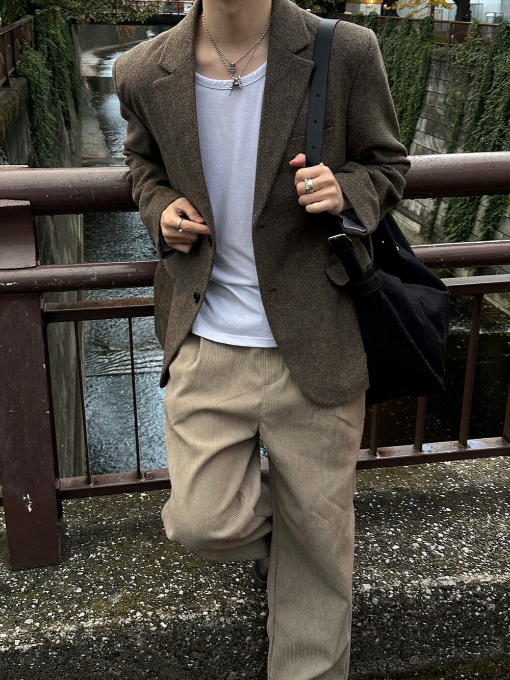 고급스러운 무드가 돋보이는 헤링본 울 블레이져입니다
