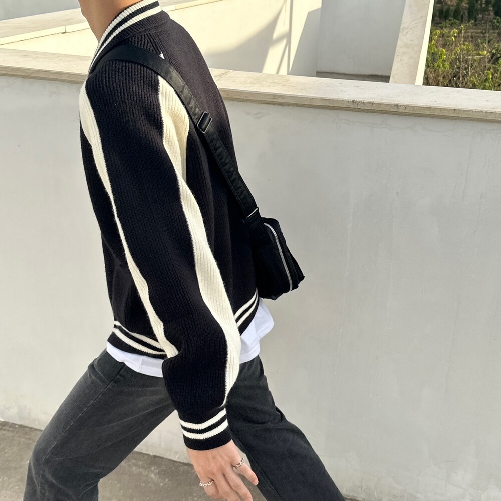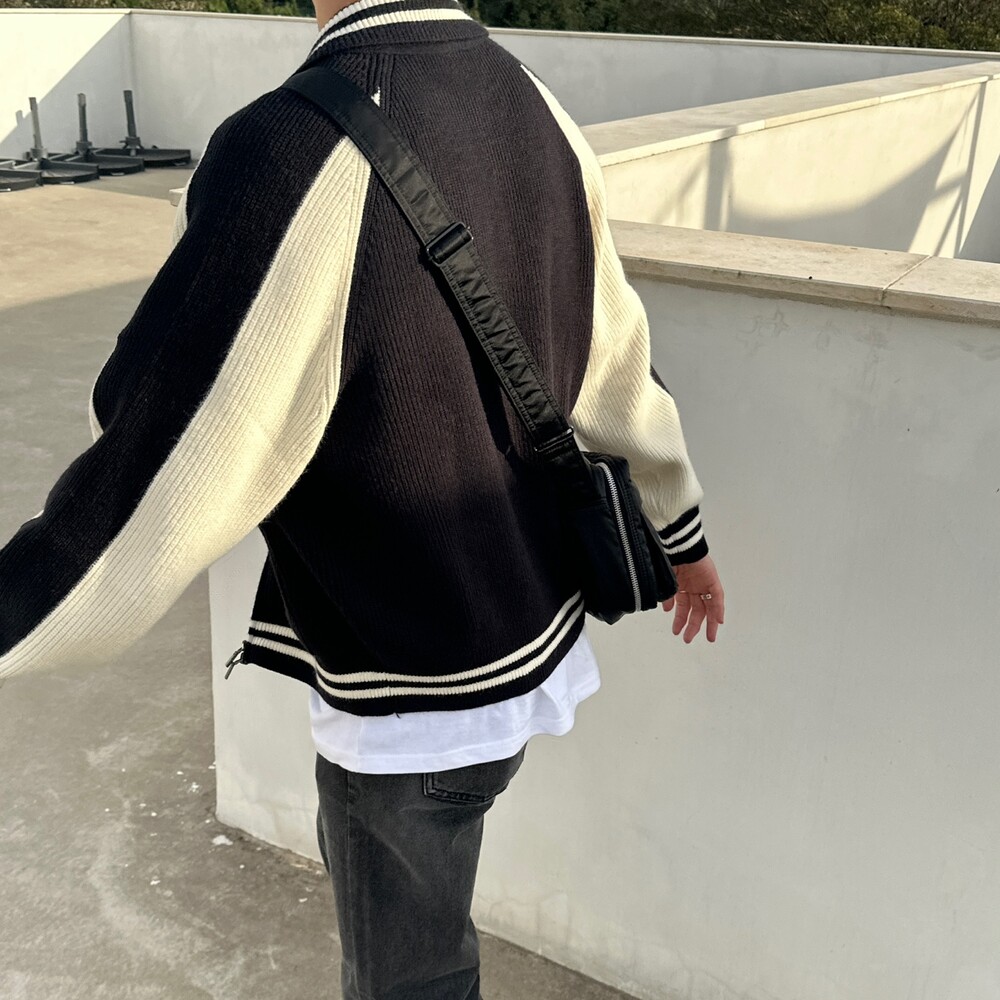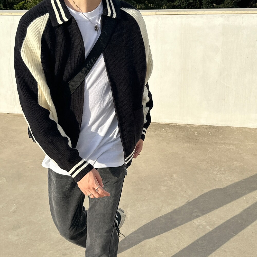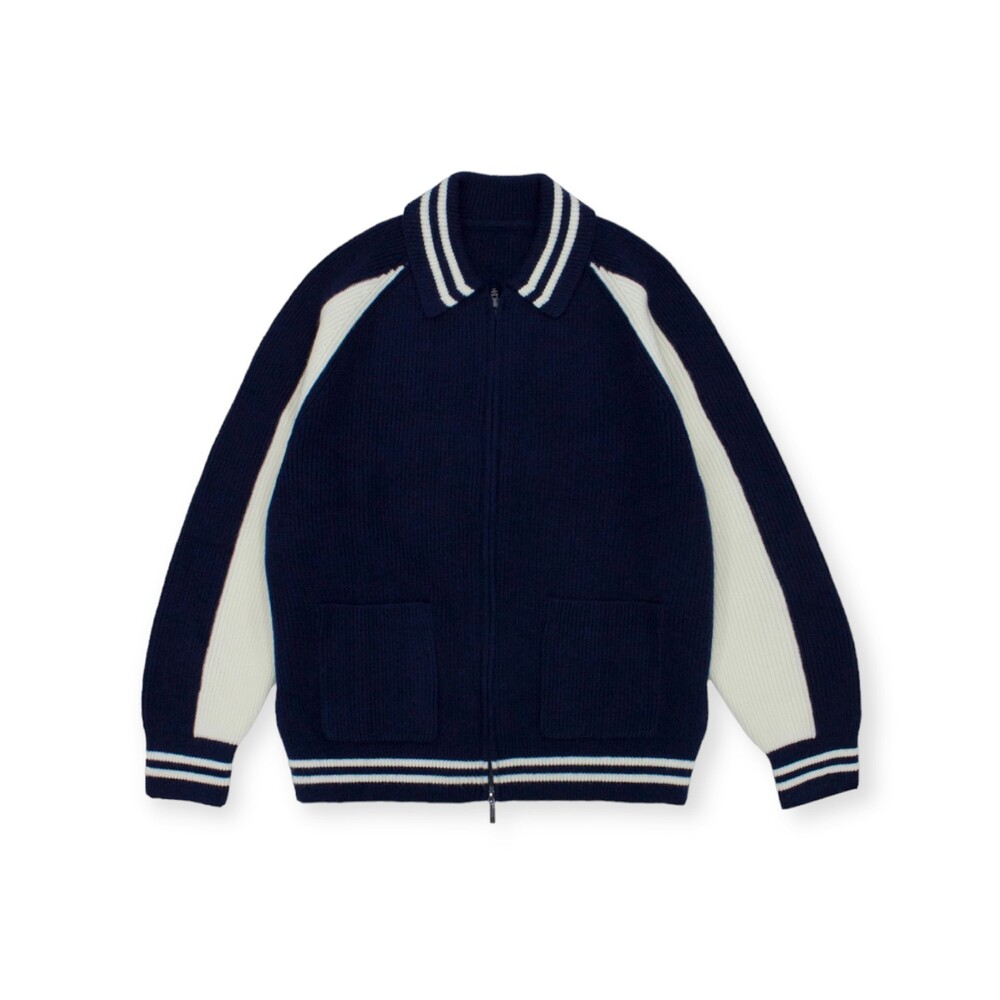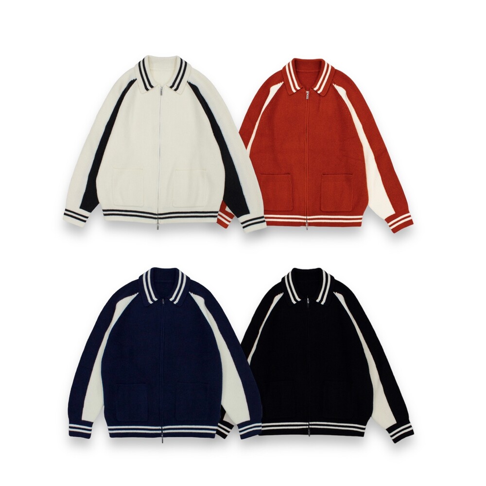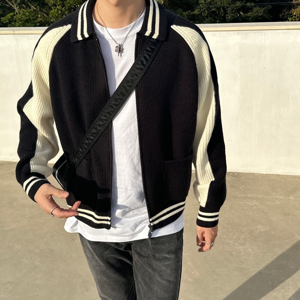 캐시 바시티 카라 니트집업 (4color)