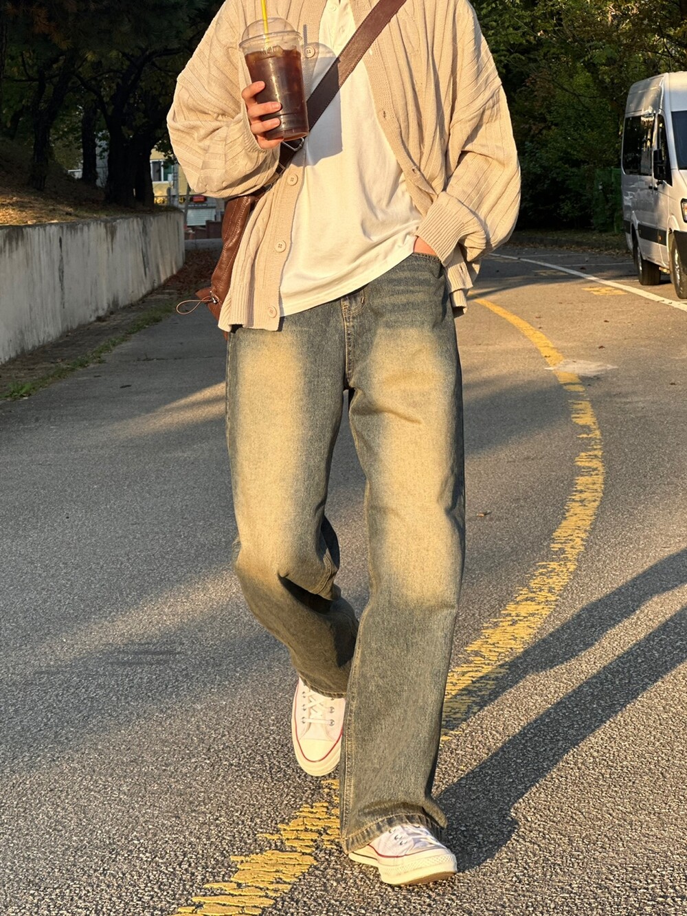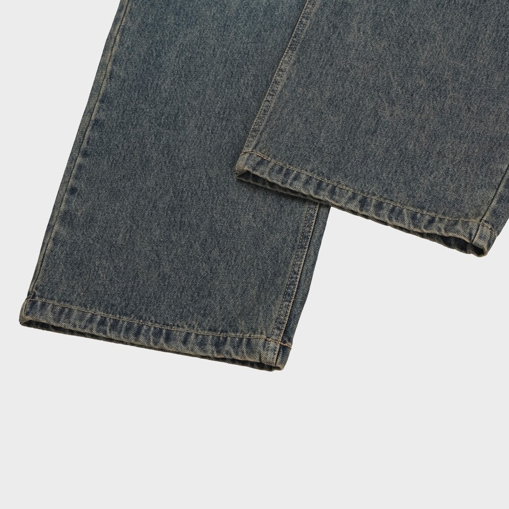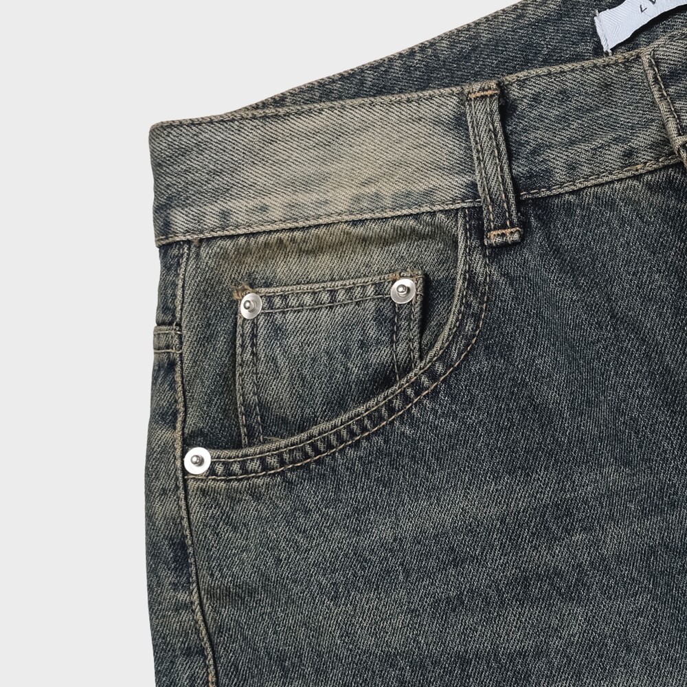 중청 색감에 브라운으로 들어간 빈티지한 워싱이 돋보이는 팬츠입니다
