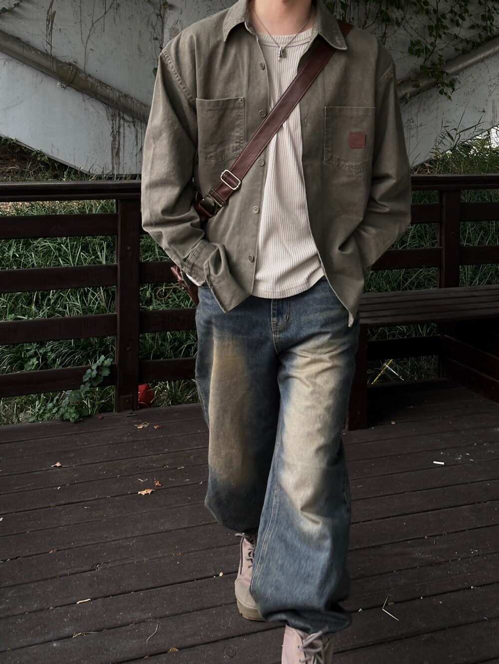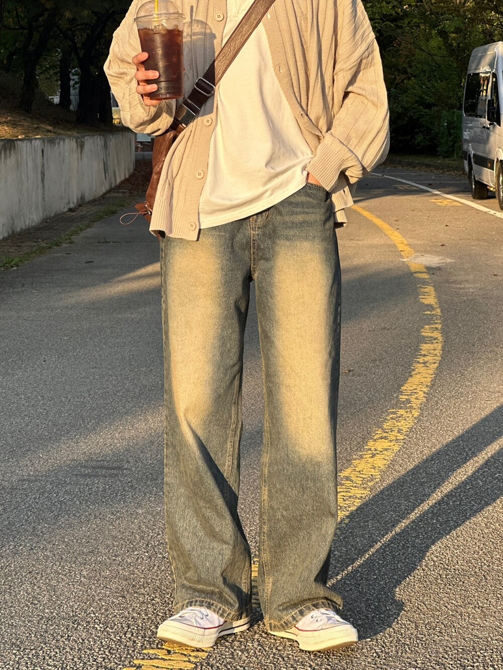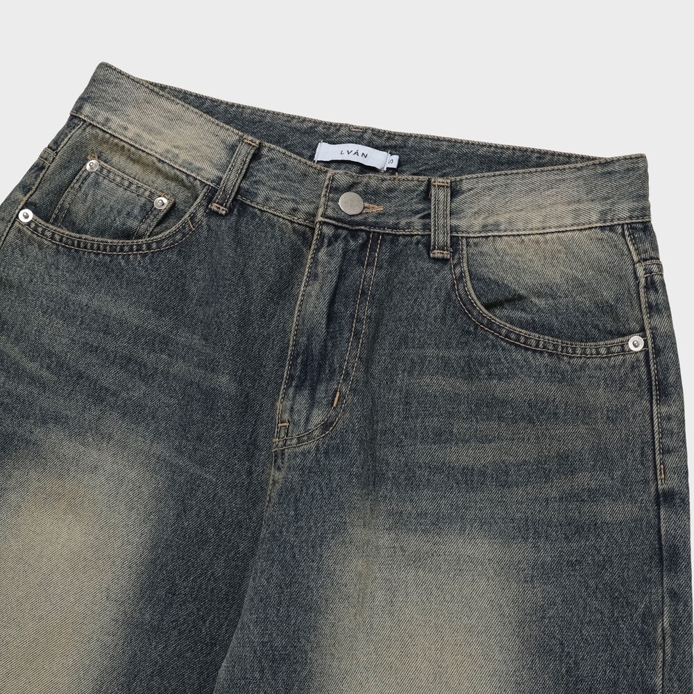 중청 색감에 브라운으로 들어간 빈티지한 워싱이 돋보이는 팬츠입니다