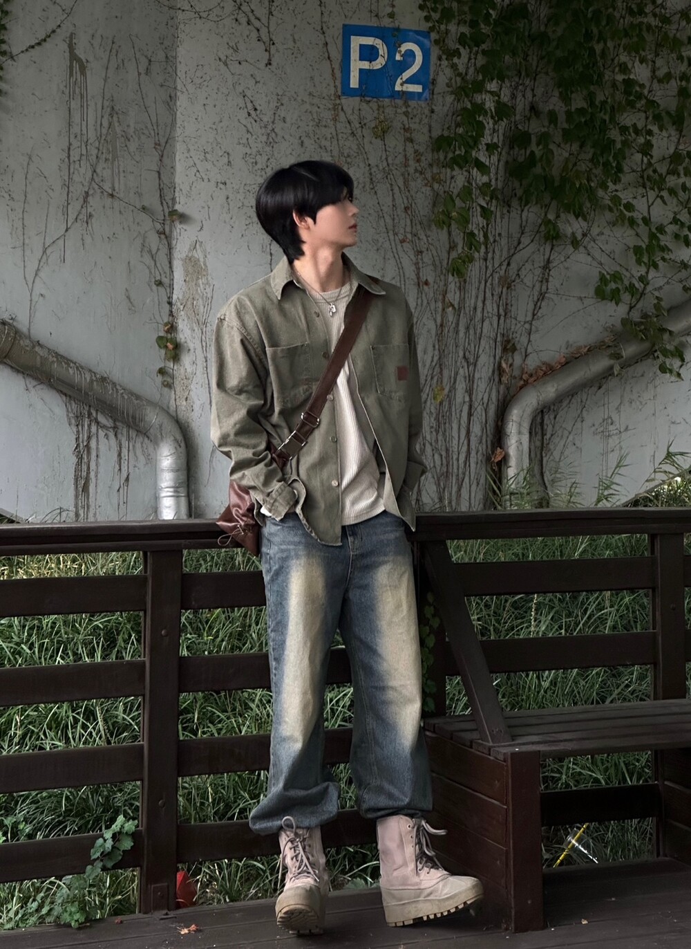 색 조합이 너무 예뻐서 카키 워크 셔츠랑 코디 했는데