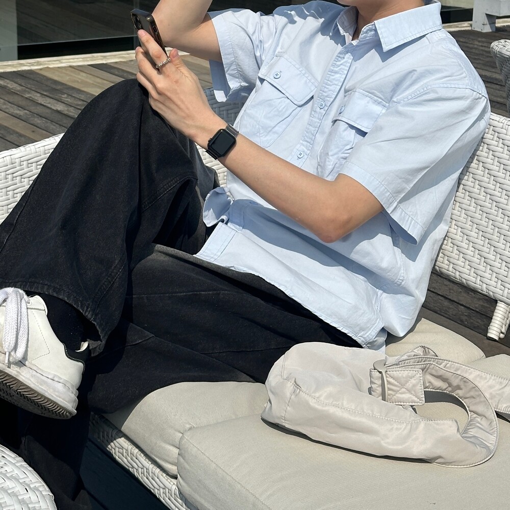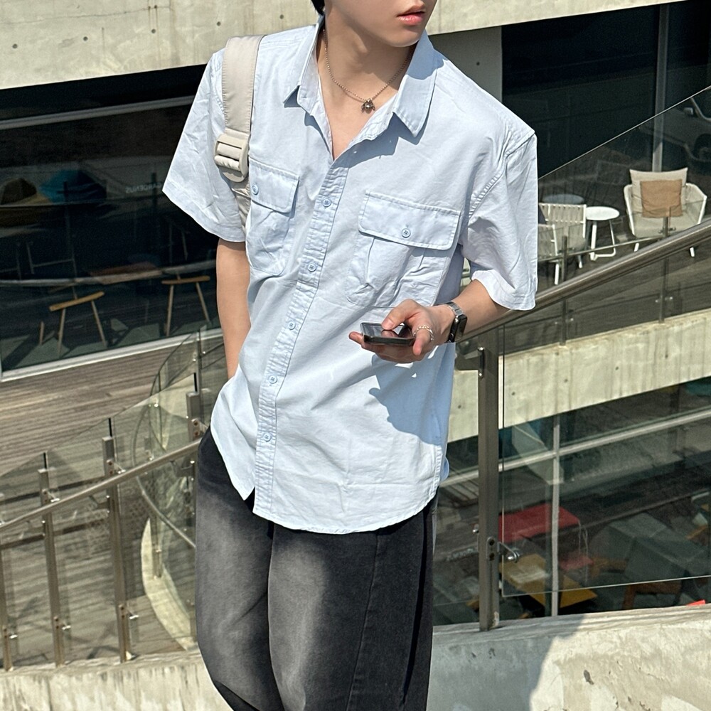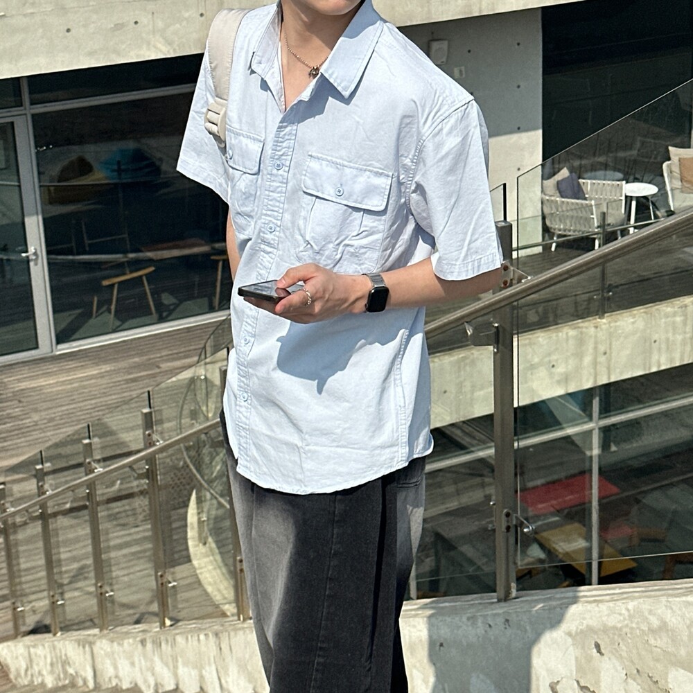 포켓 코튼 반팔셔프 (4color)