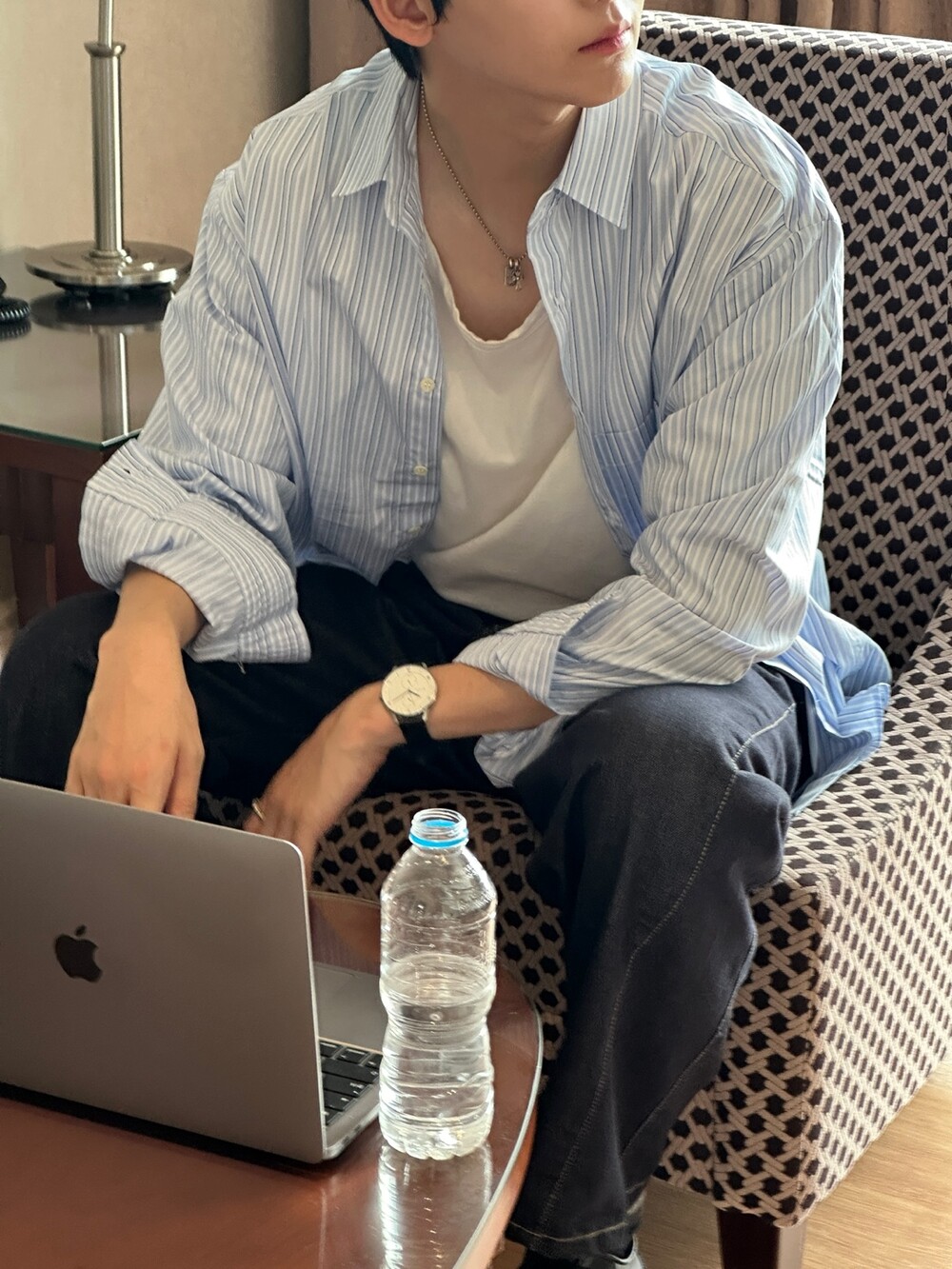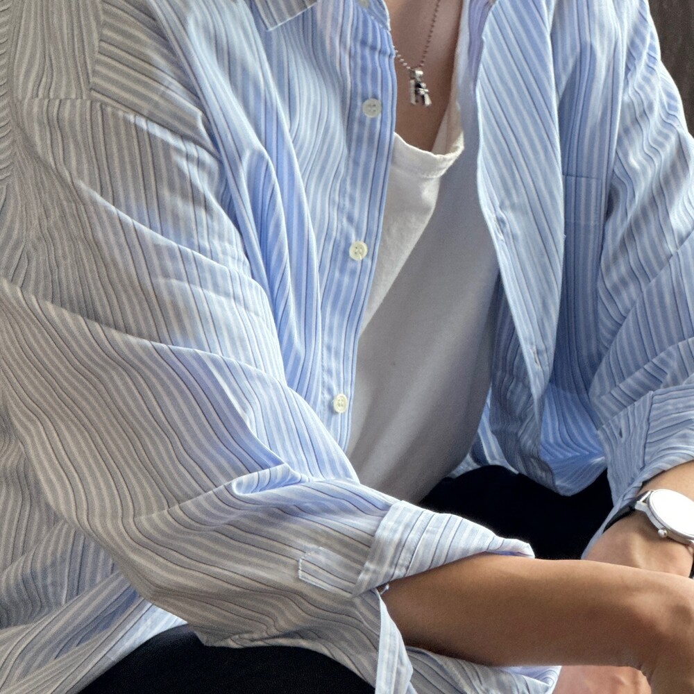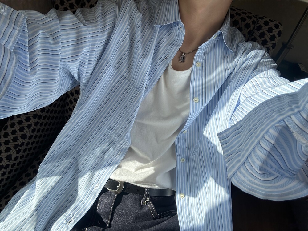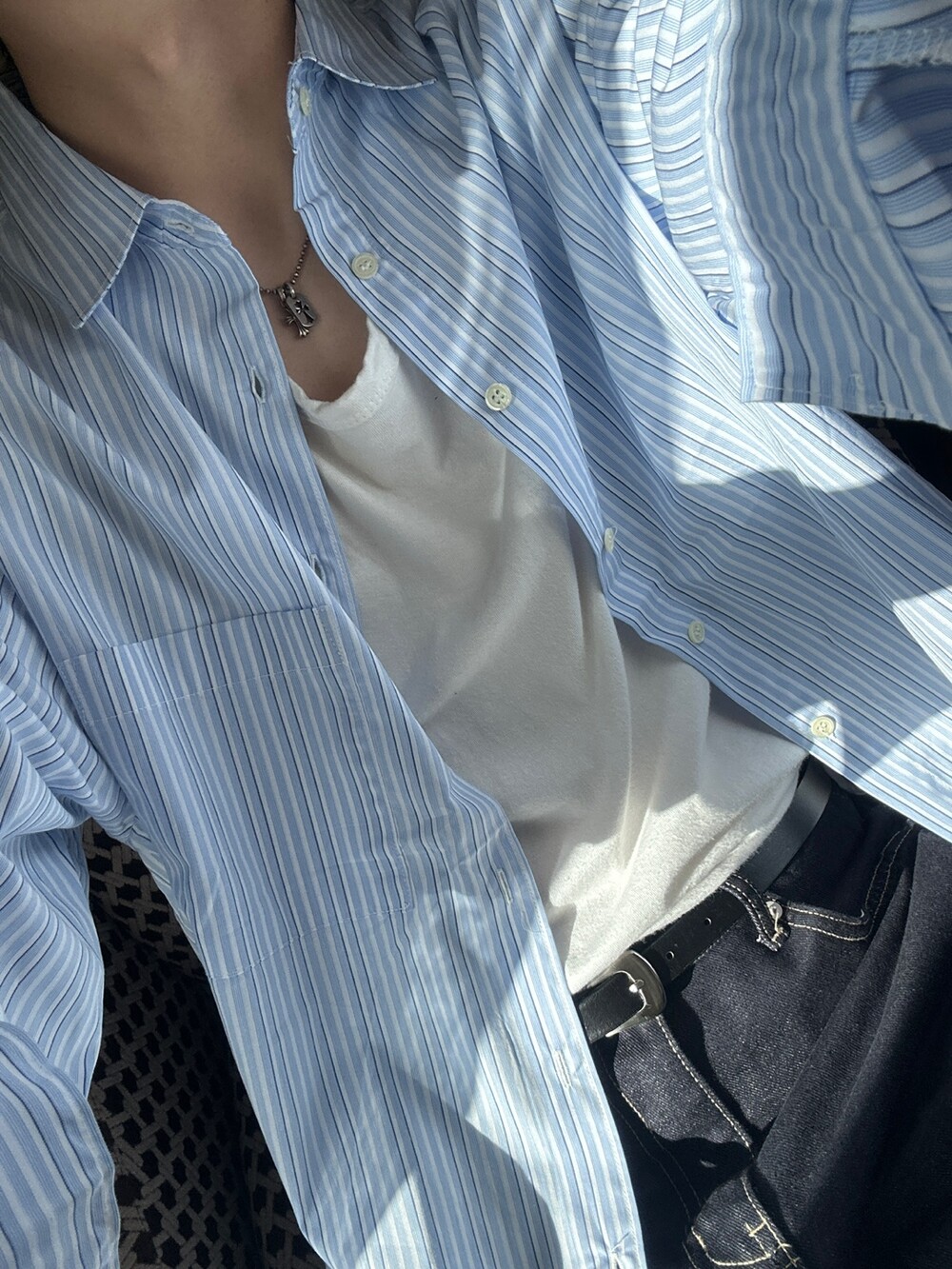 루즈한 핏감에 청량한 컬러로 너무 잘 뽑힌 셔츠입니다 !