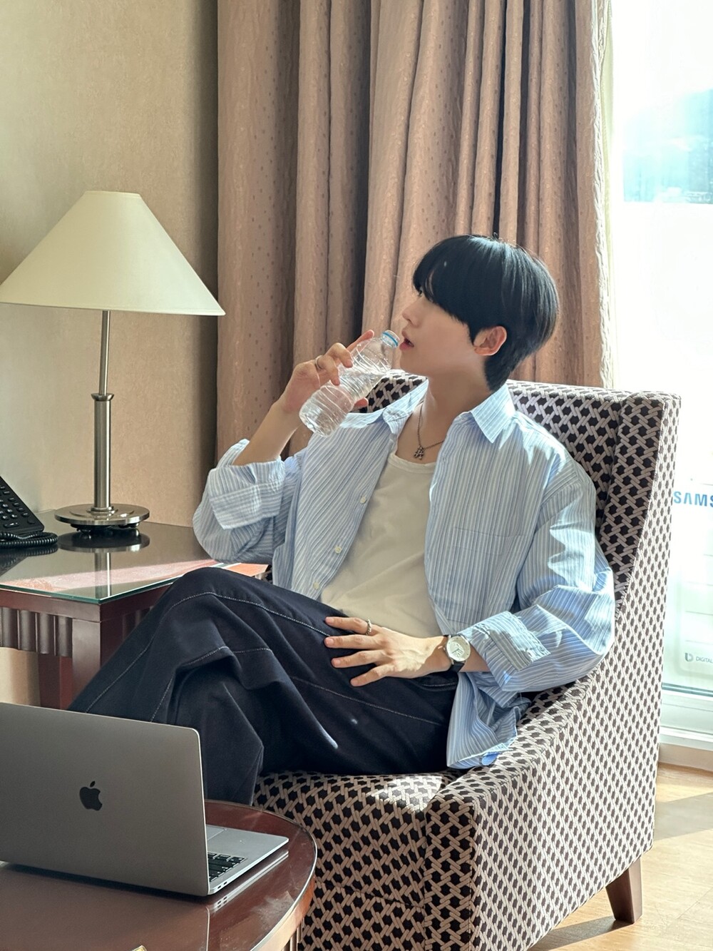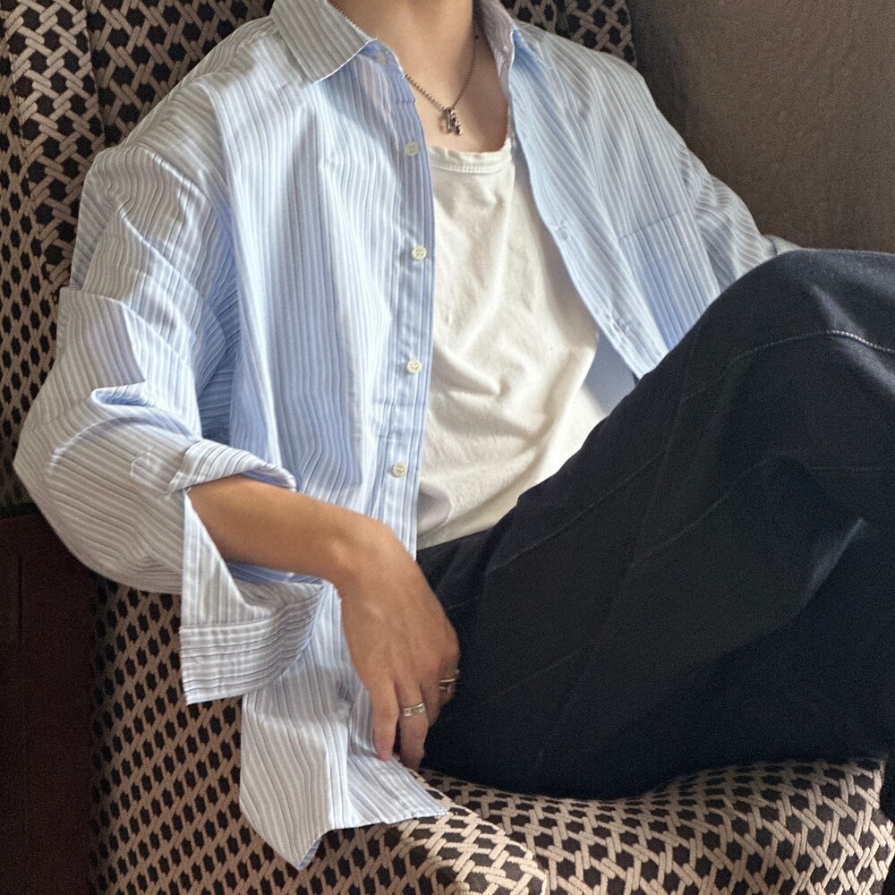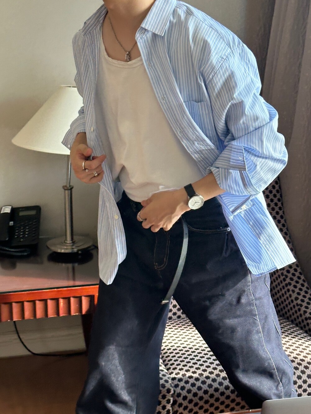 루즈한 핏감에 청량한 컬러로 너무 잘 뽑힌 셔츠입니다 !