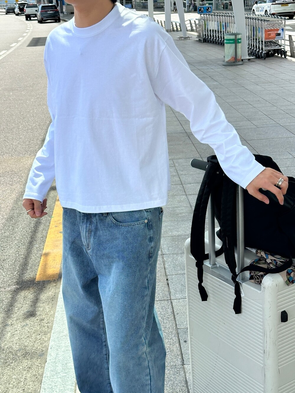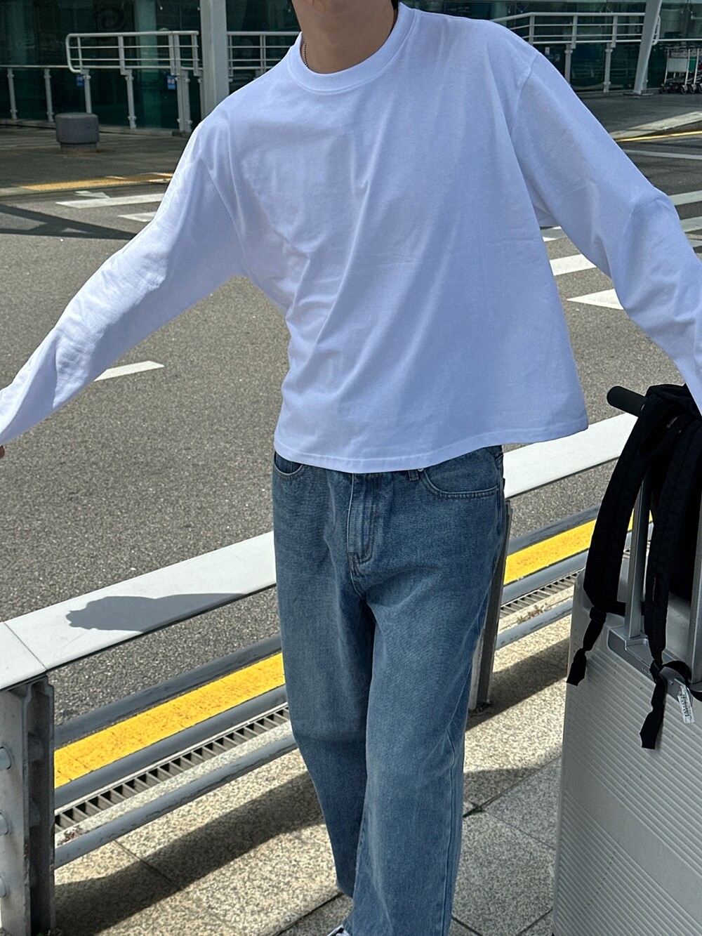 어디에나 묻혀가기 좋은 기본적인 티셔츠라 크롭한 기장감과 원단 내구성으로 승부를 본 티셔츠라