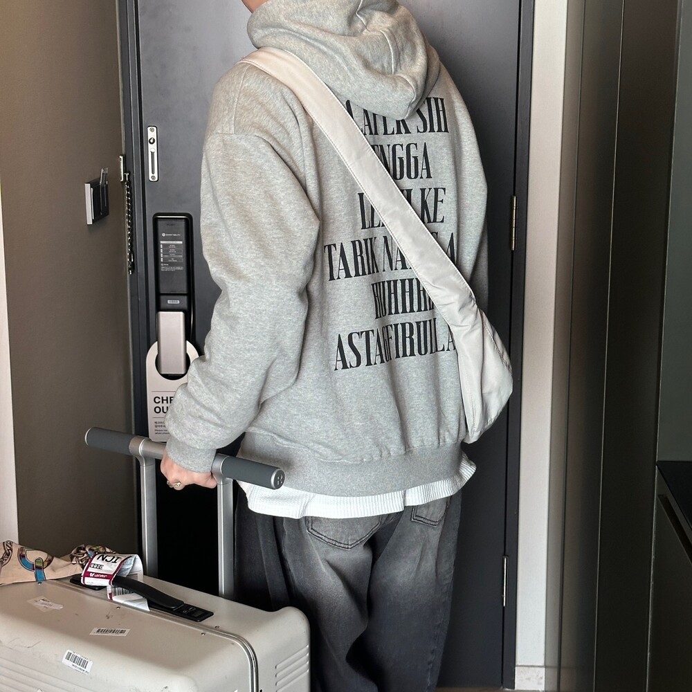 앞판 뒷판에 데일리한 프린팅이 특징인 후드티입니다