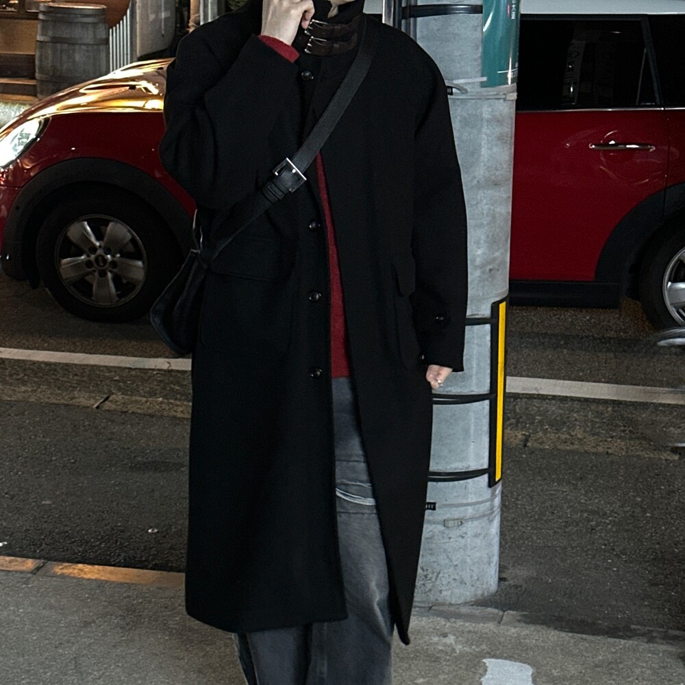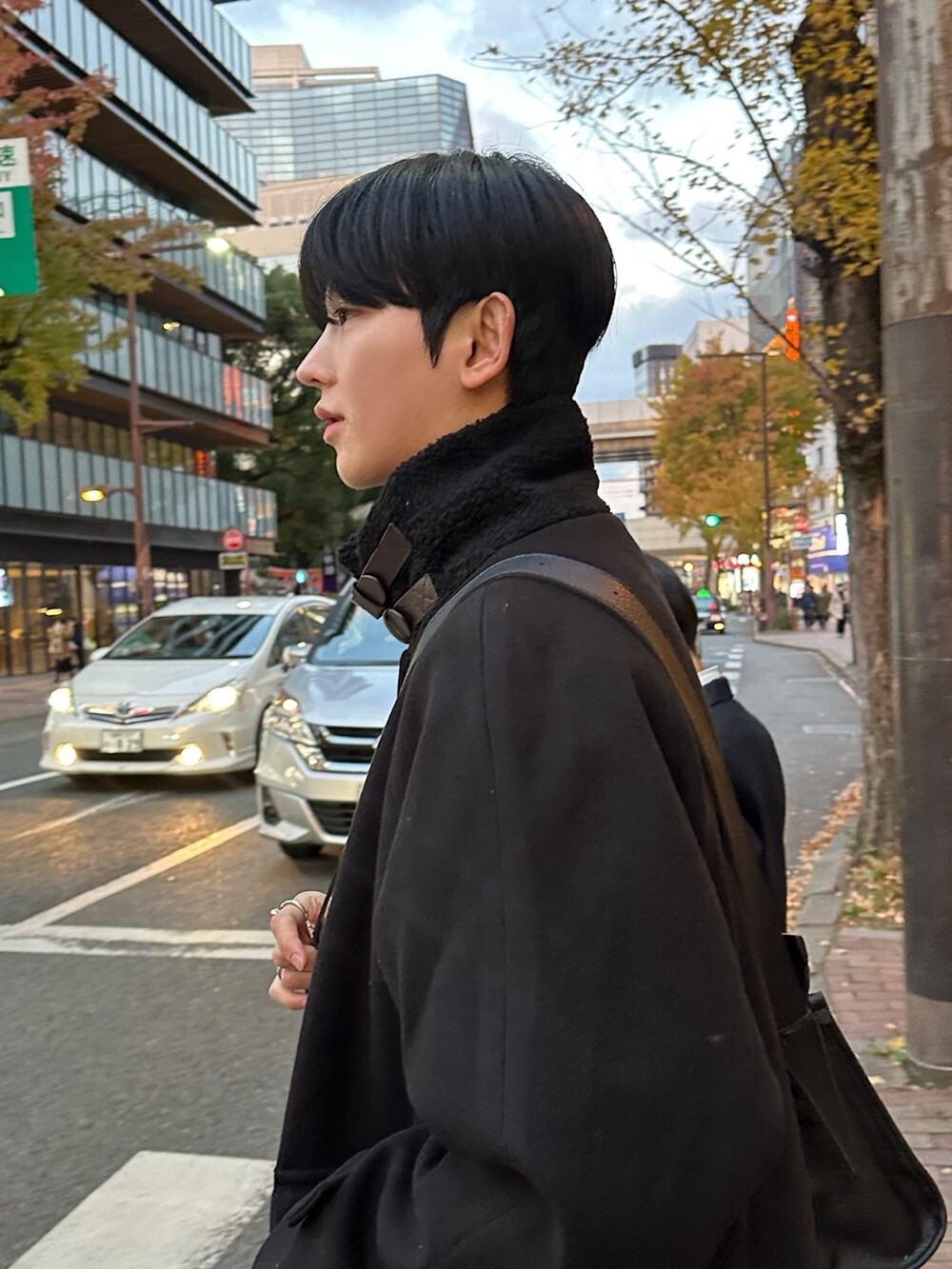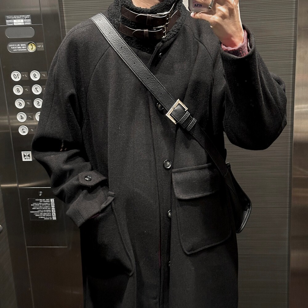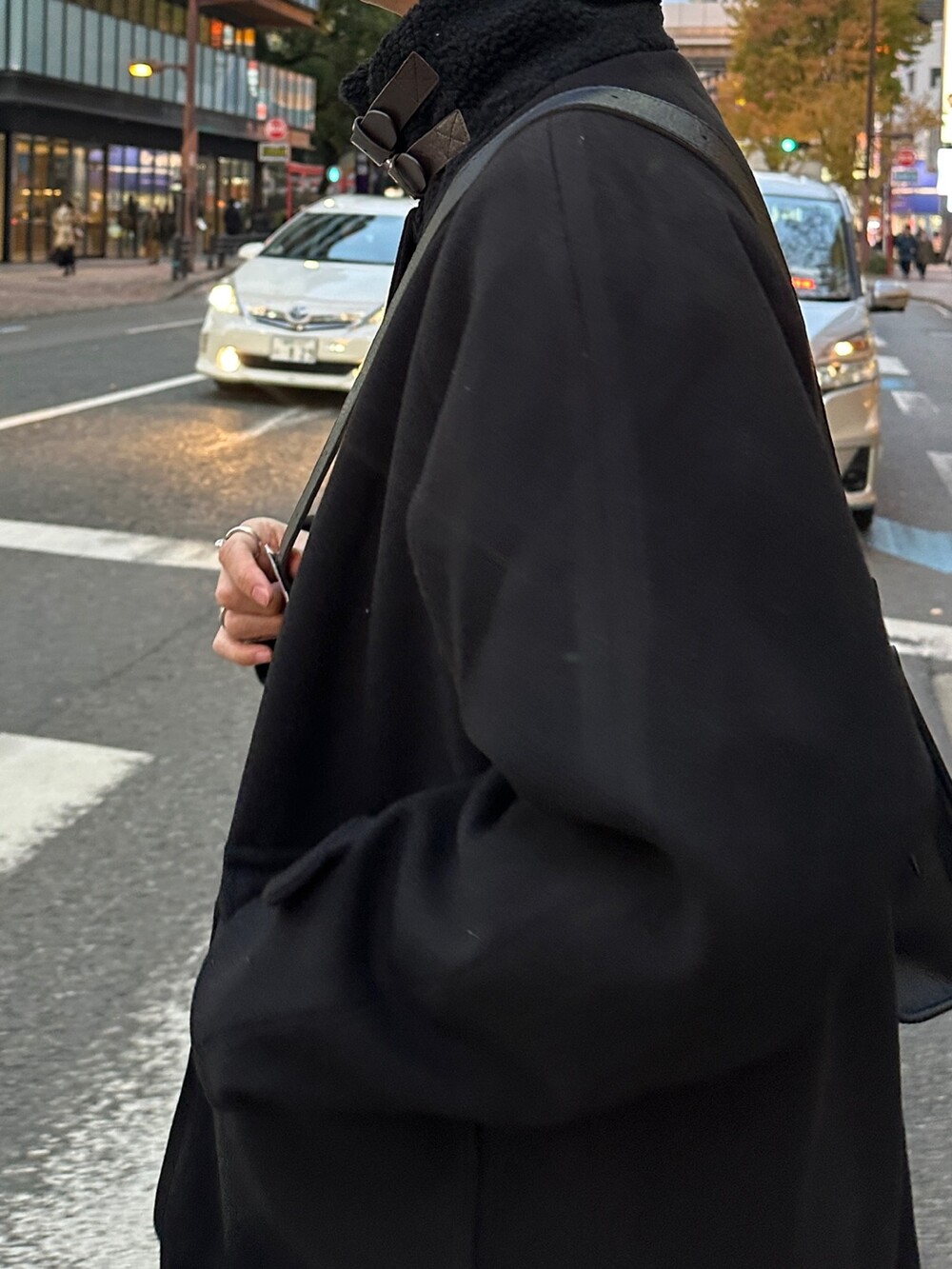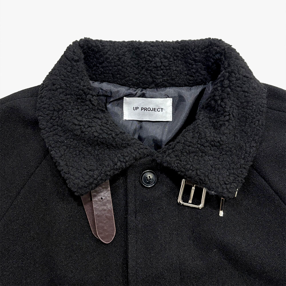 무스탕과 시크한 무드의 긴 기장감의 코트가 합쳐진 디자인의 코트입니다 !