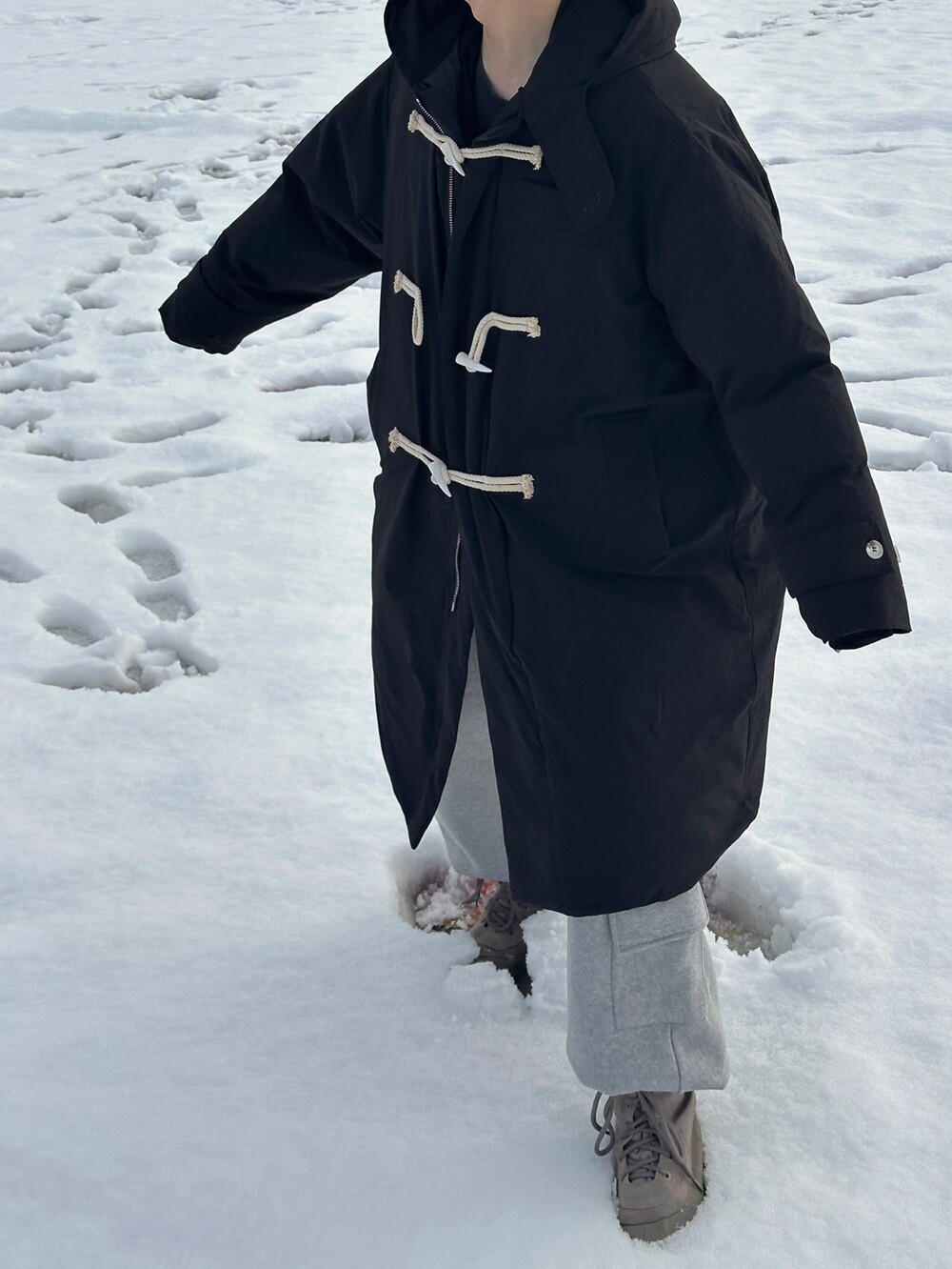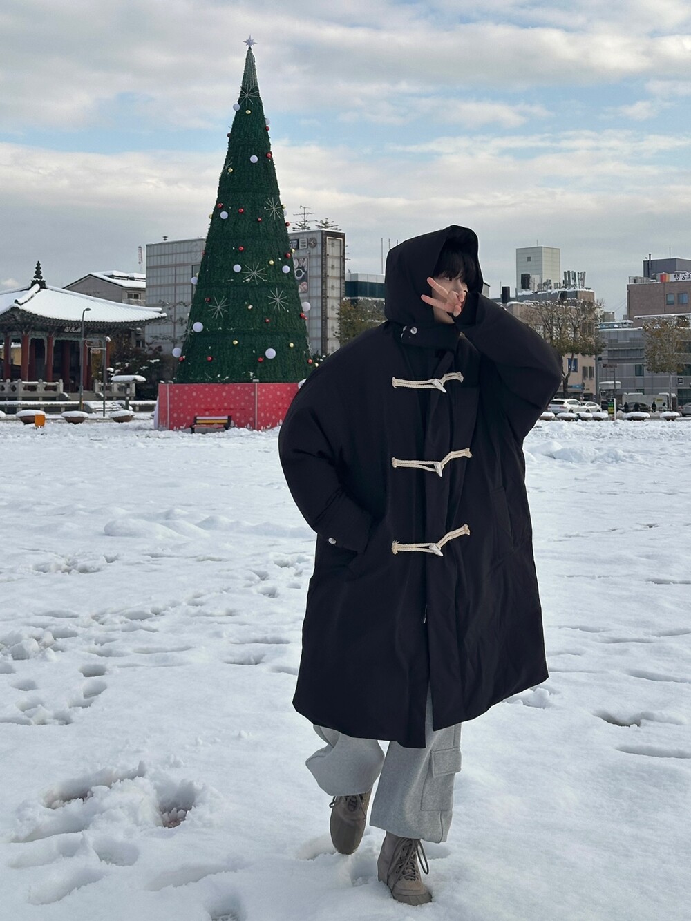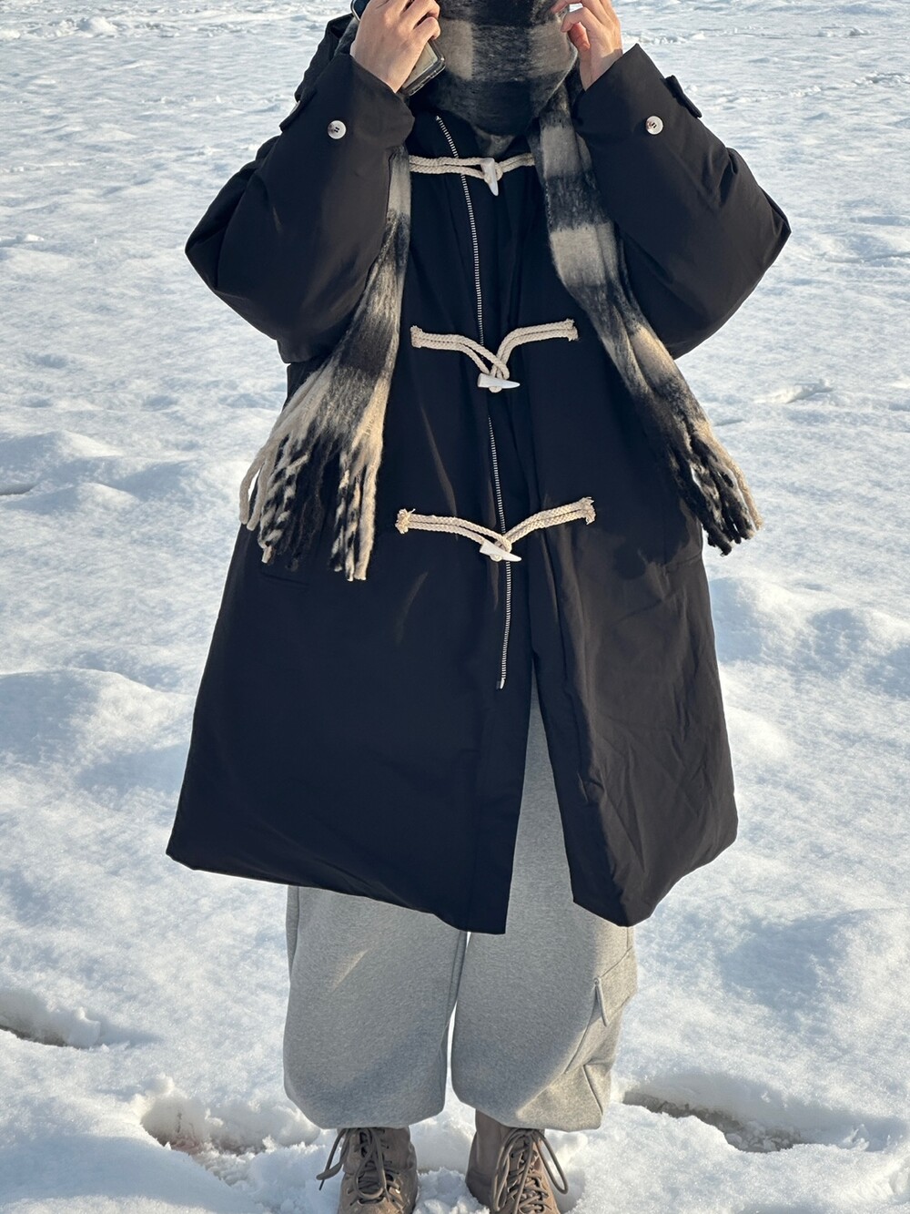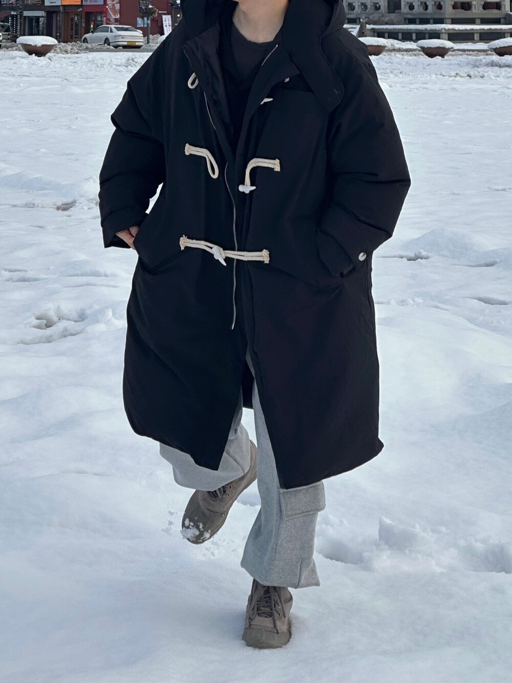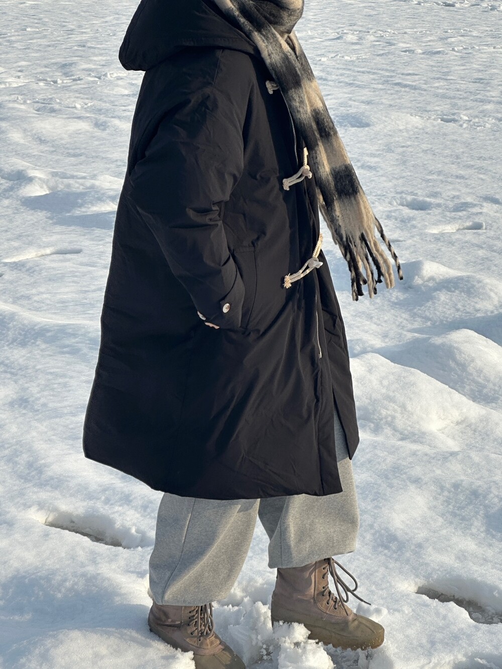 눈 오는 날 진짜 따뜻하게 착용한 롱 패딩입니다 !