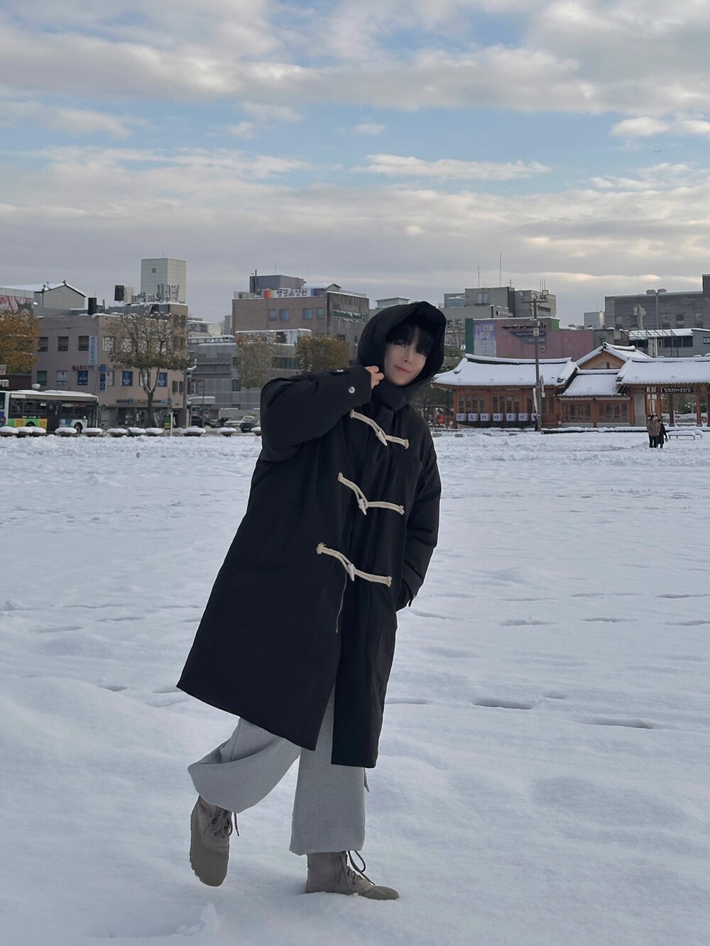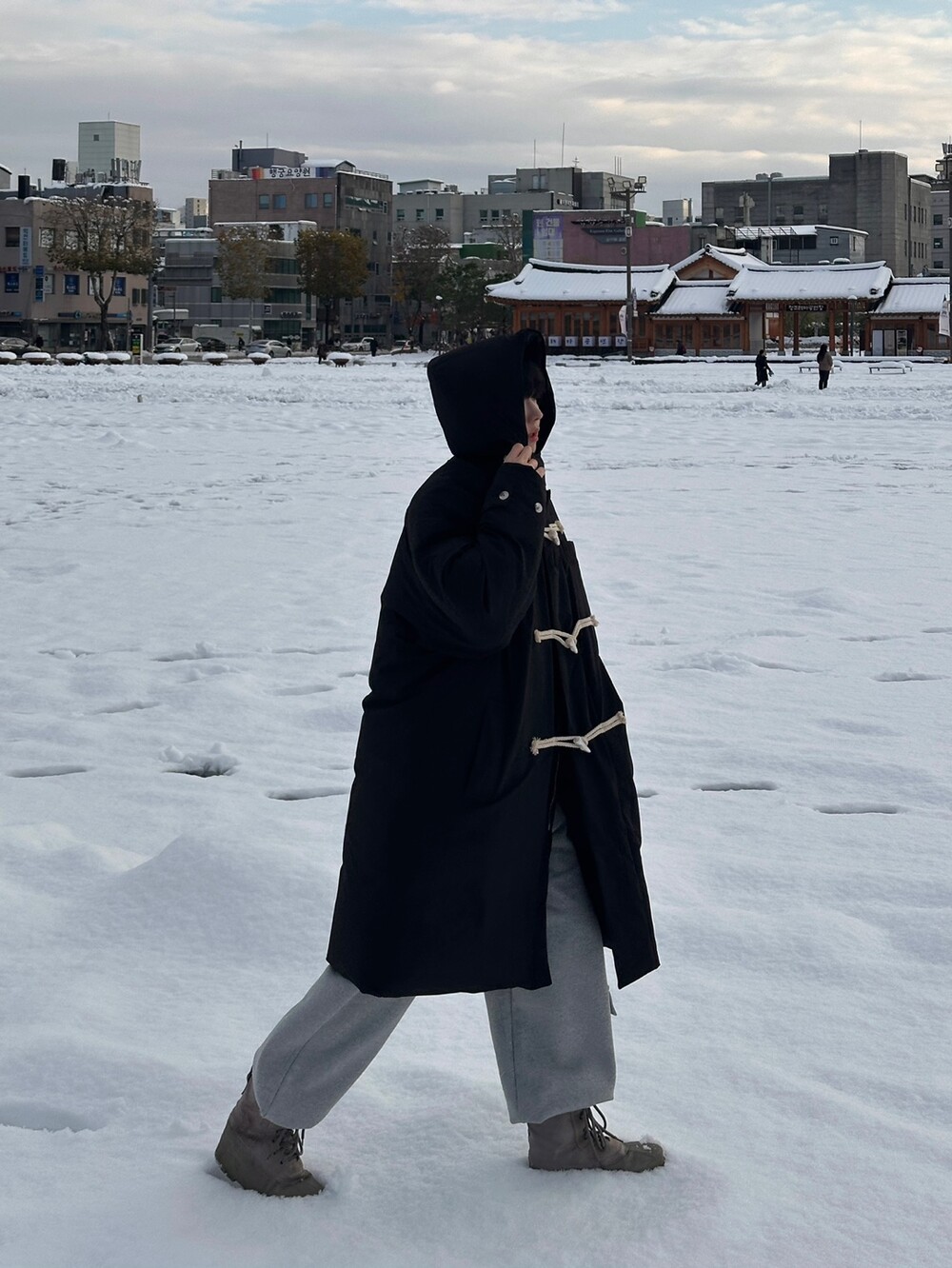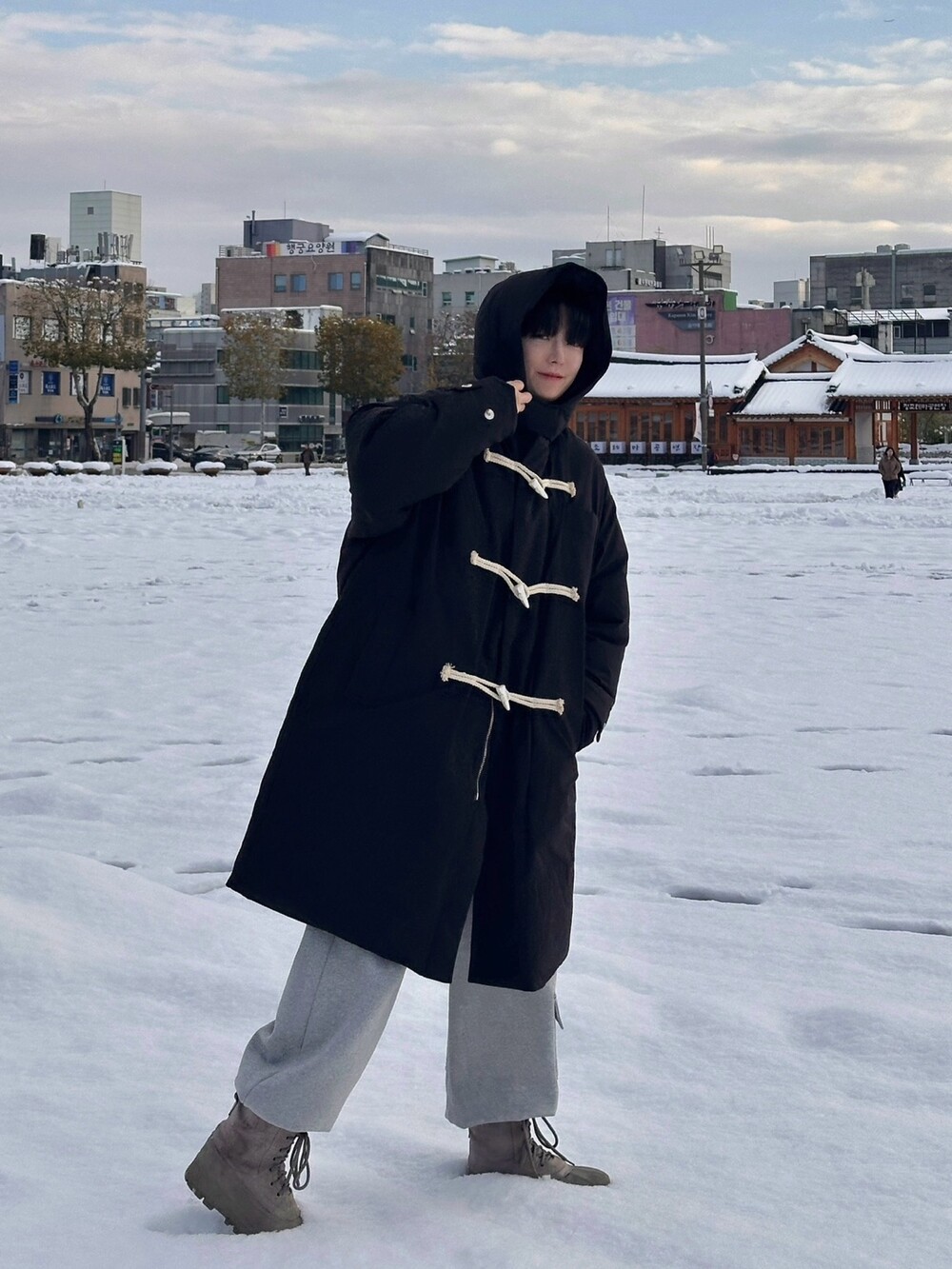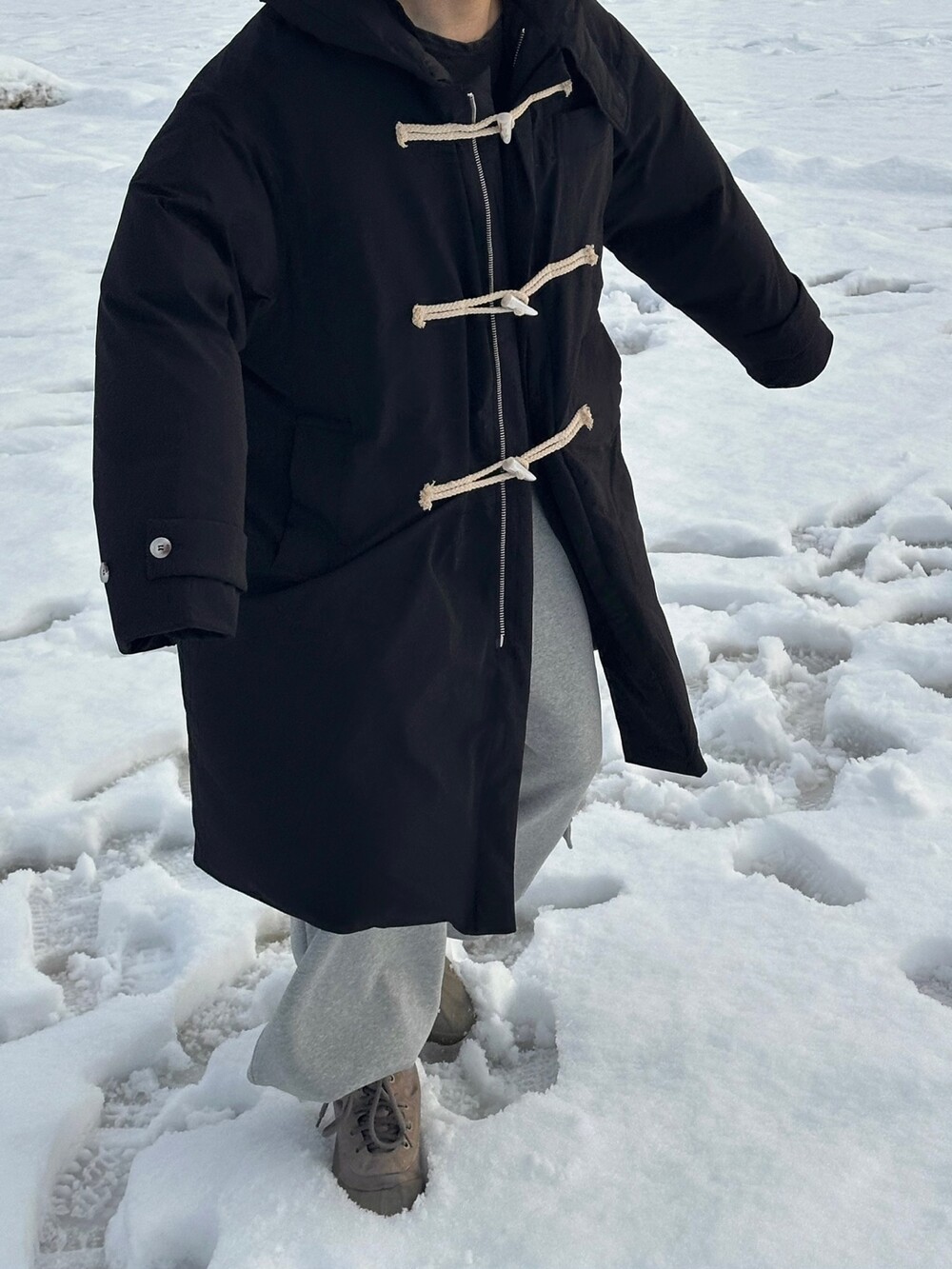 눈 오는 날 진짜 따뜻하게 착용한 롱 패딩입니다 !