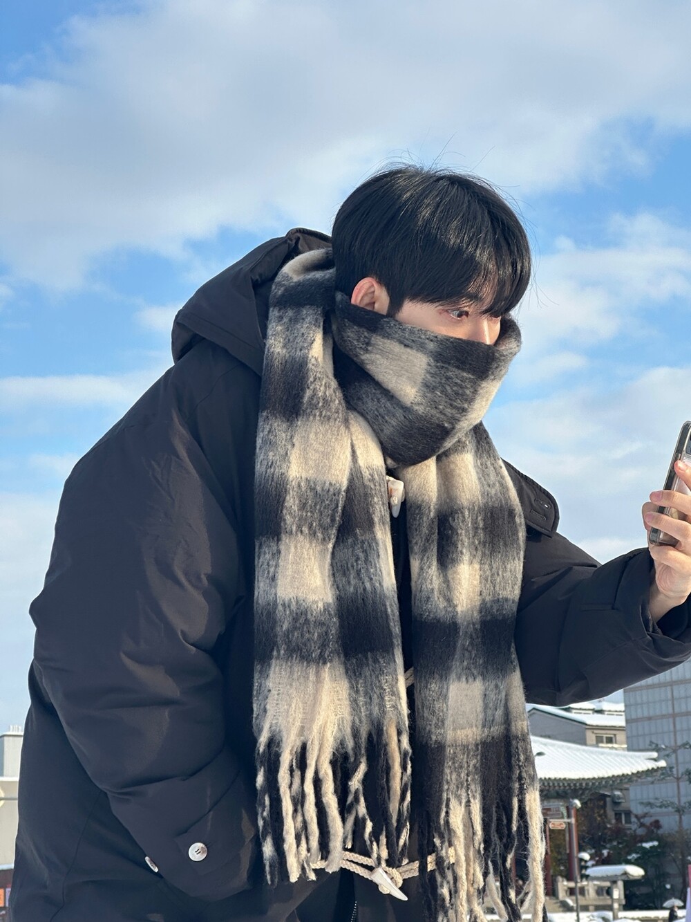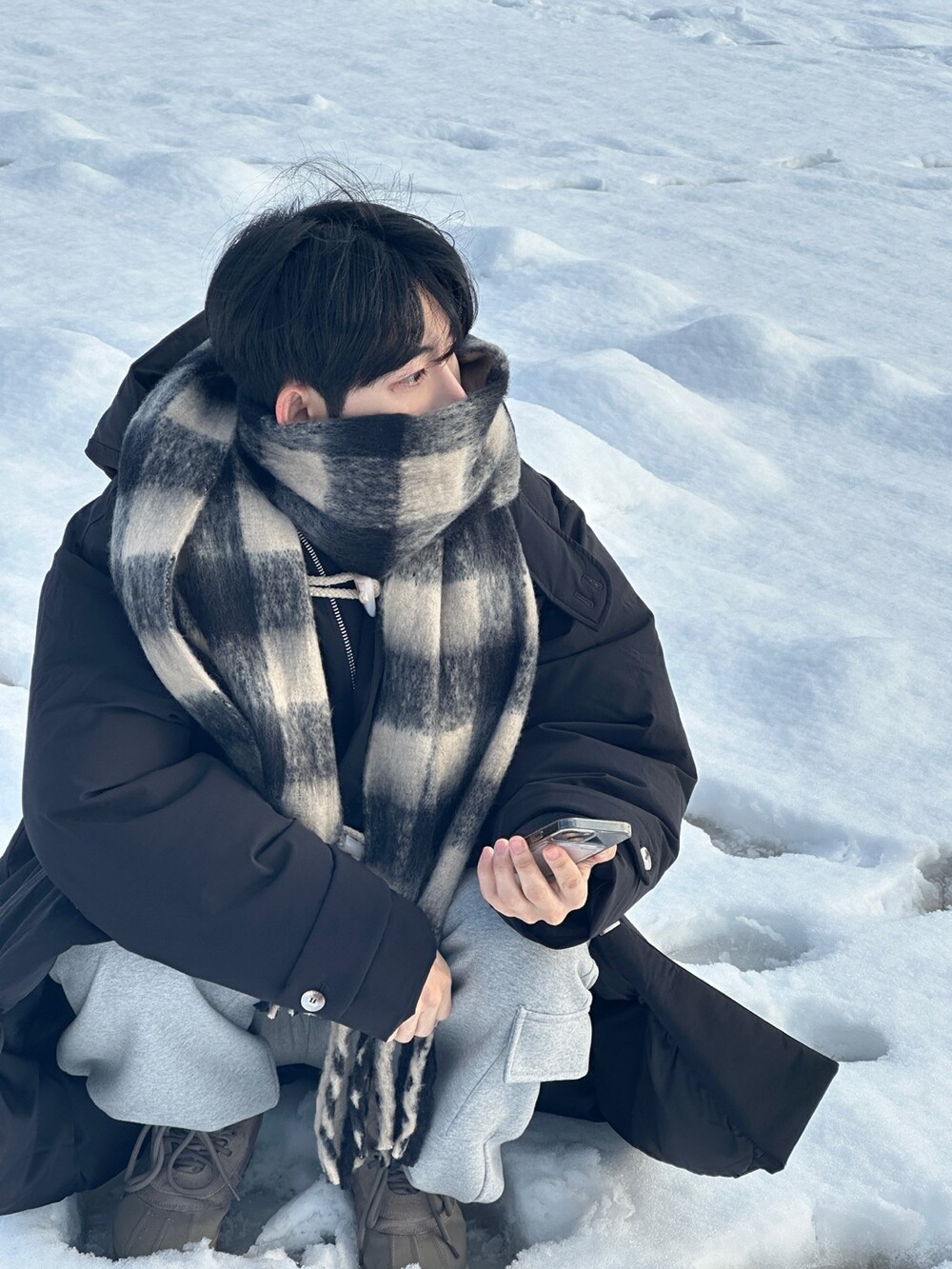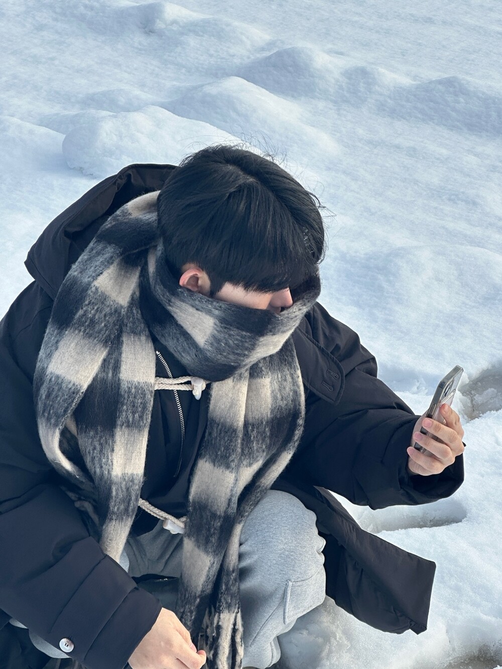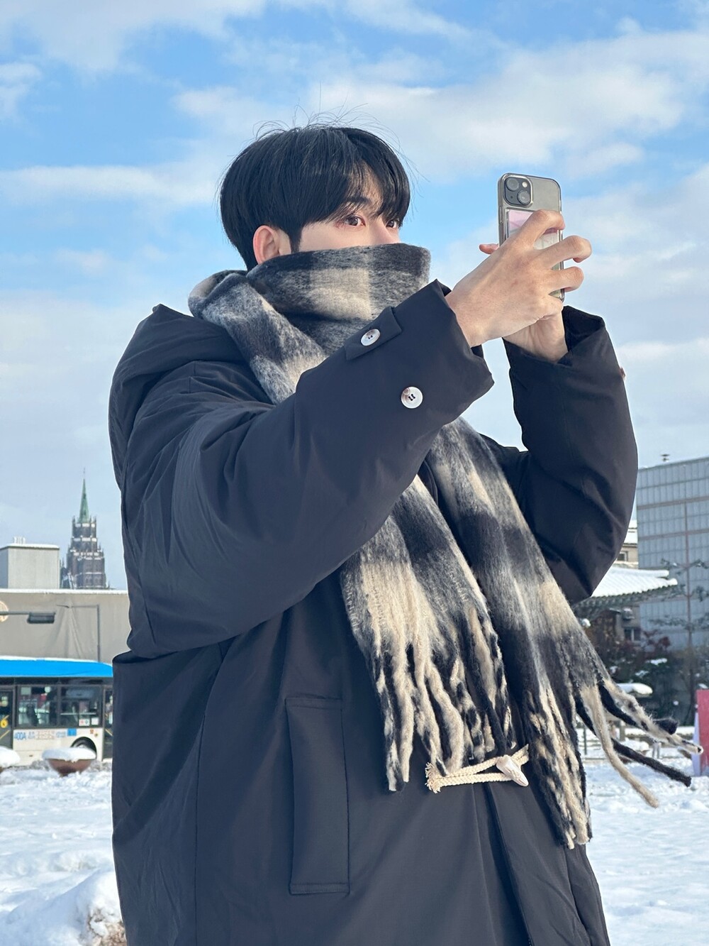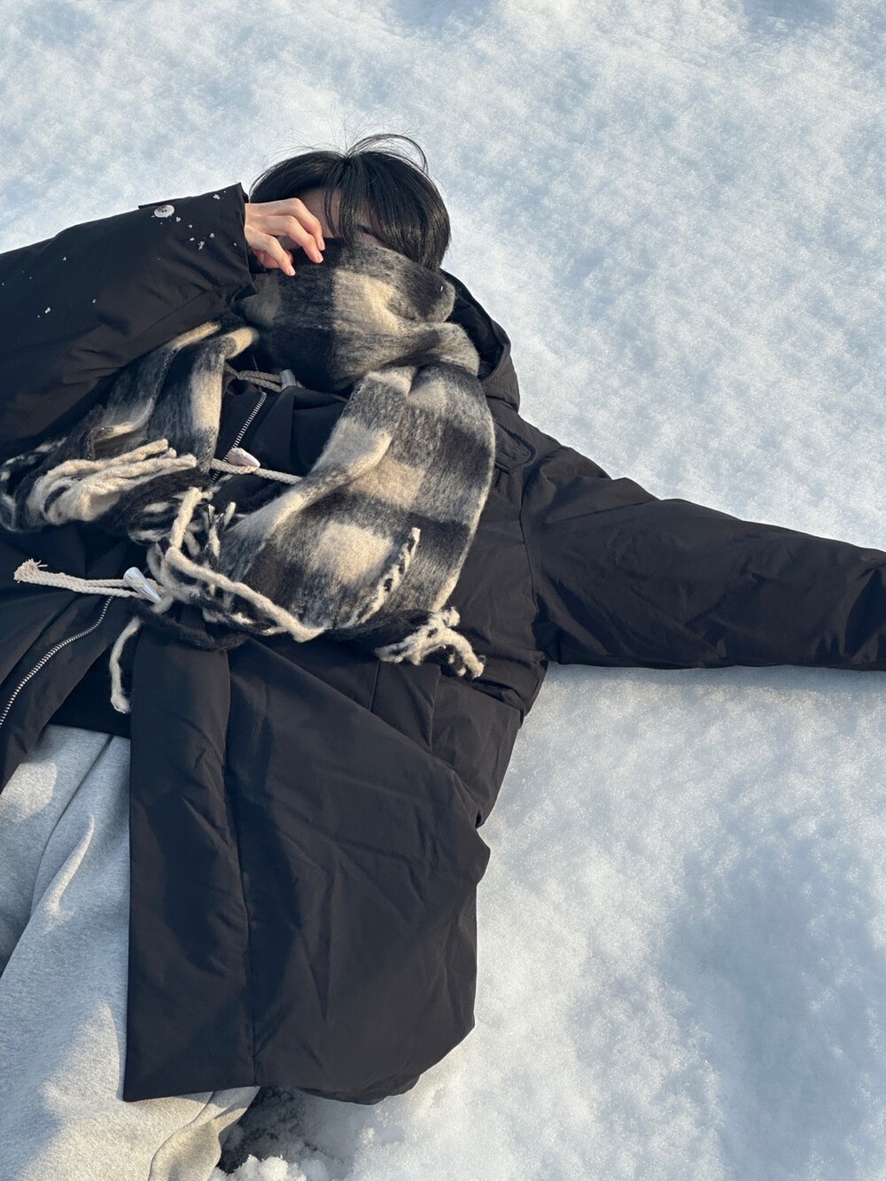눈 오는 날 진짜 따뜻하게 착용한 롱 패딩입니다 !