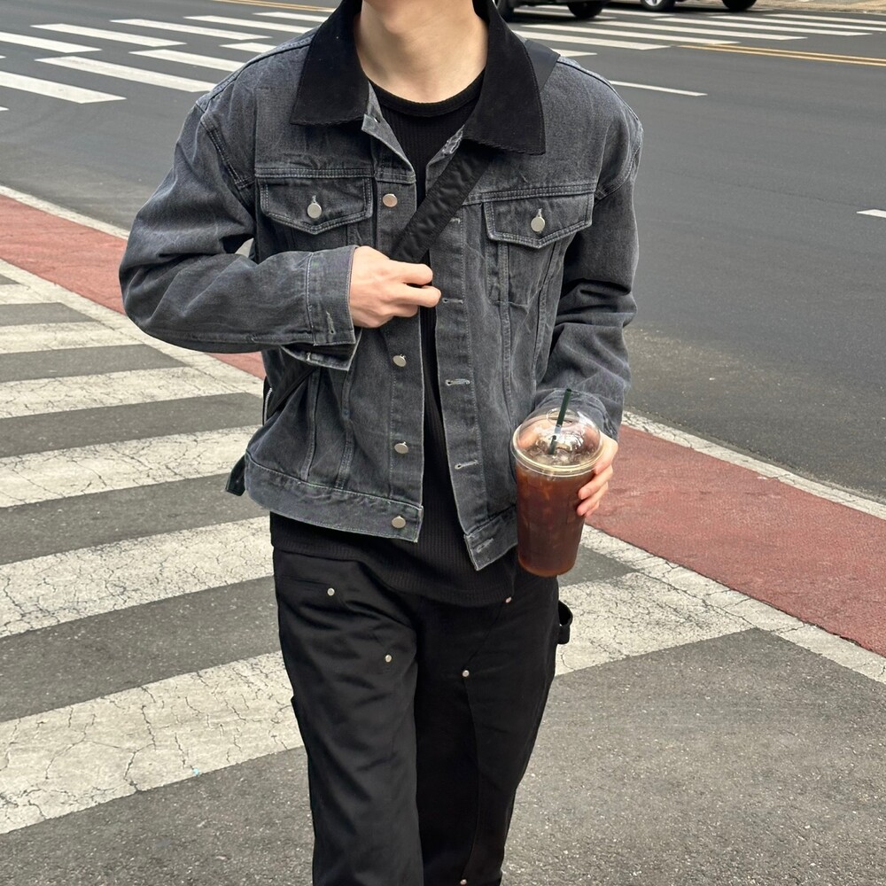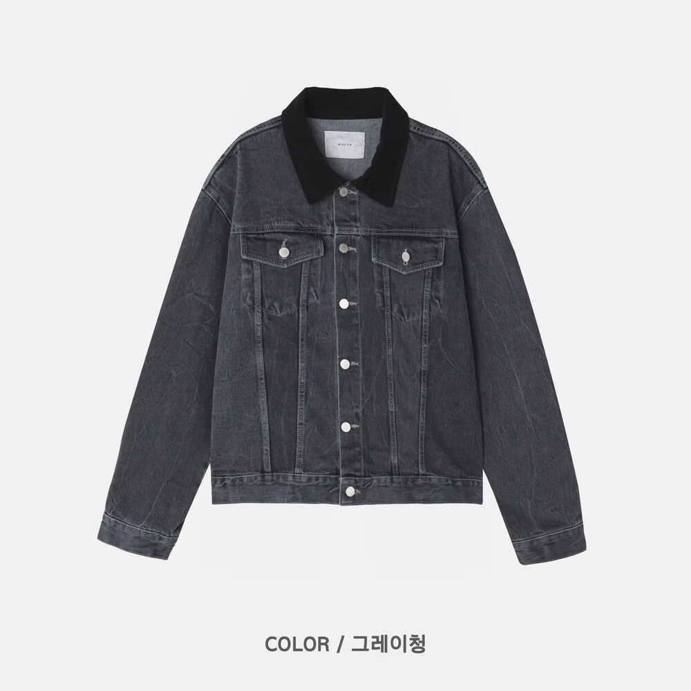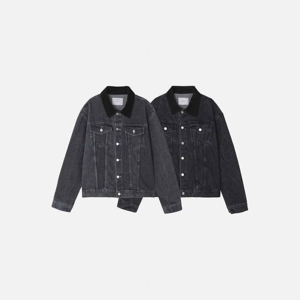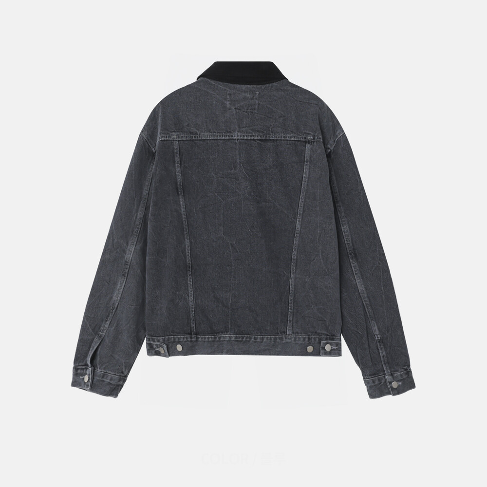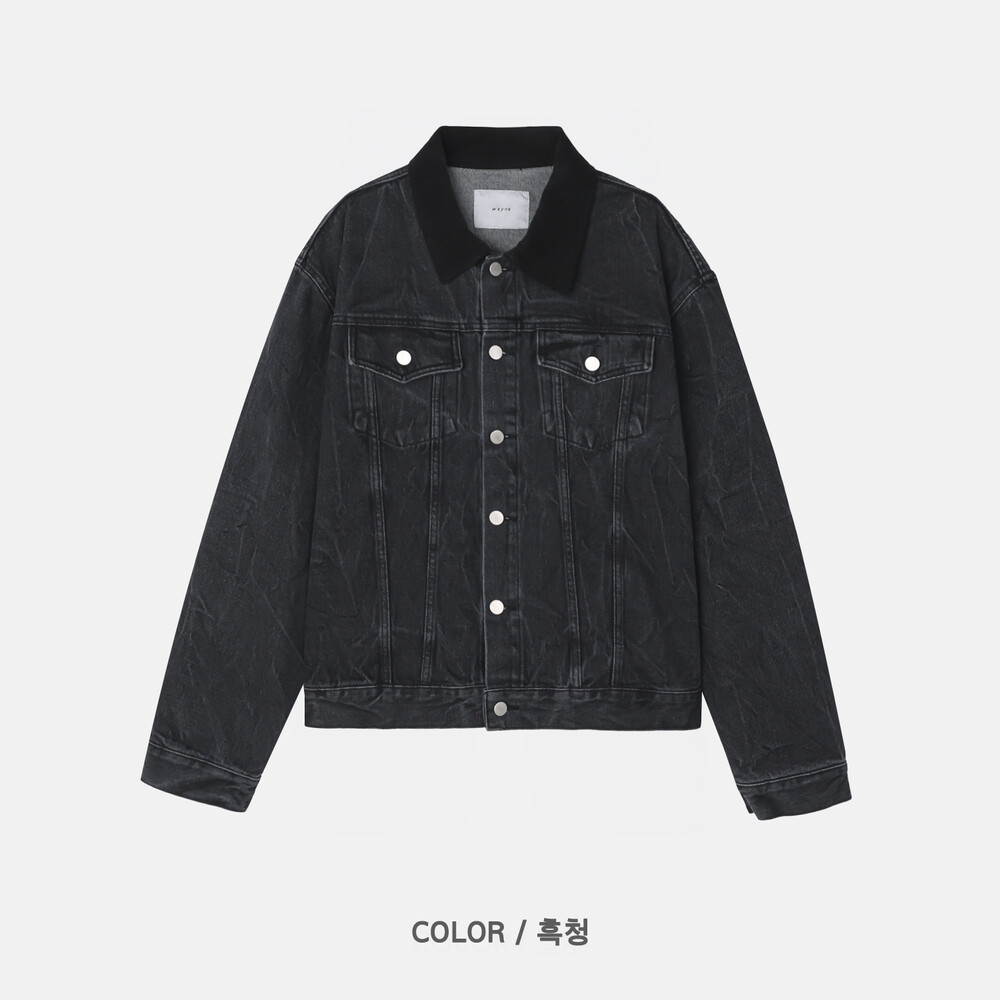 무채색 크랙 워싱에 블랙카라로 마무리한 디자인이 흔하지 않지만