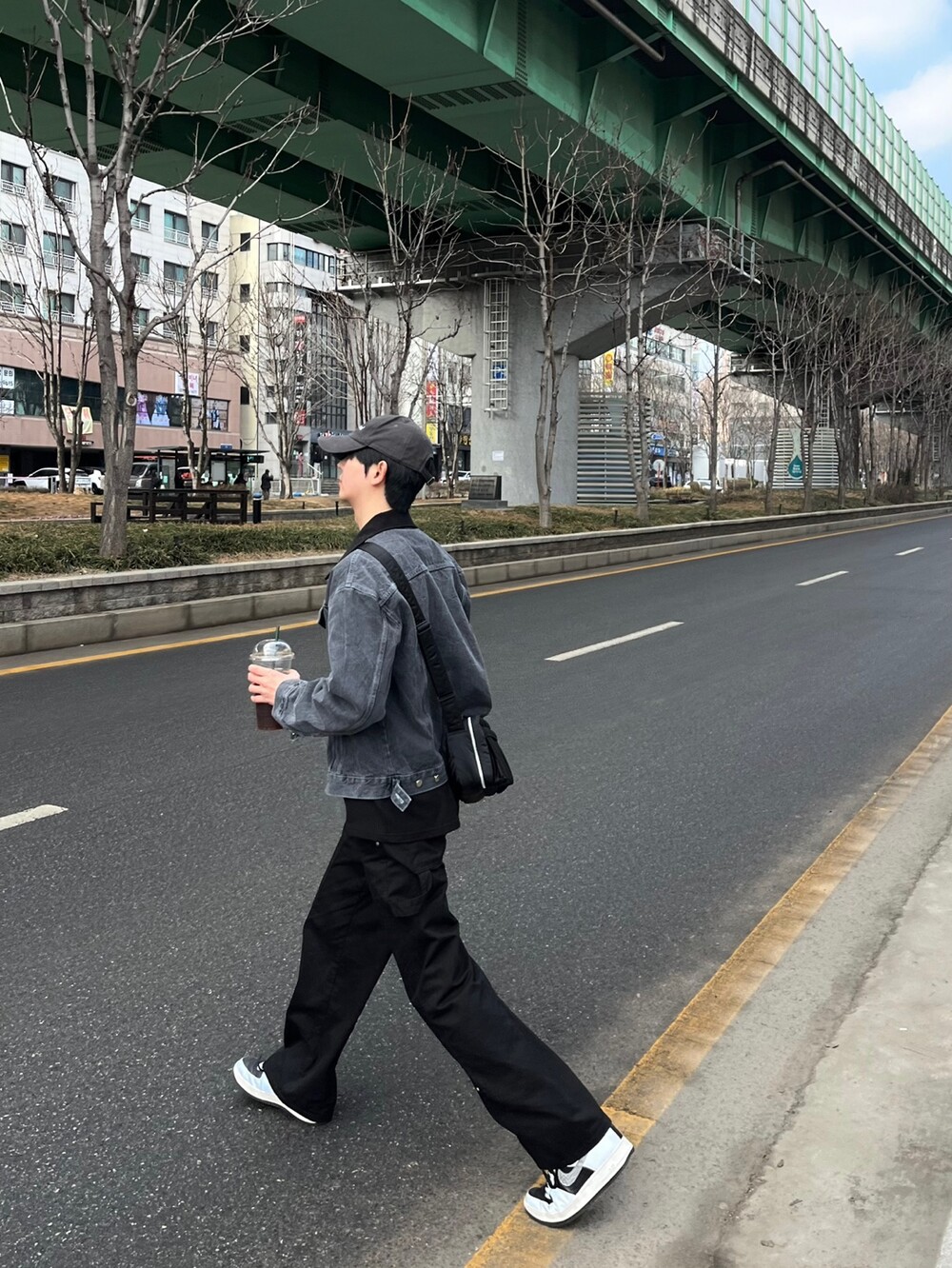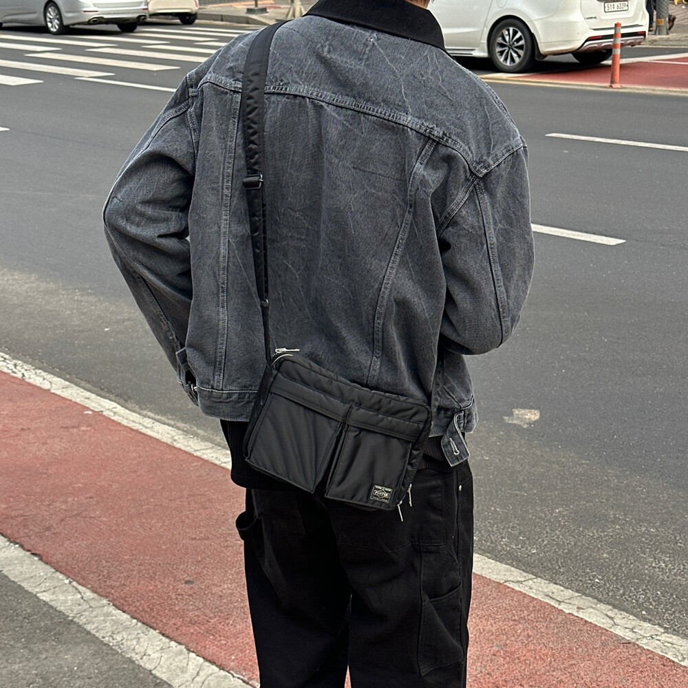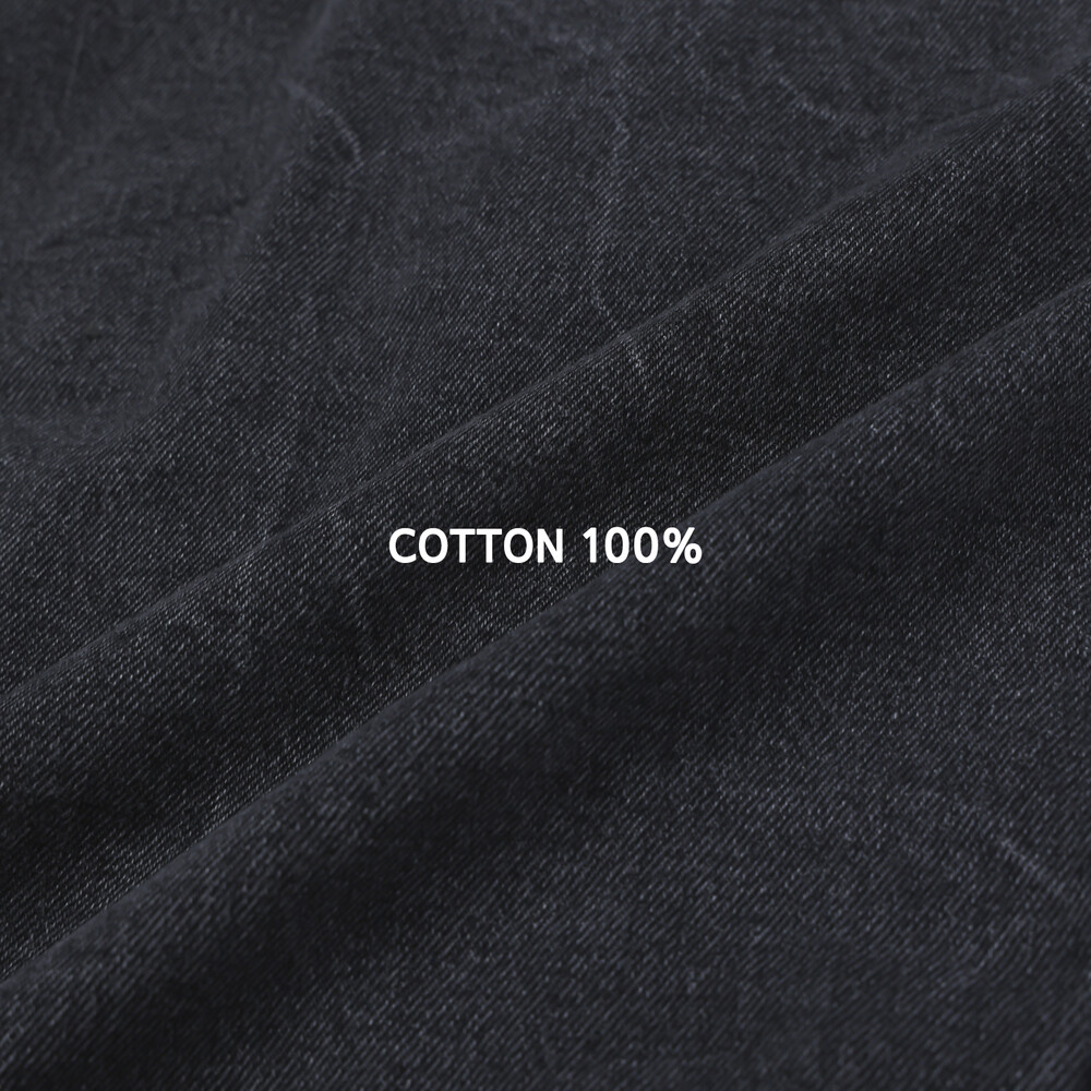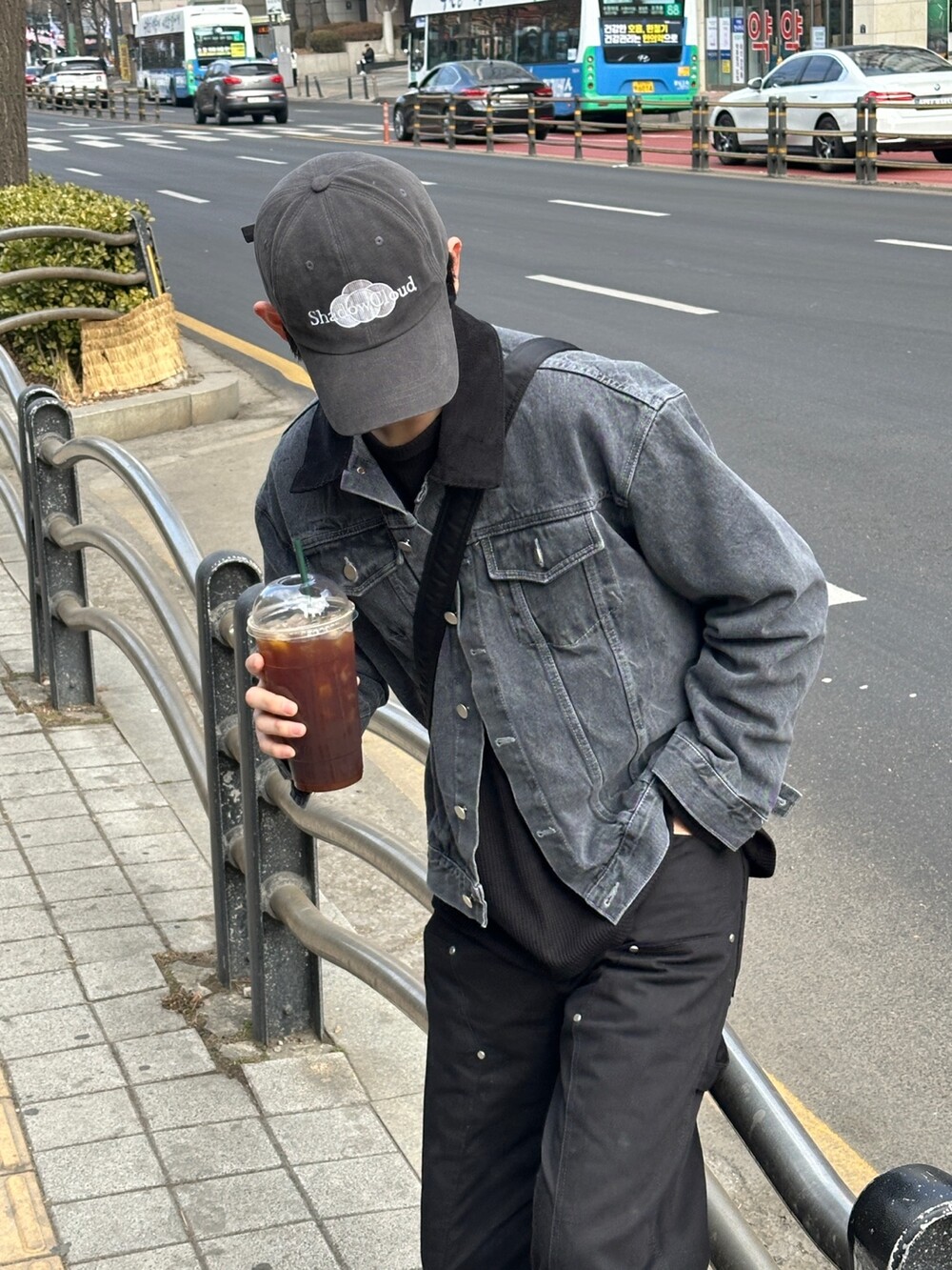 무채색 크랙 워싱에 블랙카라로 마무리한 디자인이 흔하지 않지만