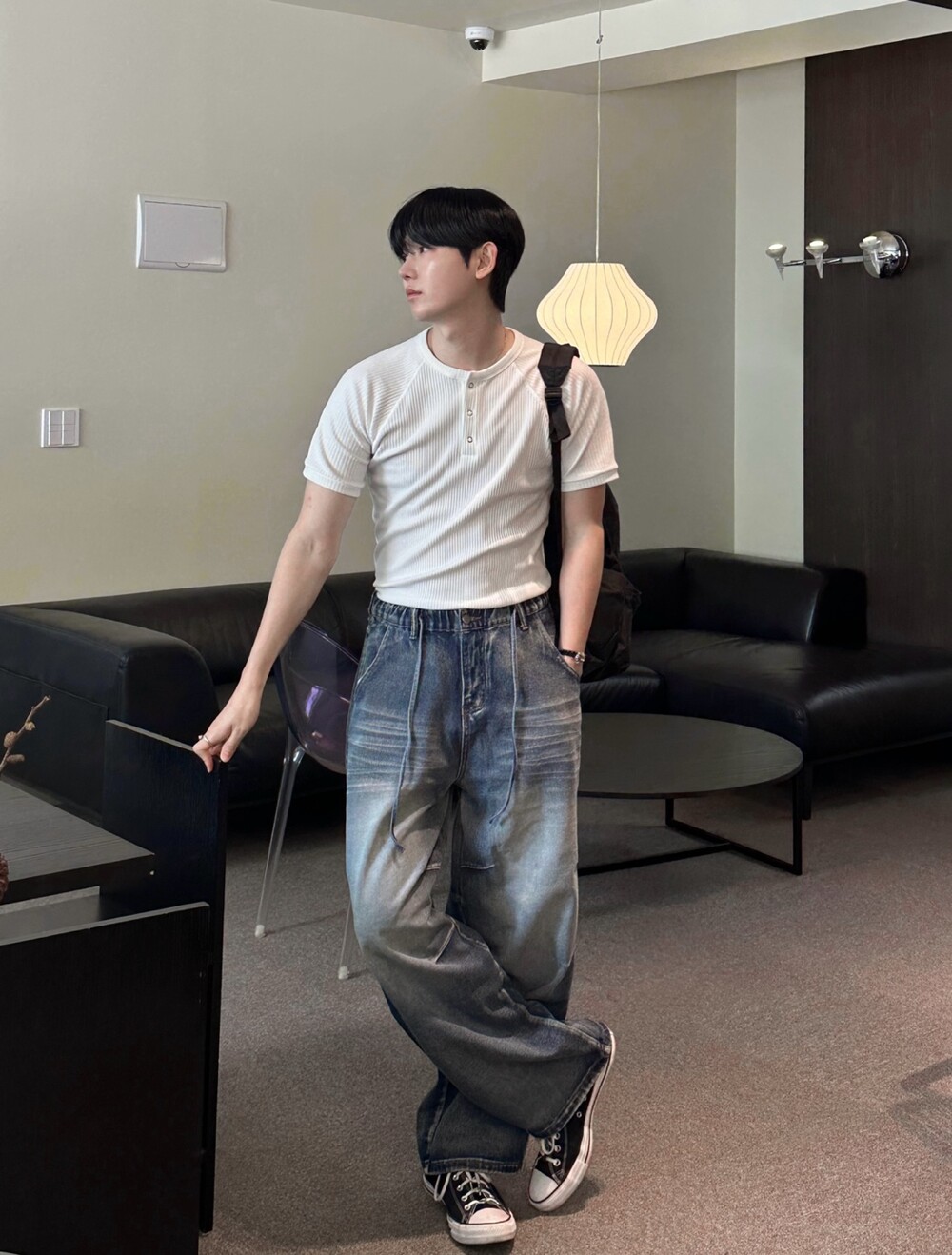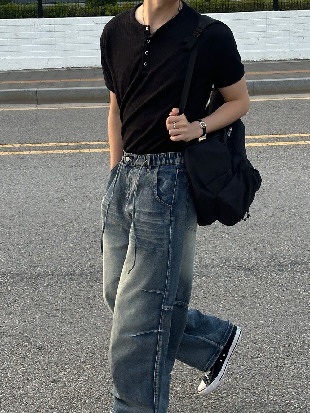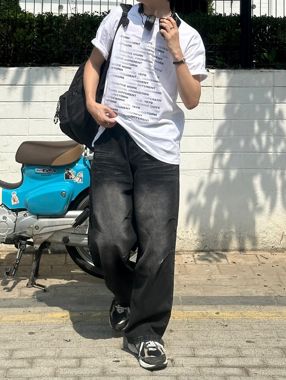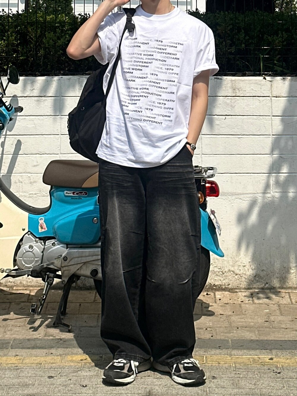 프린팅 티셔츠, 무지 티셔츠 전부 다 시너지가 좋은 팬츠라서