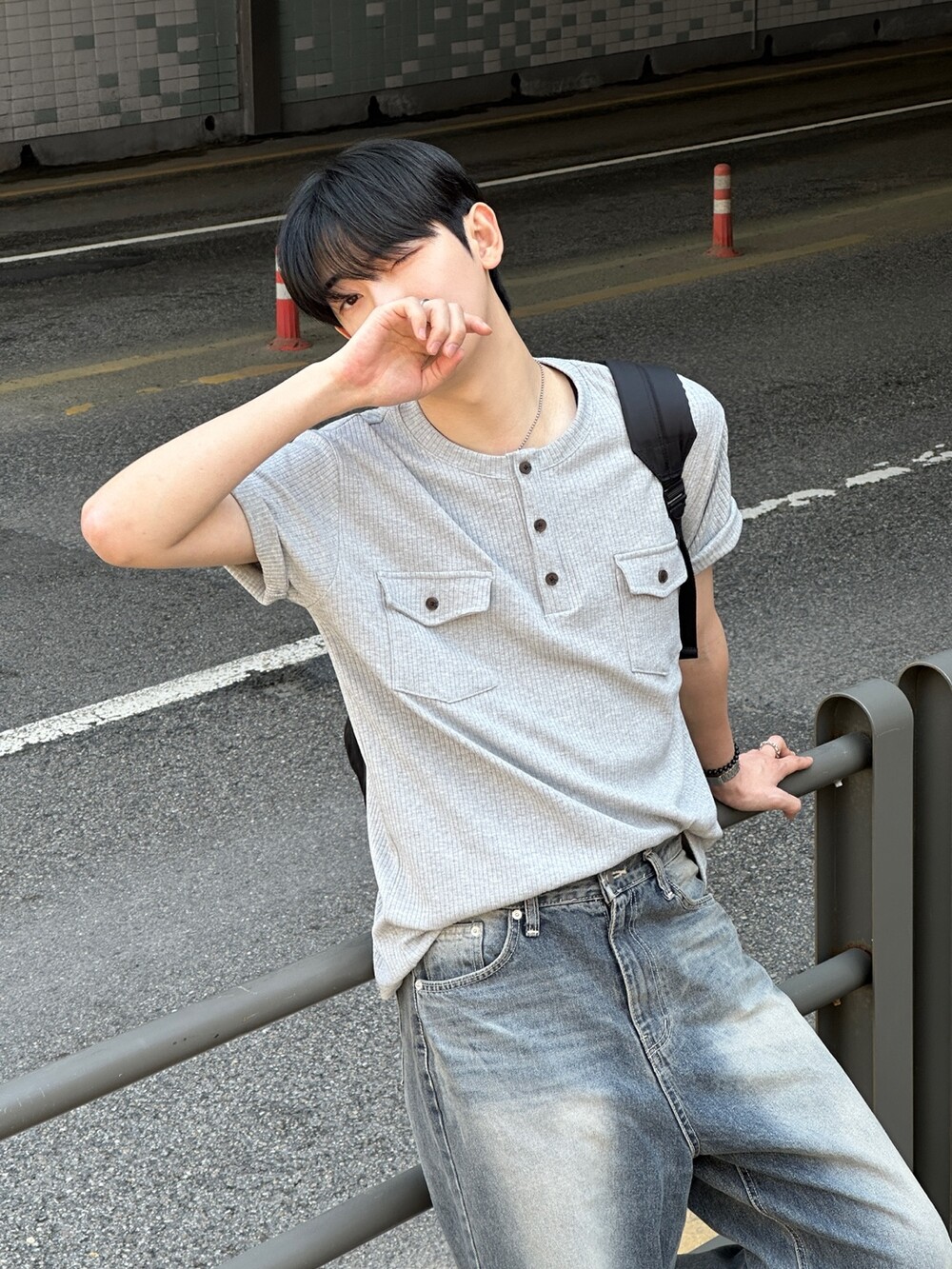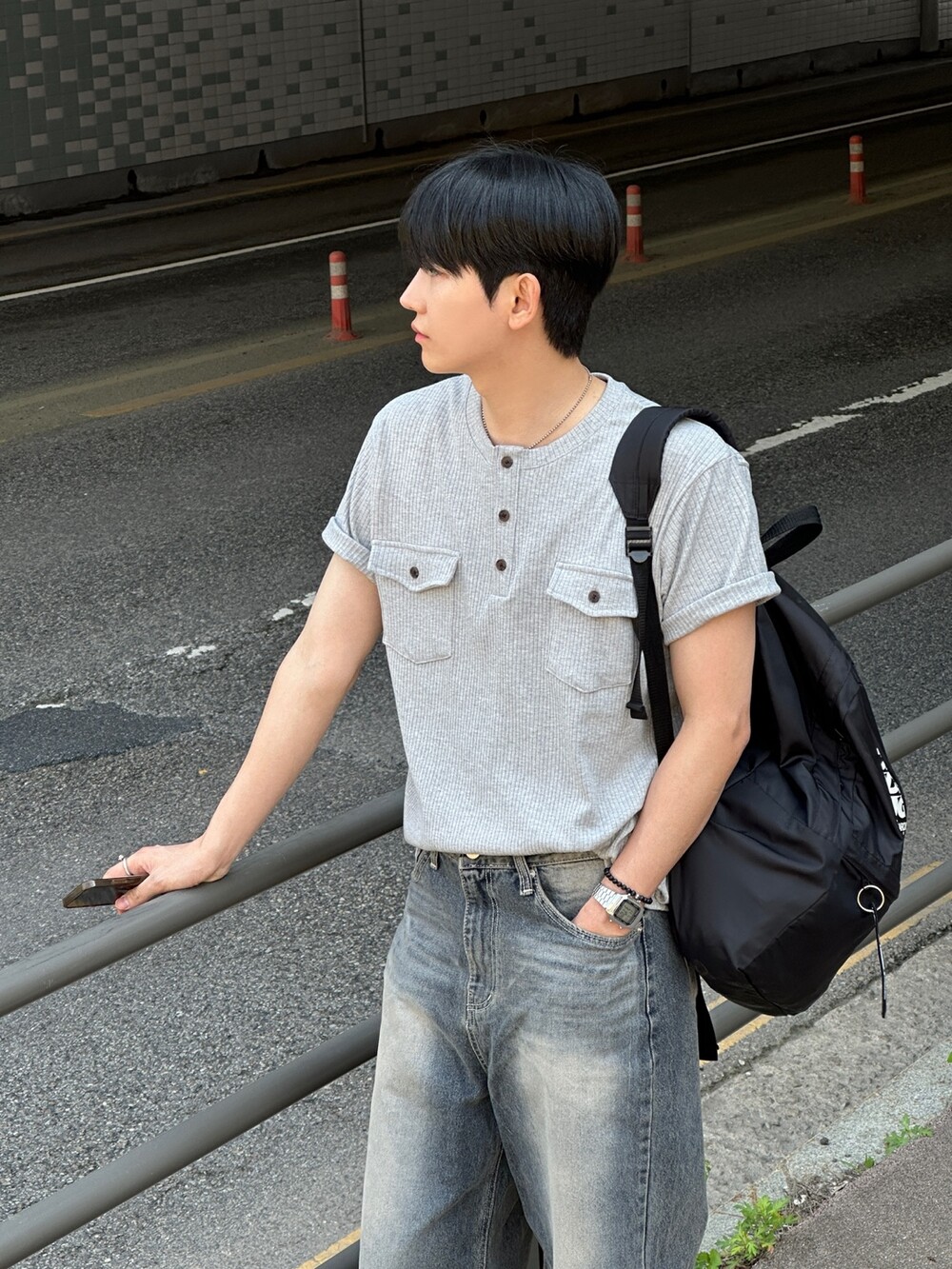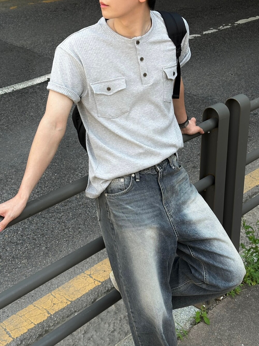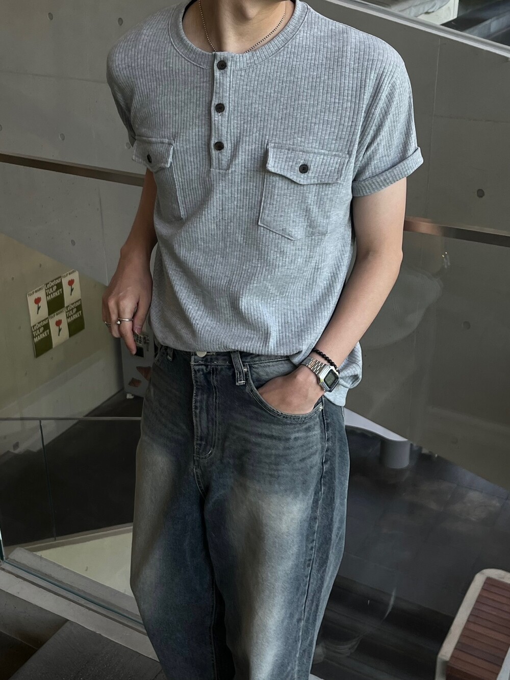 웨스턴 가슴포켓 디테일과 헨리넥 디테일이 장점인 티셔츠입니다
