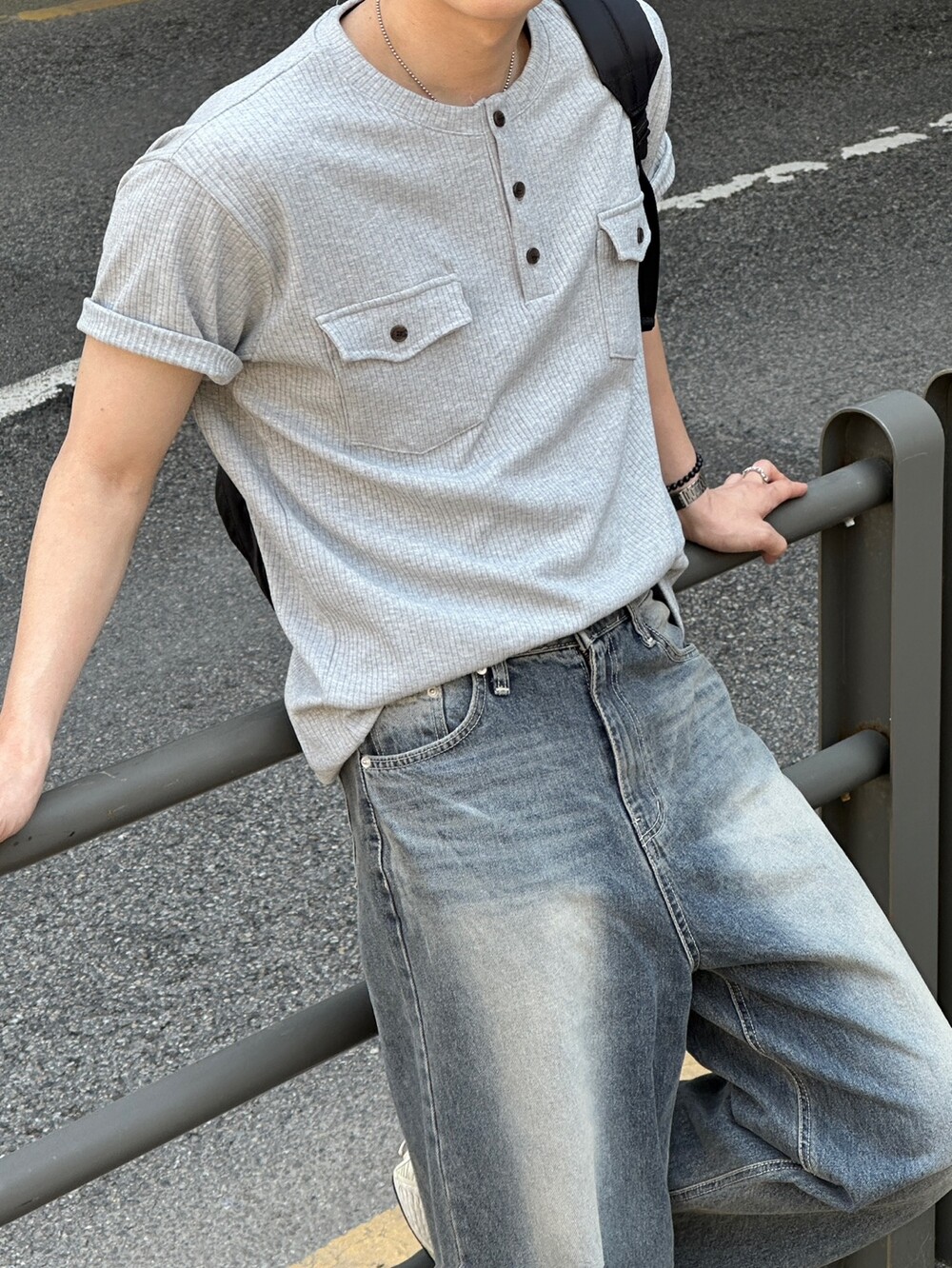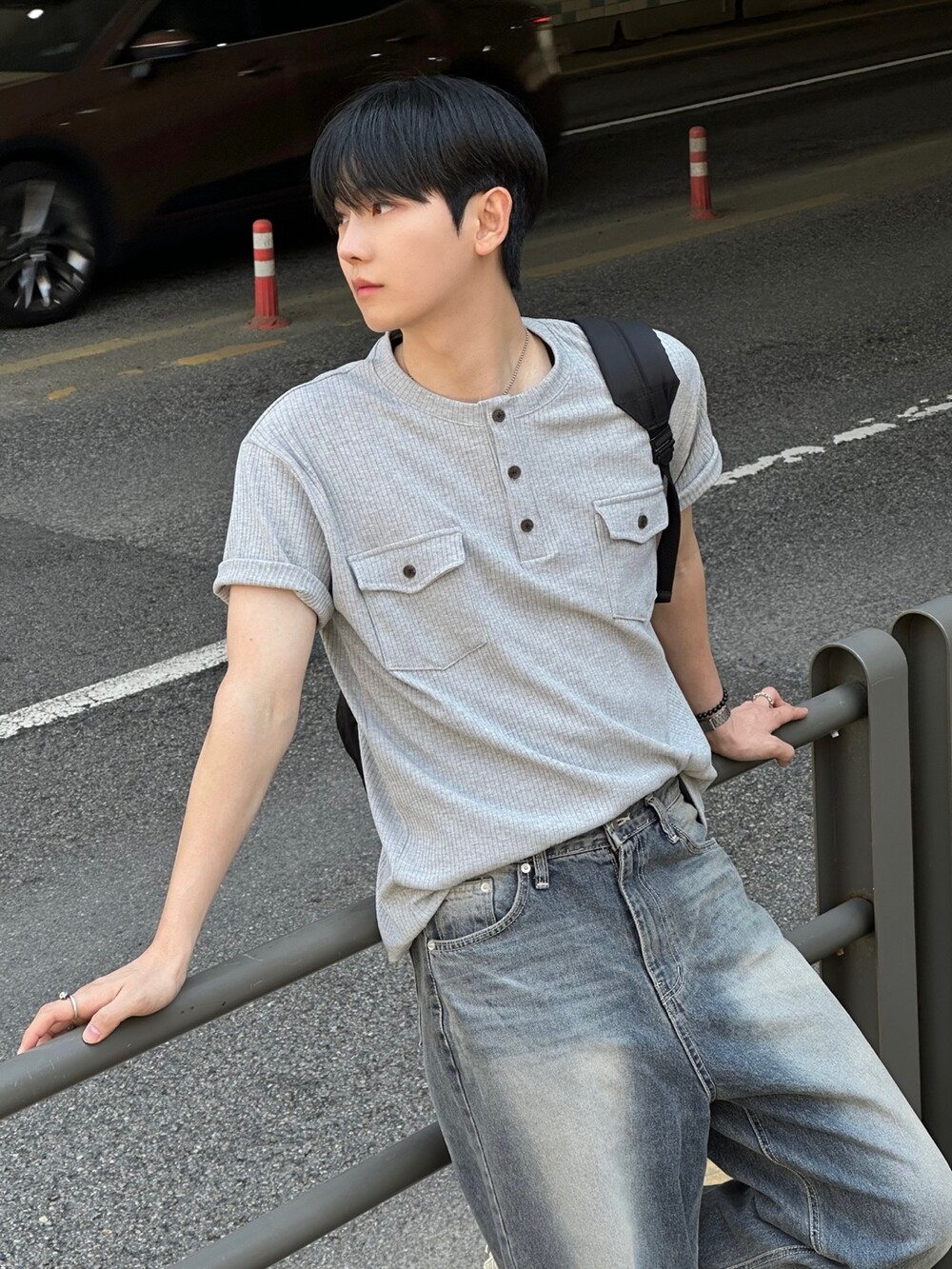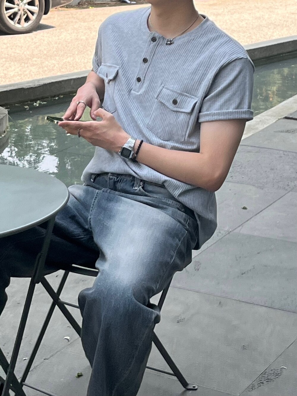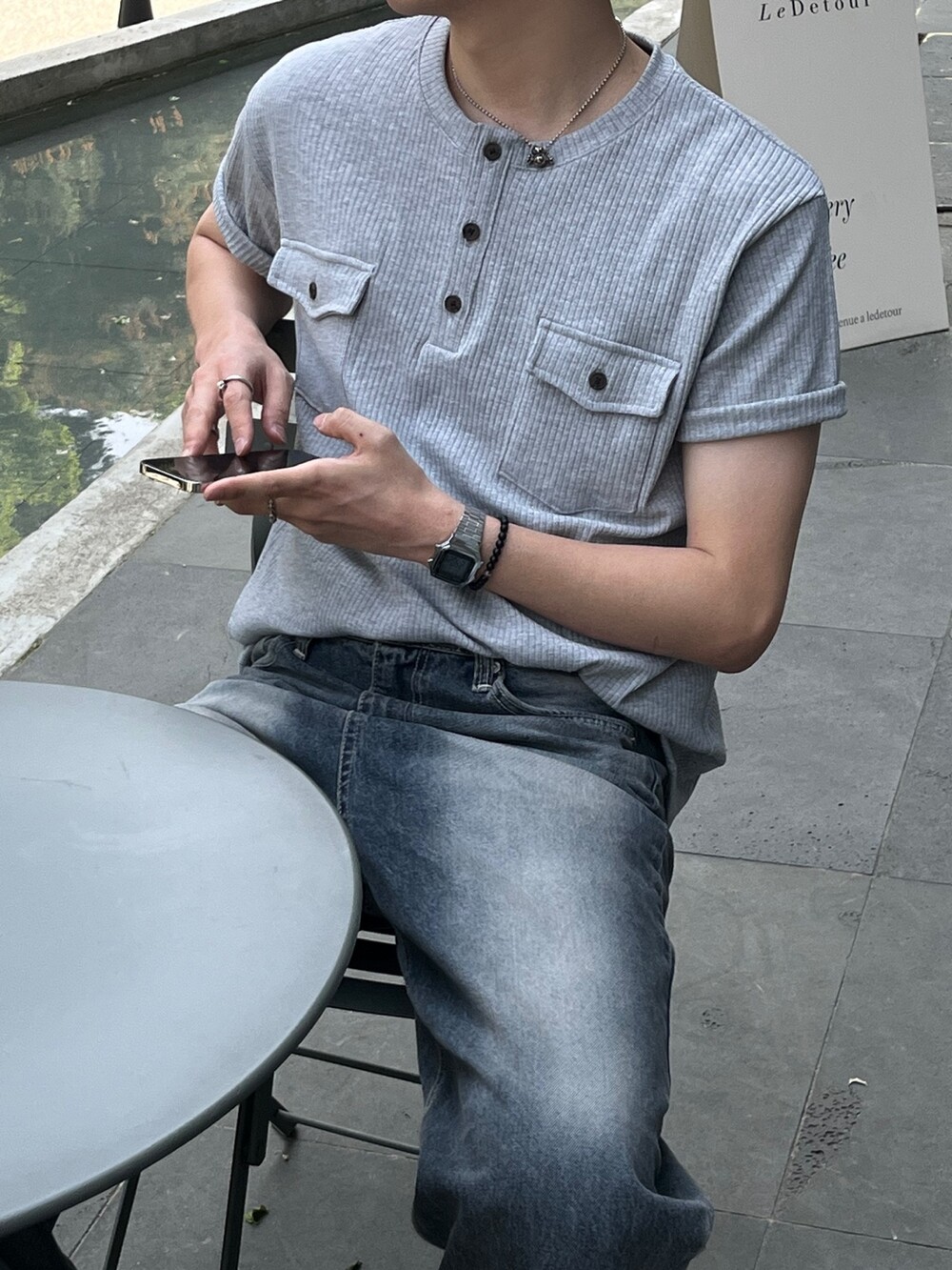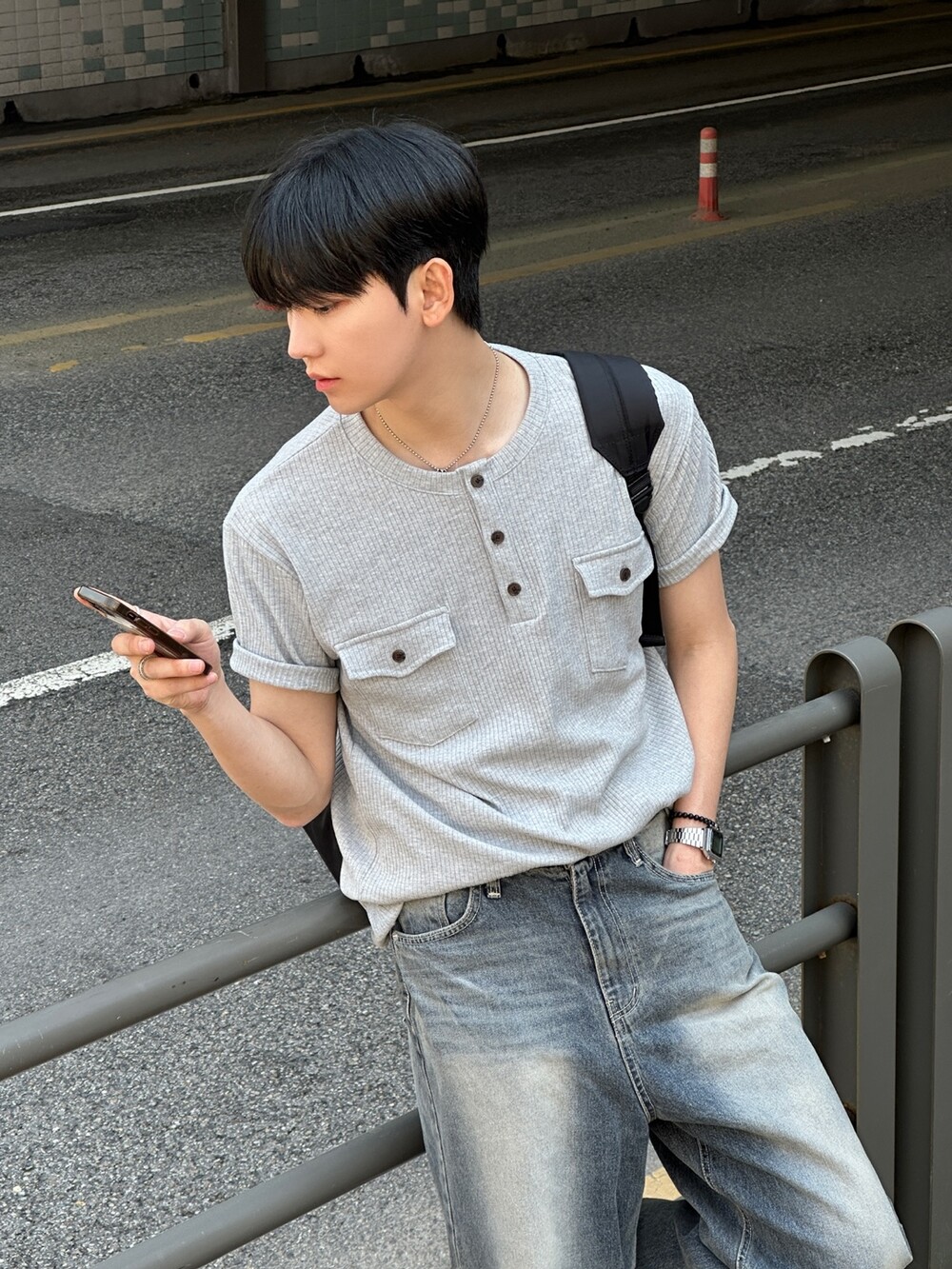 웨스턴 가슴포켓 디테일과 헨리넥 디테일이 장점인 티셔츠입니다