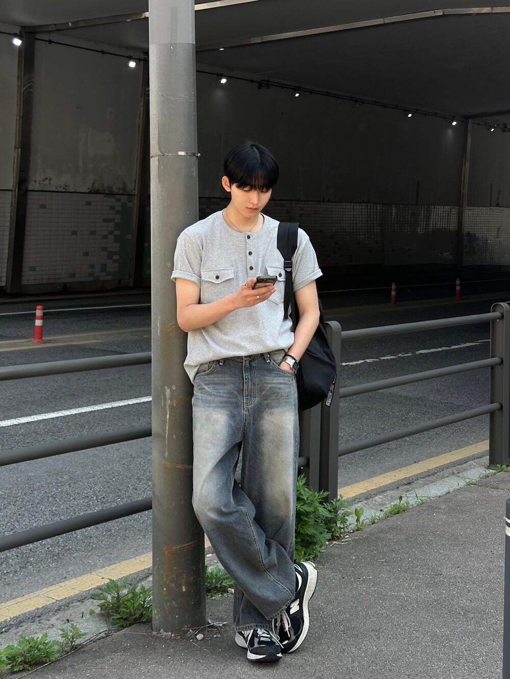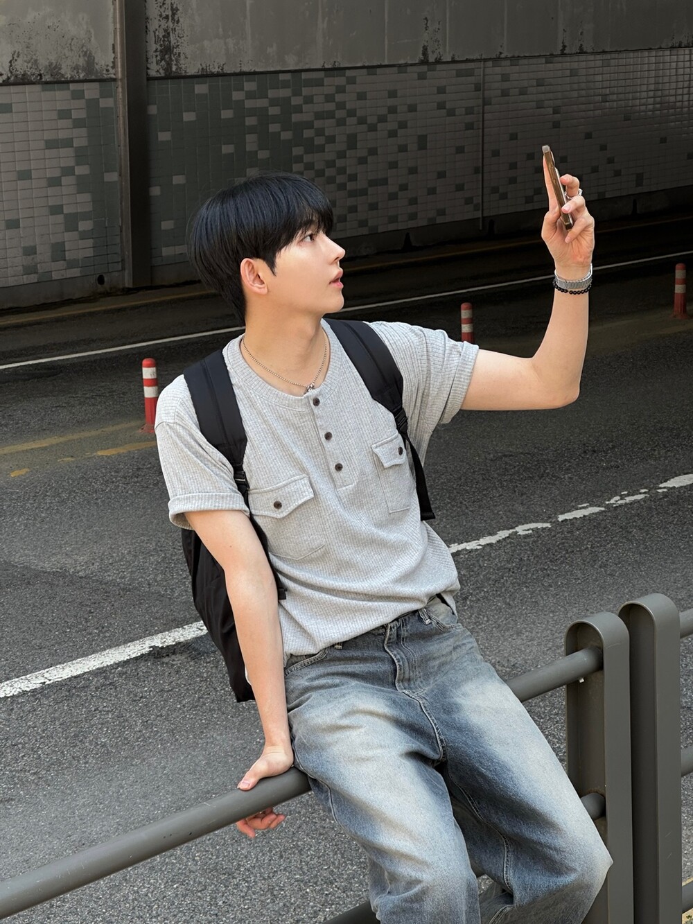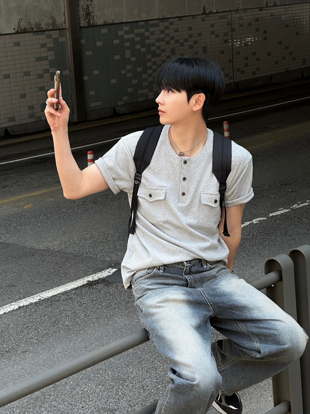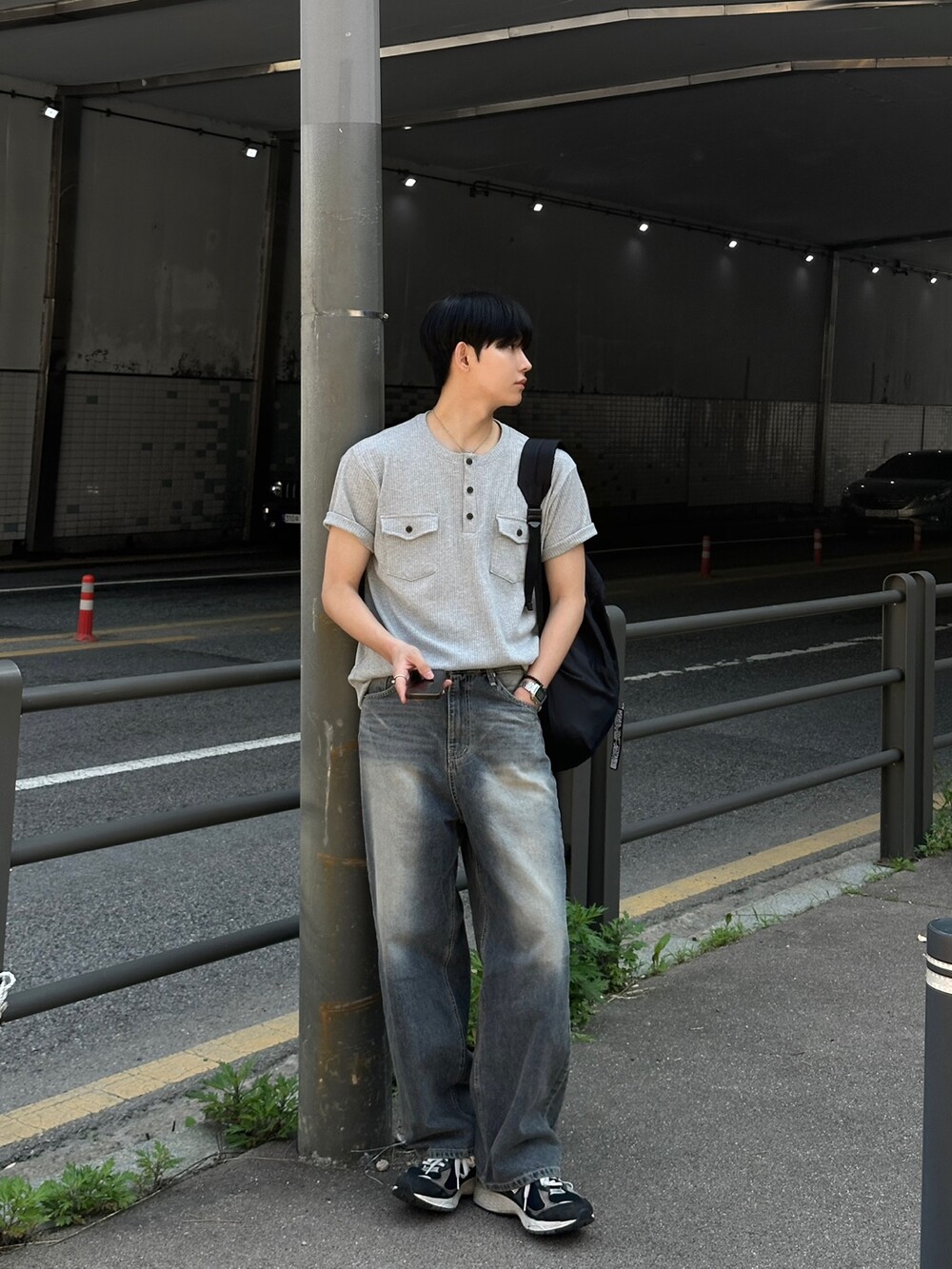 웨스턴 가슴포켓 디테일과 헨리넥 디테일이 장점인 티셔츠입니다