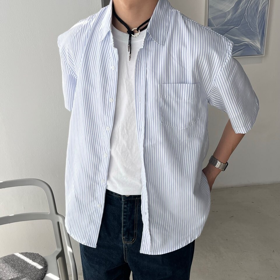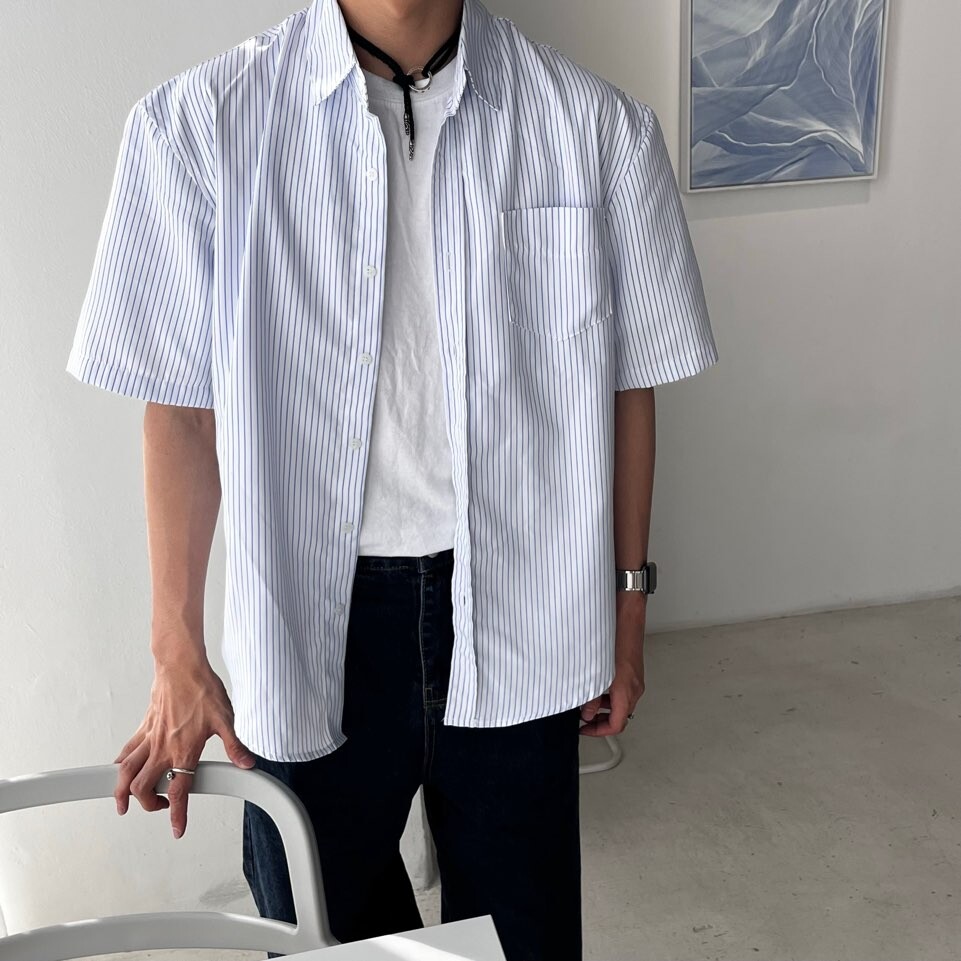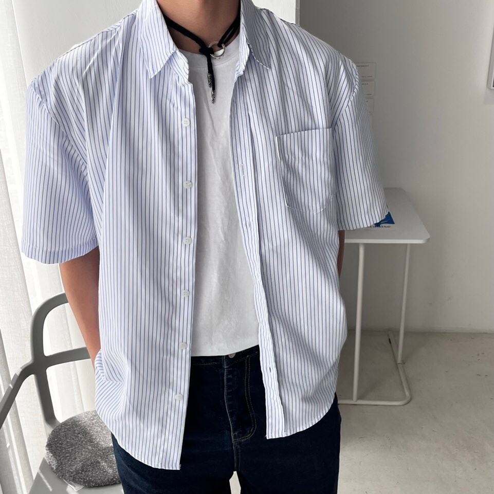 로우 스트라이프 하프셔츠 (2color)