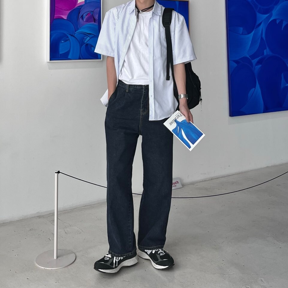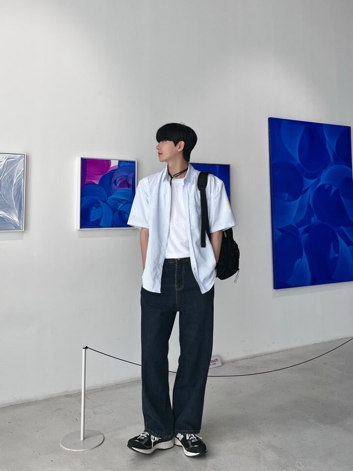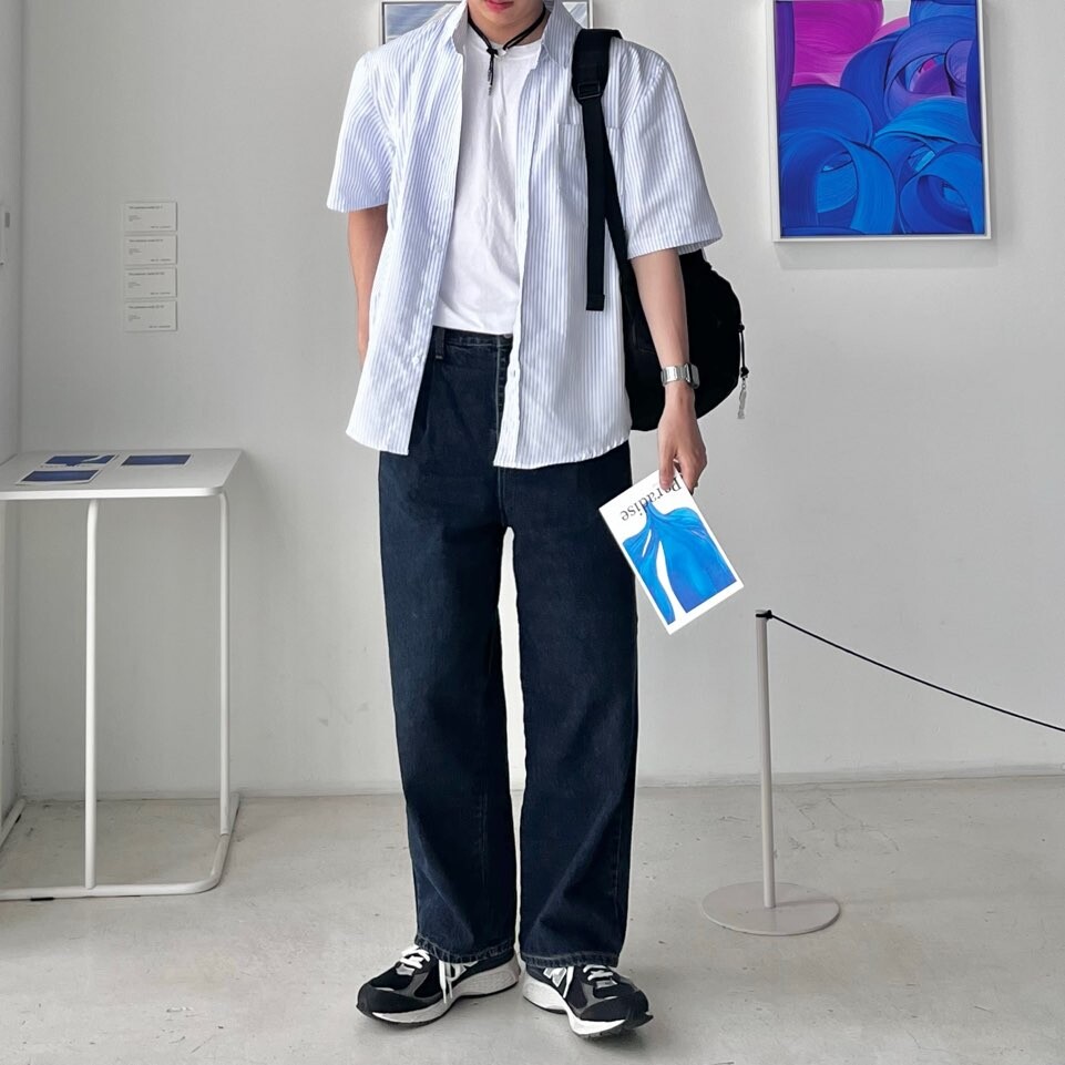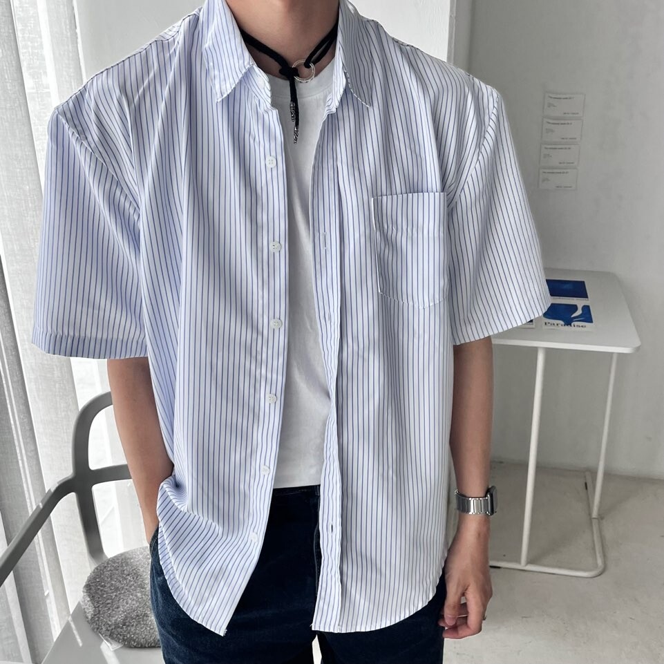 로우 스트라이프 하프셔츠 (2color)