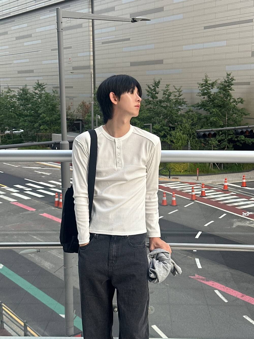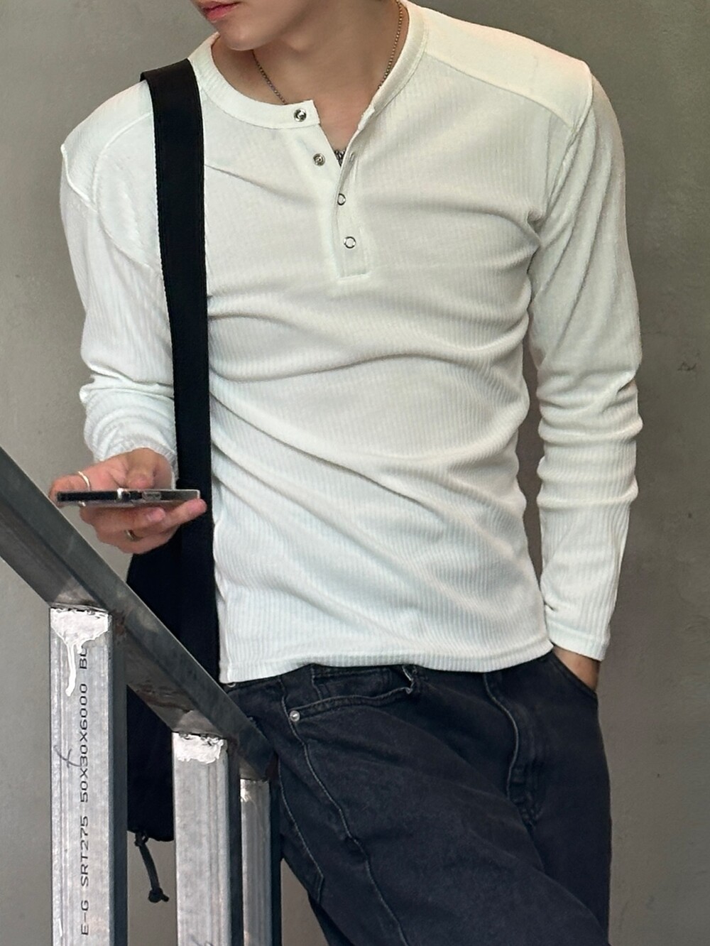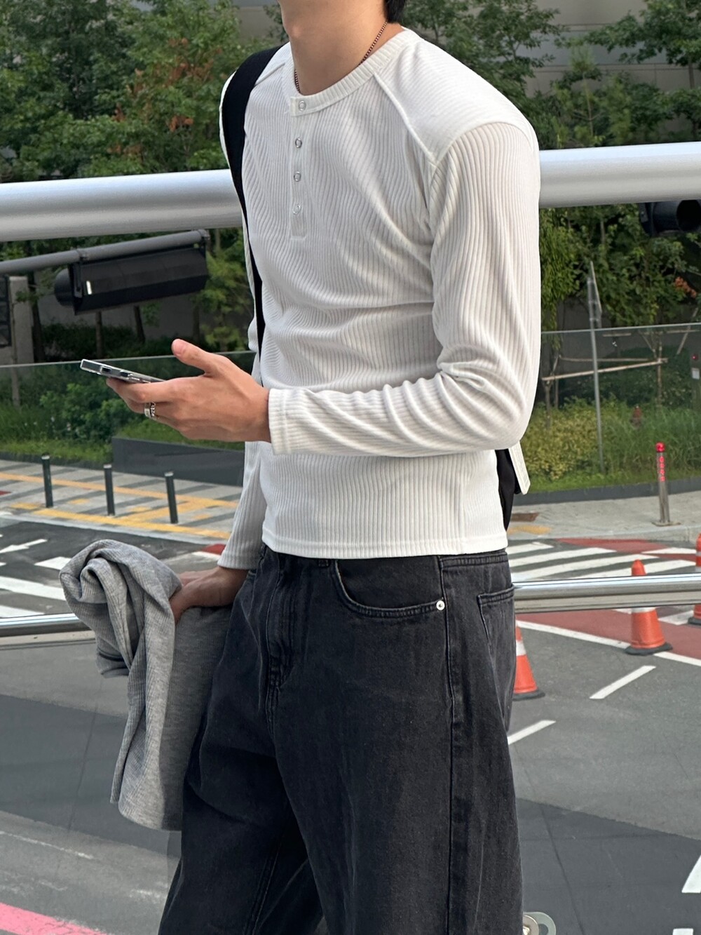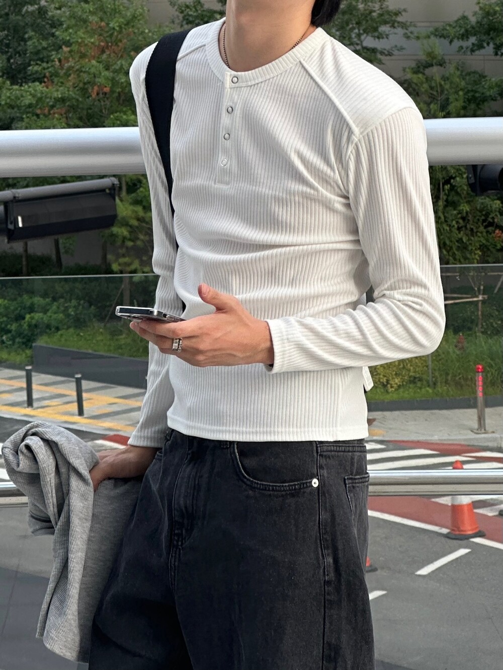 실버 3버튼 헨리넥 디테일과 레글런 절개 디테일이 너무 매력적인 아이템 !