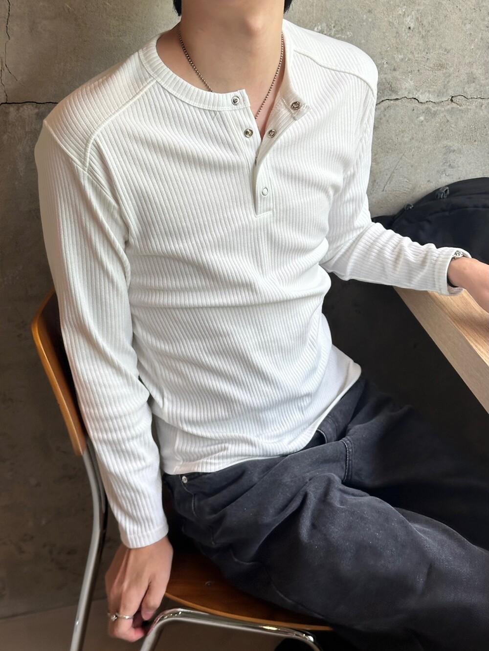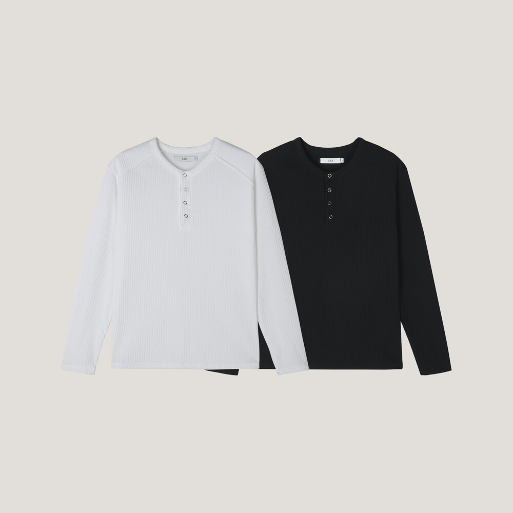 더블 숄더 골지 헨리넥 티 (2color)