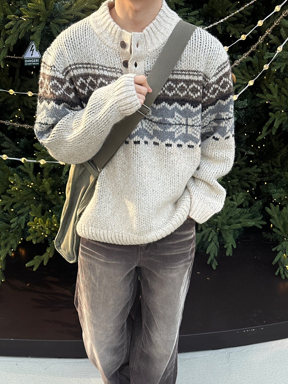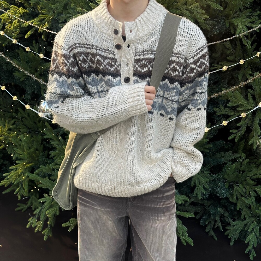 연말 무드에 3버튼 헨리넥 디테일까지