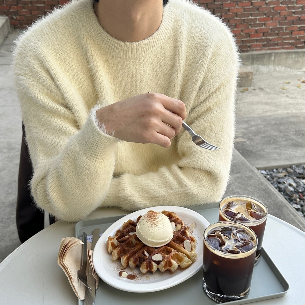 실내에서 외투 벗고 단품으로만 착용해도 멋스러운 니트입니다