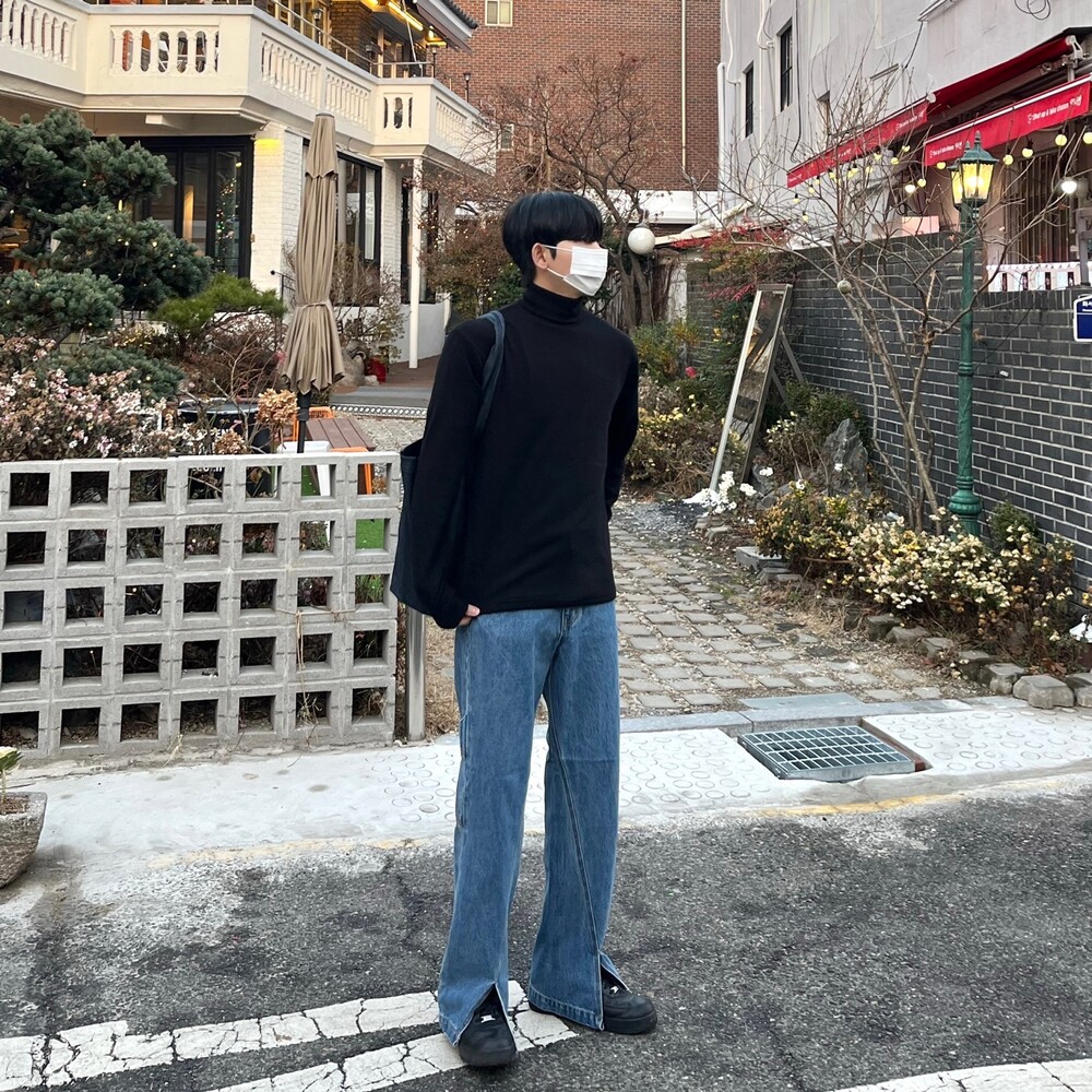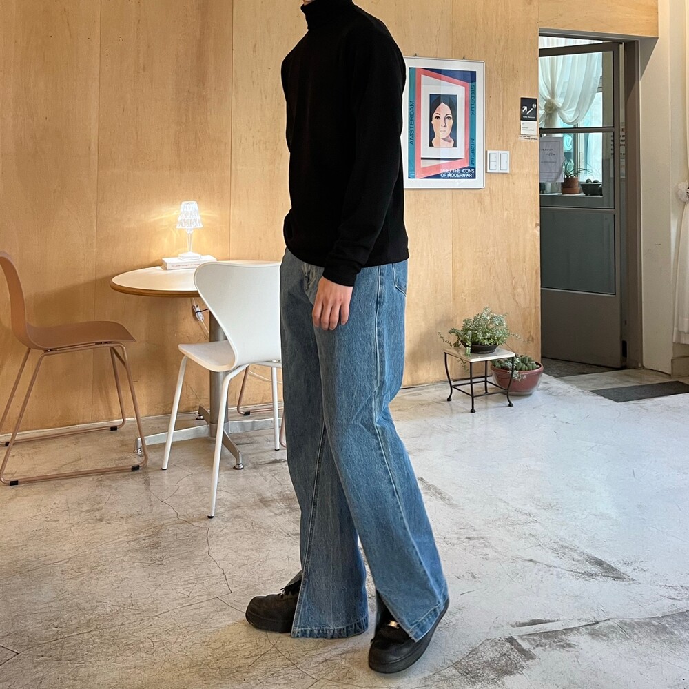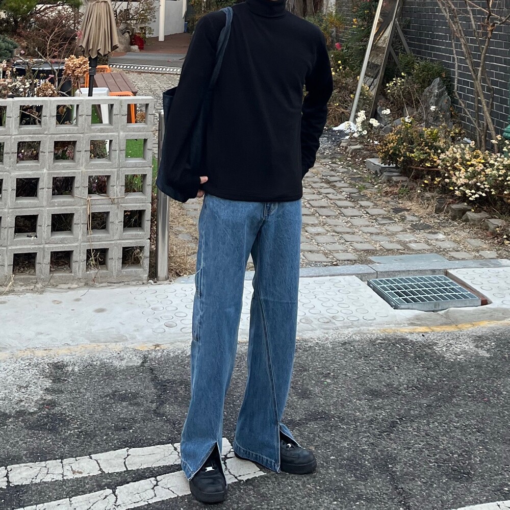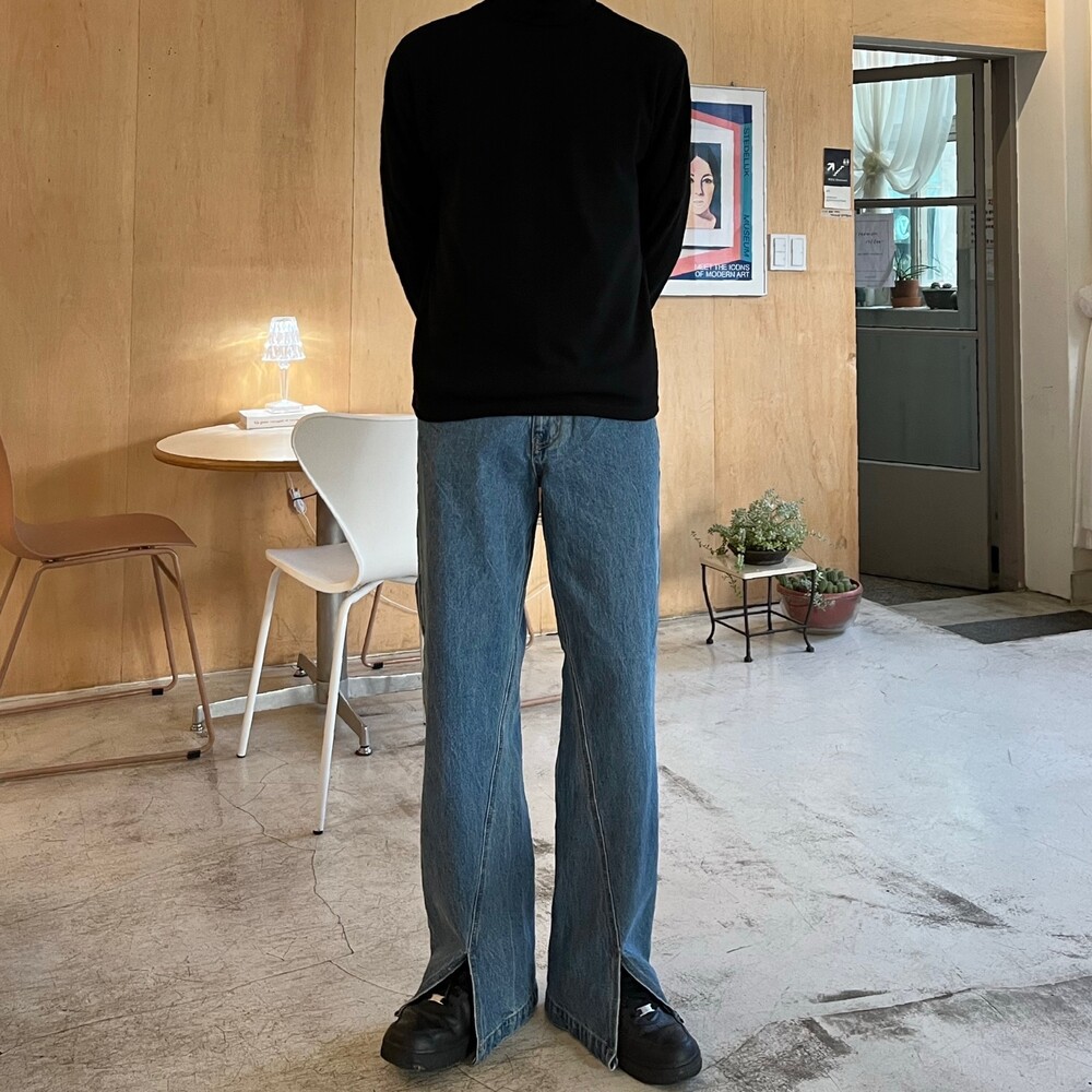 사선 트임 팬츠