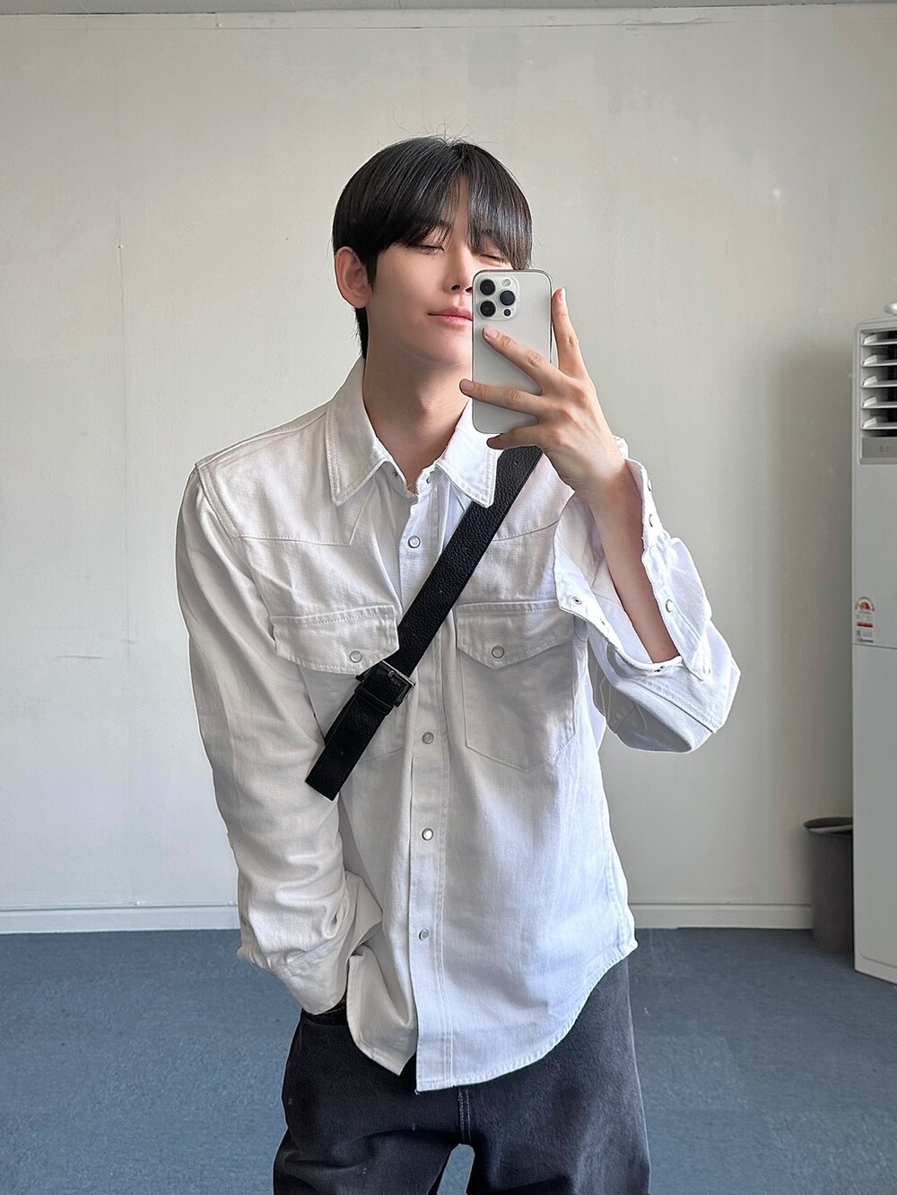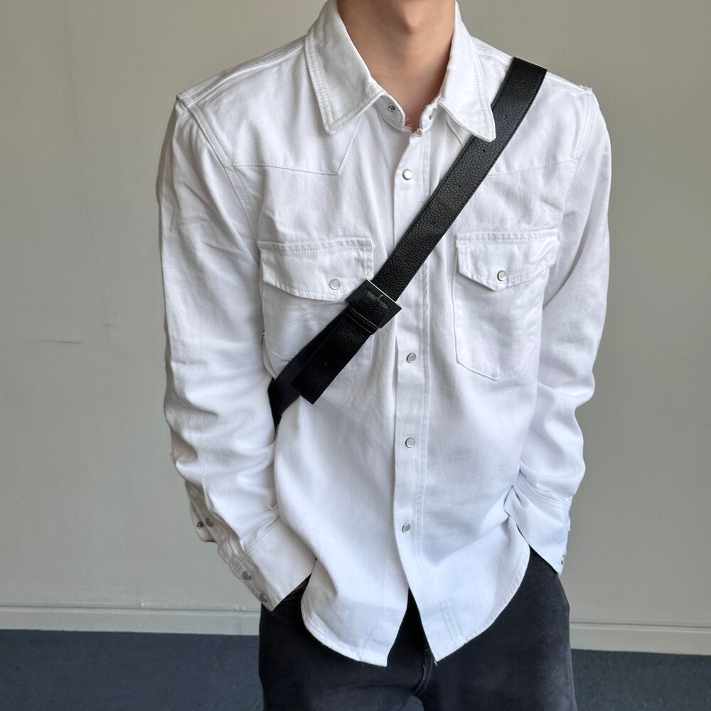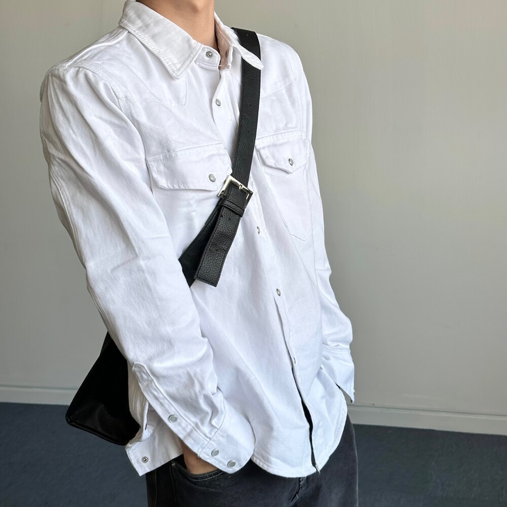 웨스턴 무드를 가진 청자켓정도의 두께감을 가지고 있는 셔츠에요 :)