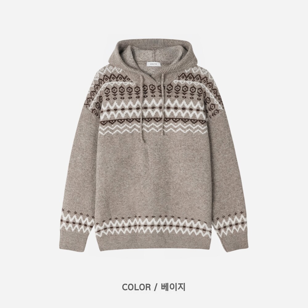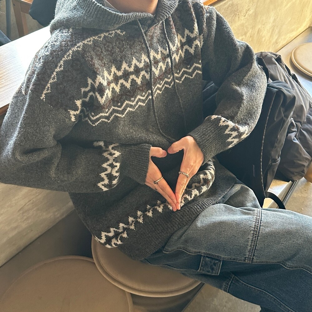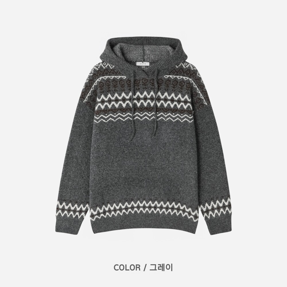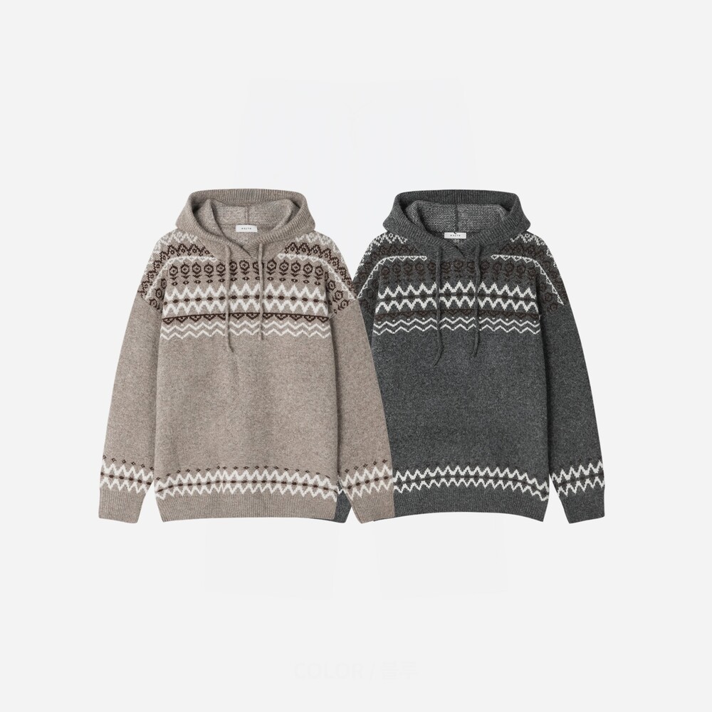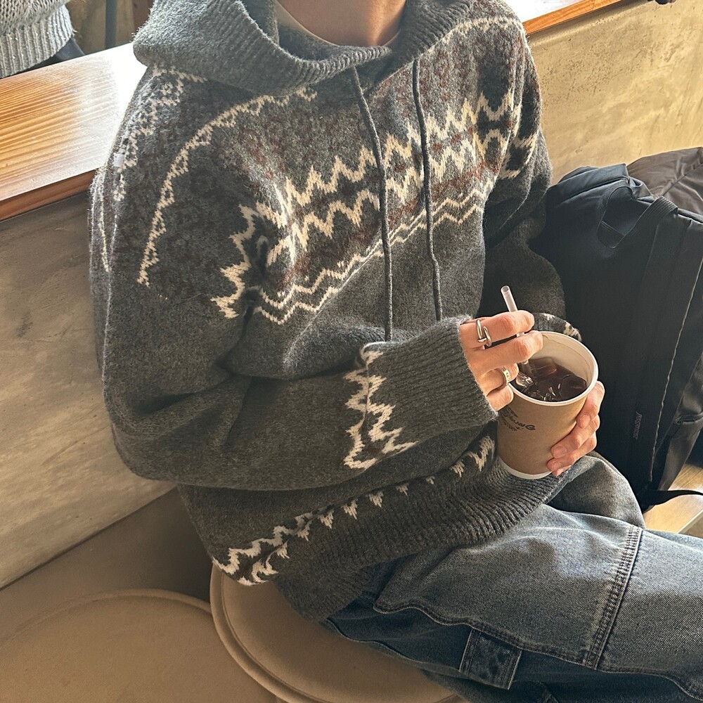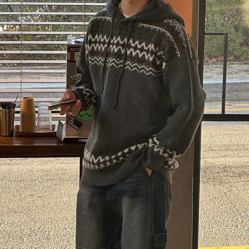 캐주얼한 코위찬 패턴이 니트에 찰떡인 후드 !