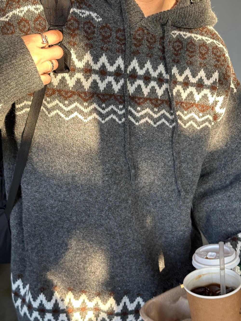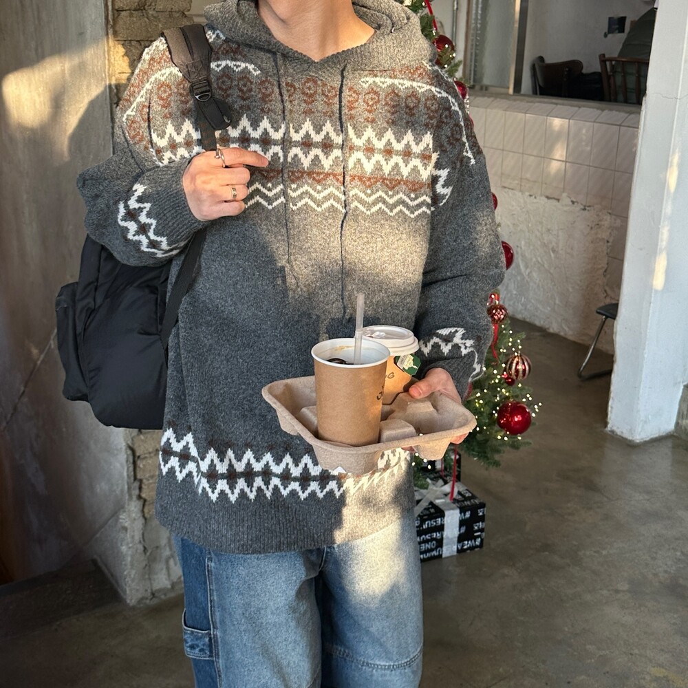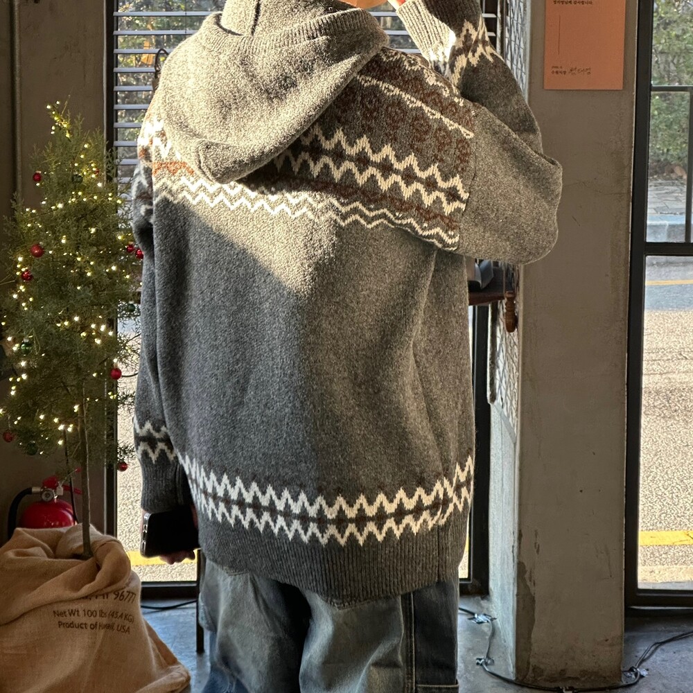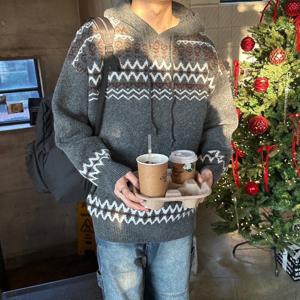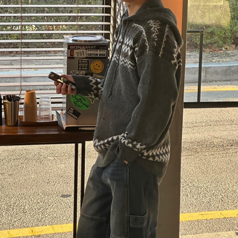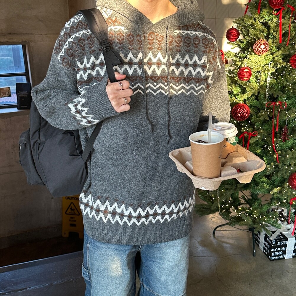 캐주얼한 코위찬 패턴이 니트에 찰떡인 후드 !