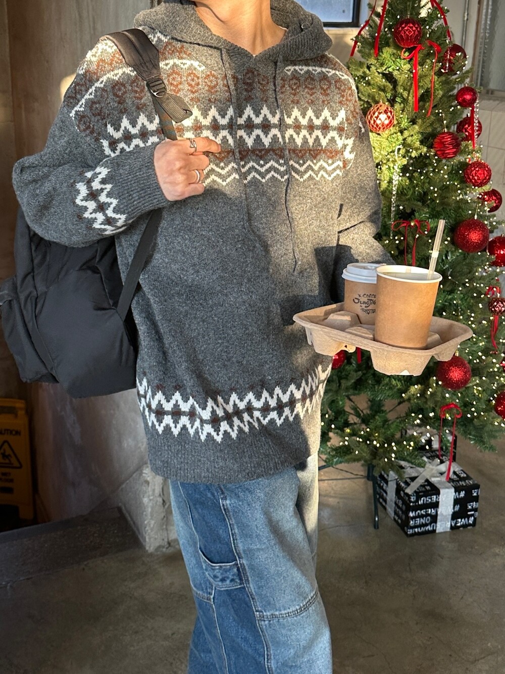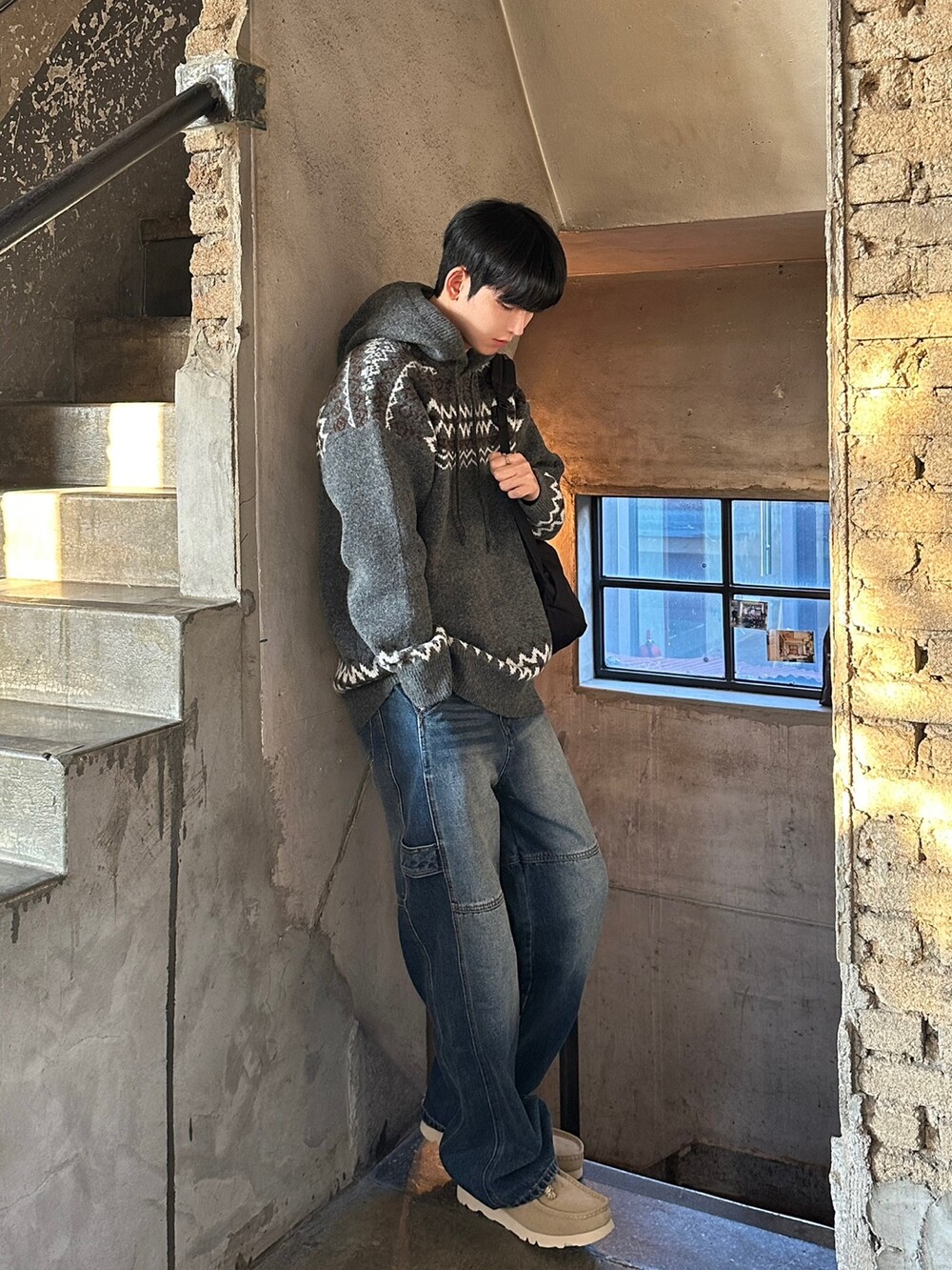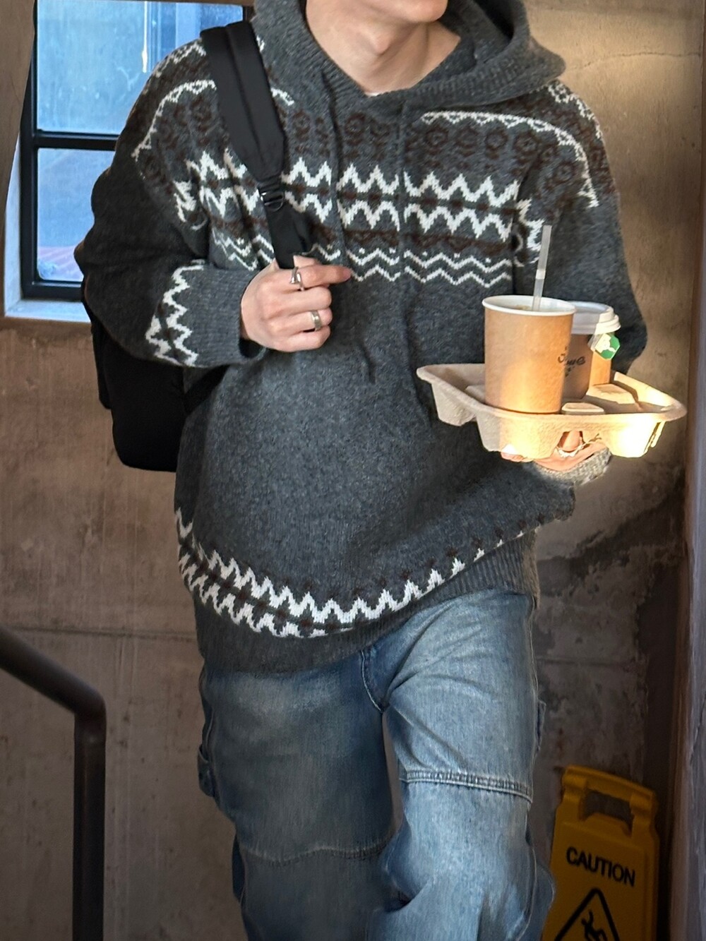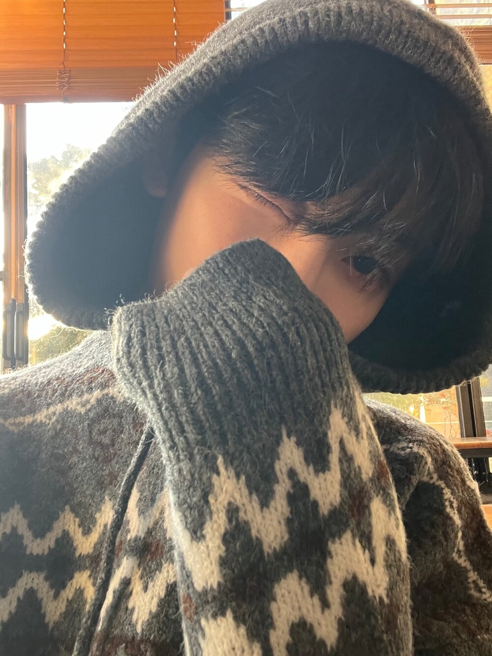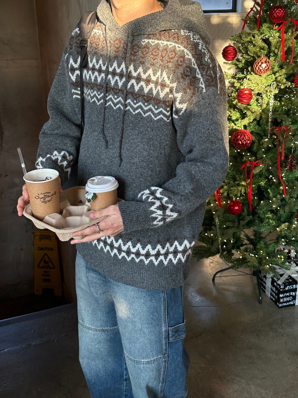 캐주얼한 코위찬 패턴이 니트에 찰떡인 후드 !