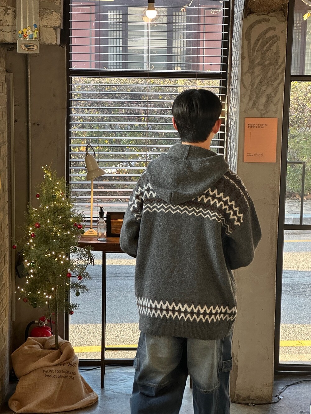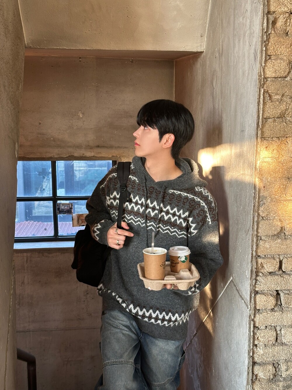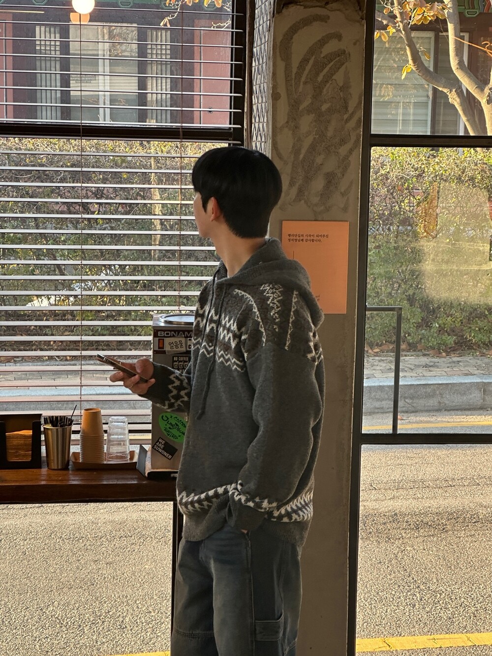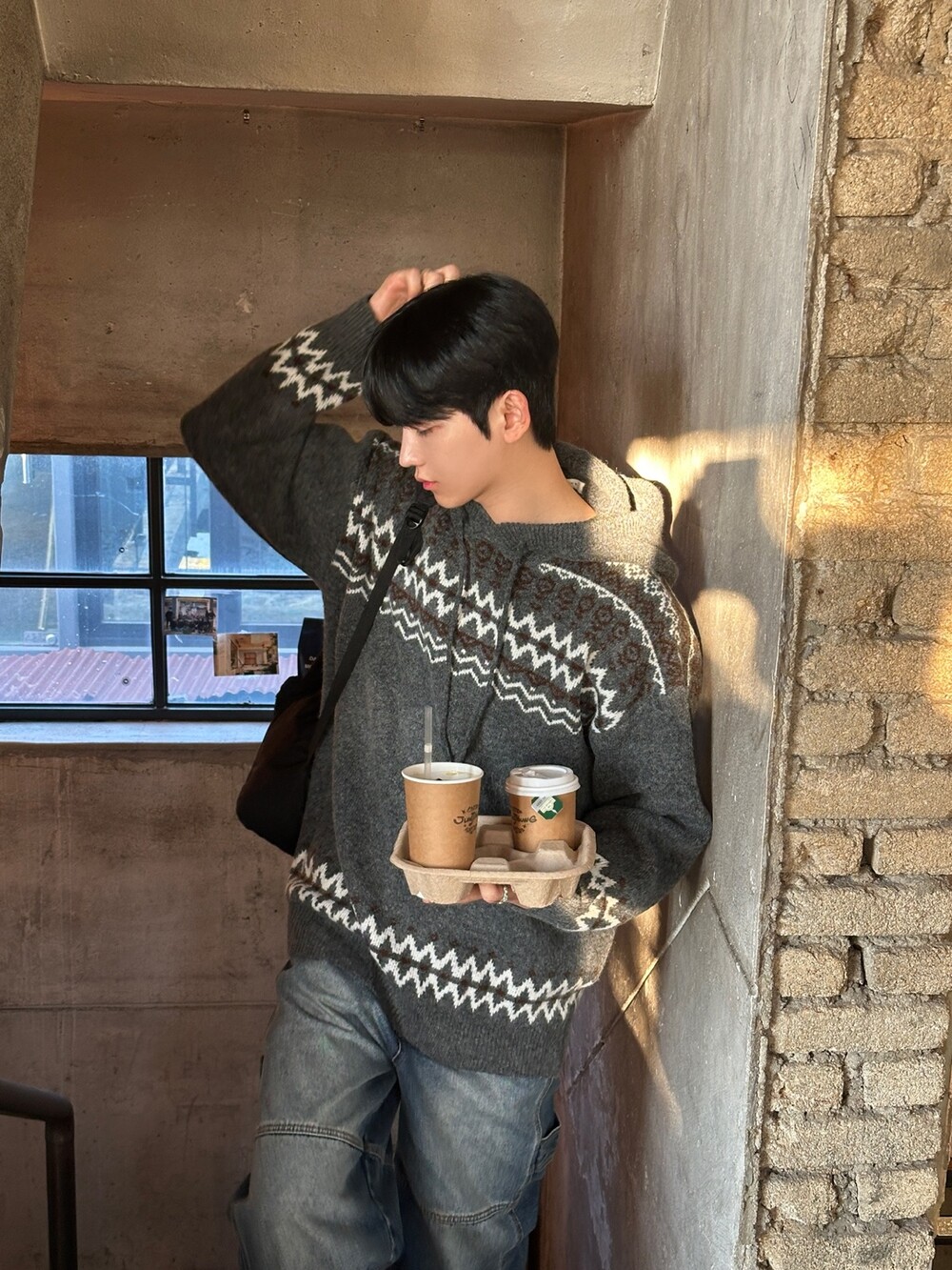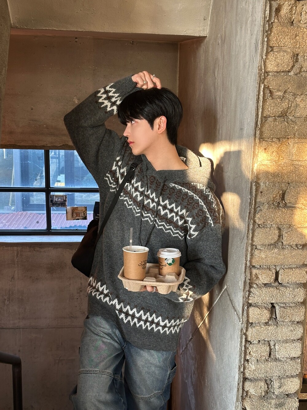 캐주얼한 코위찬 패턴이 니트에 찰떡인 후드 !