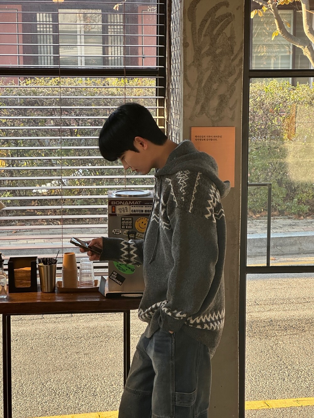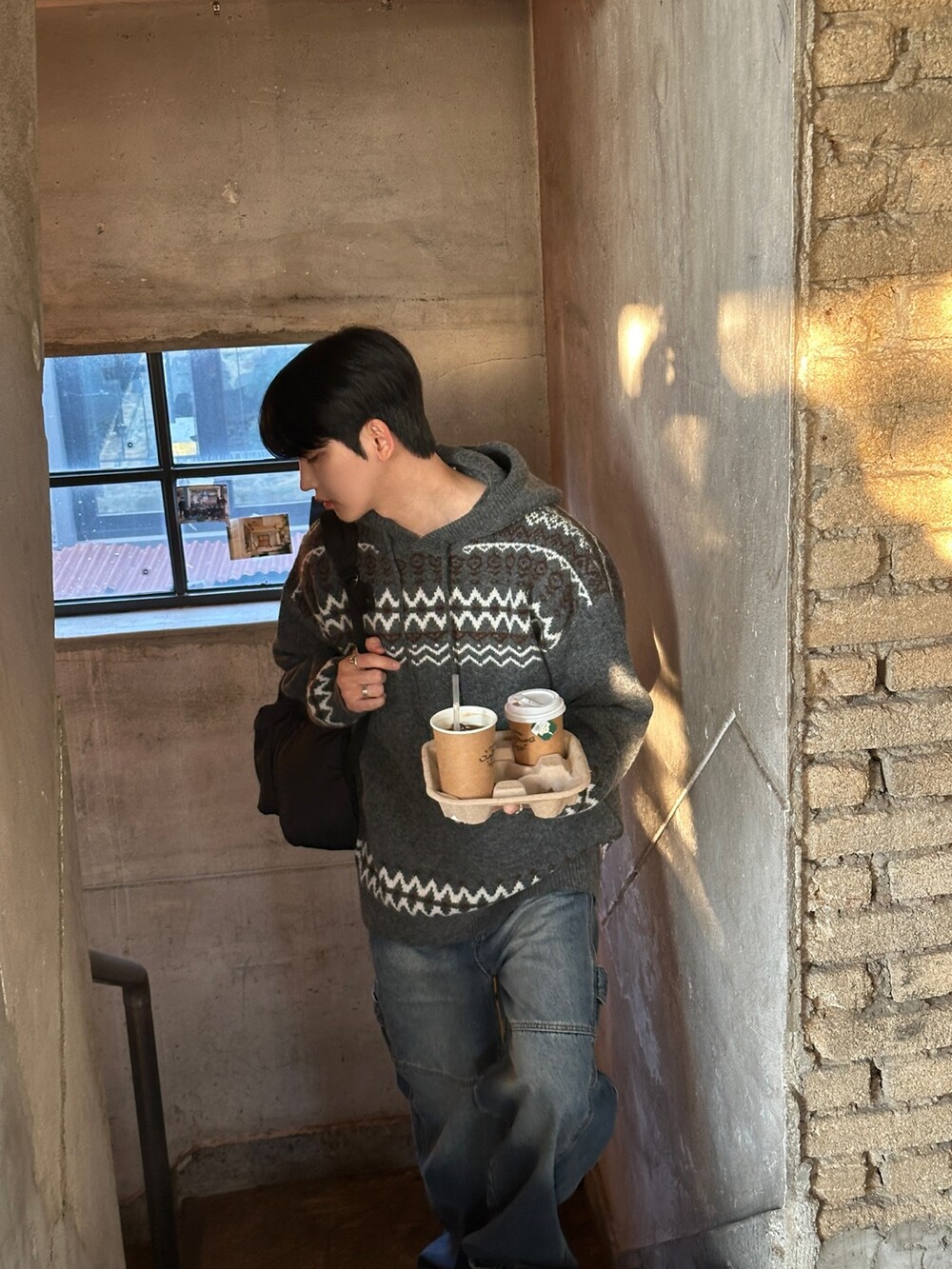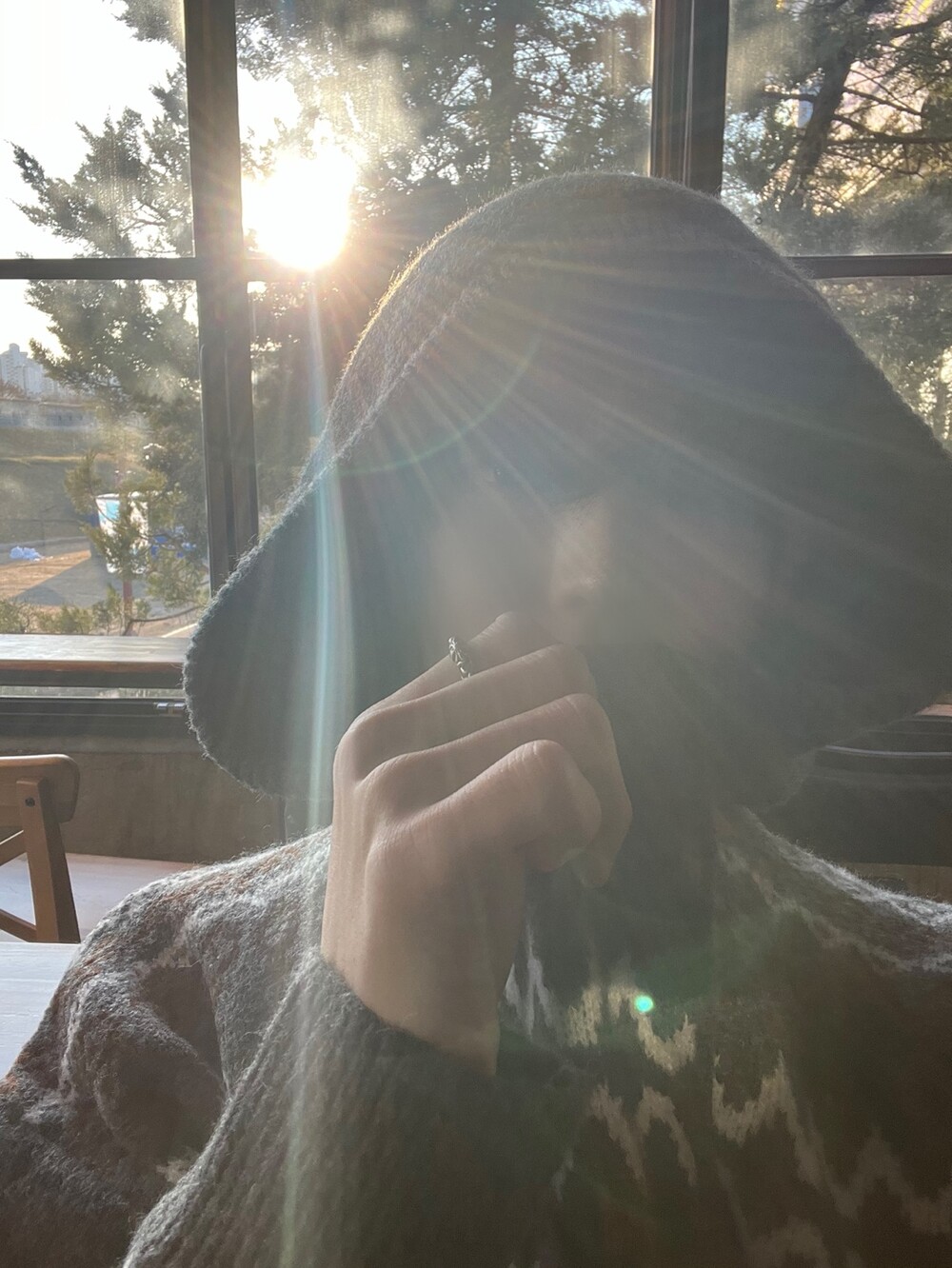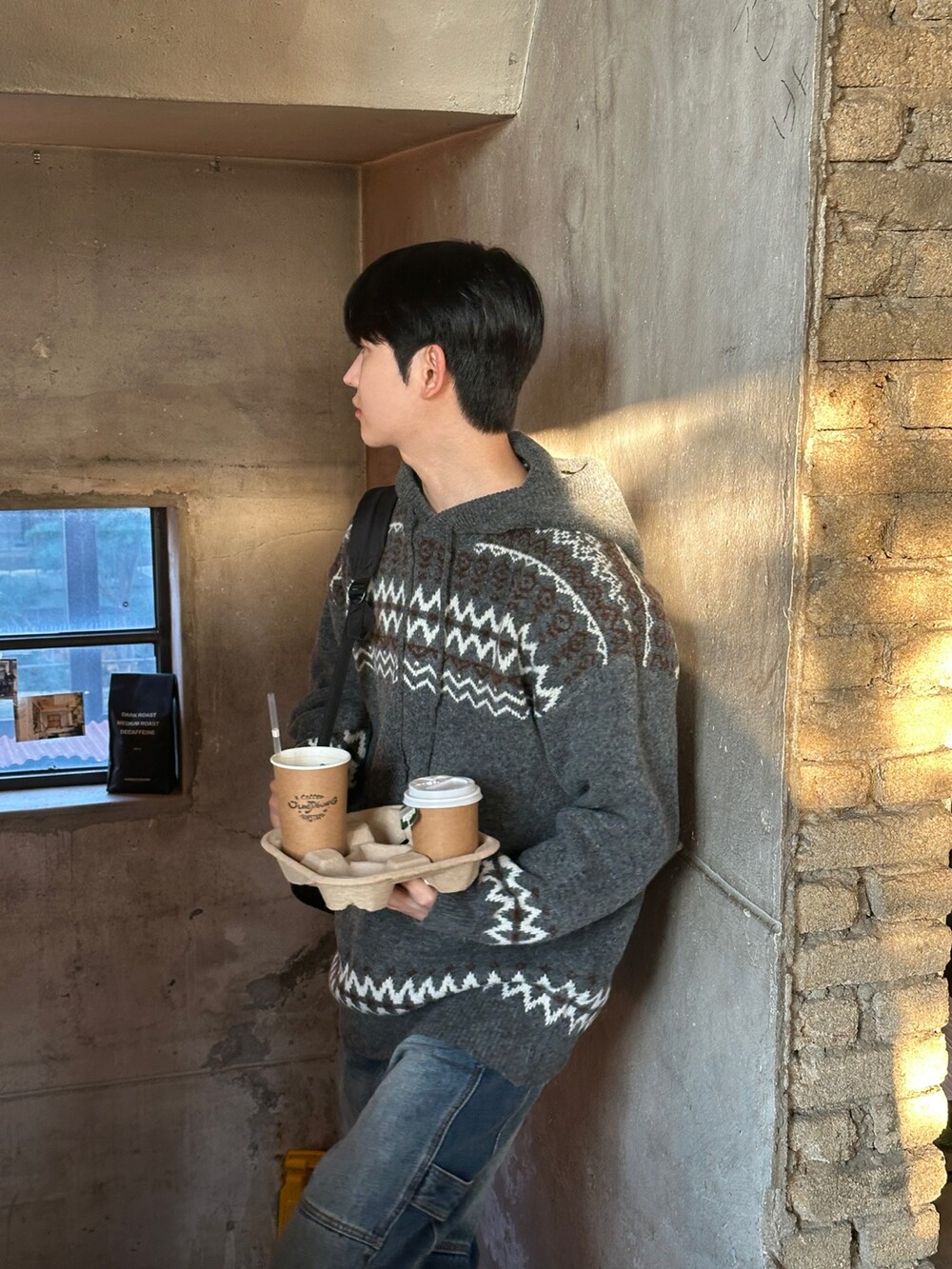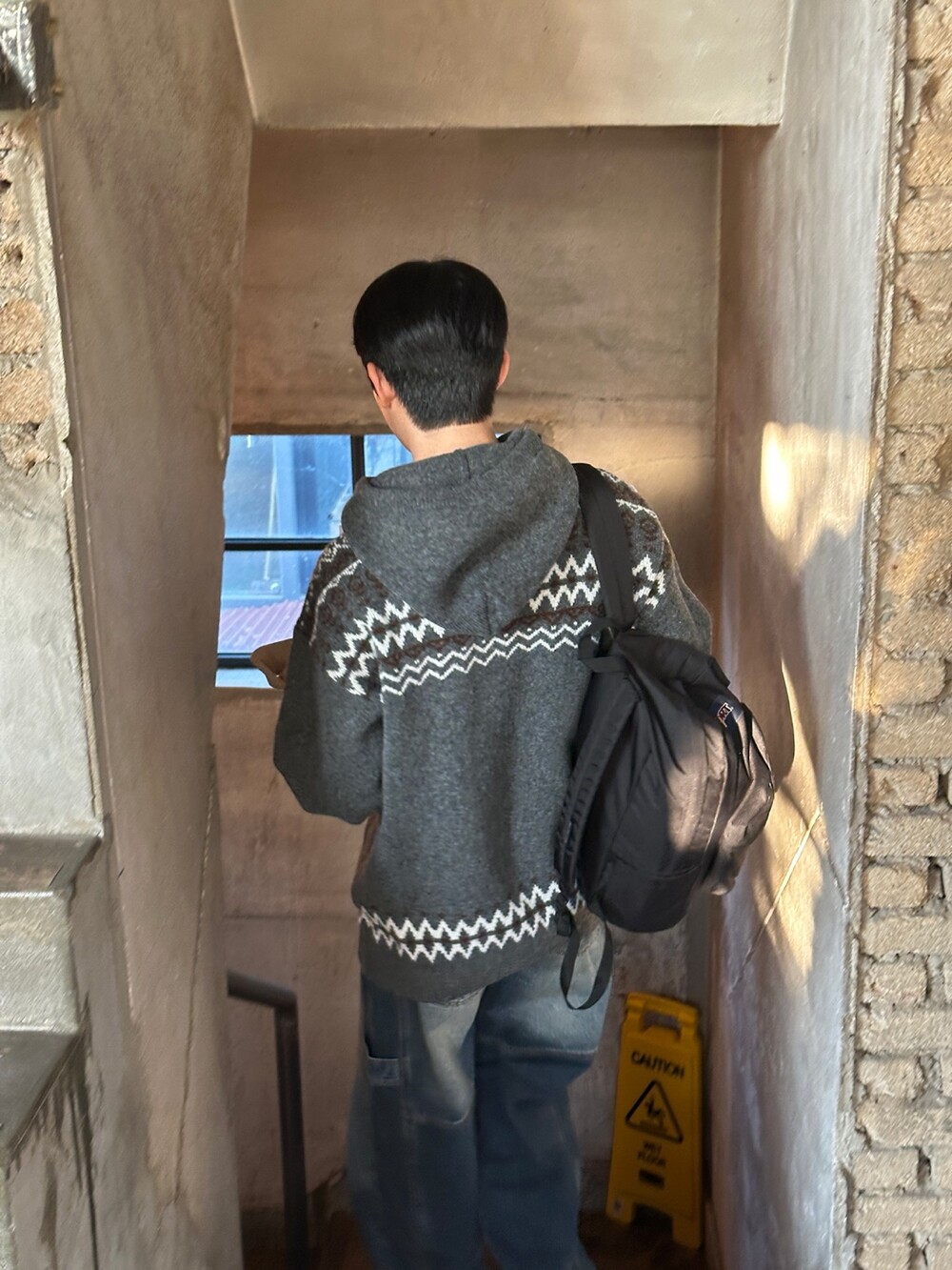 캐주얼한 코위찬 패턴이 니트에 찰떡인 후드 !
