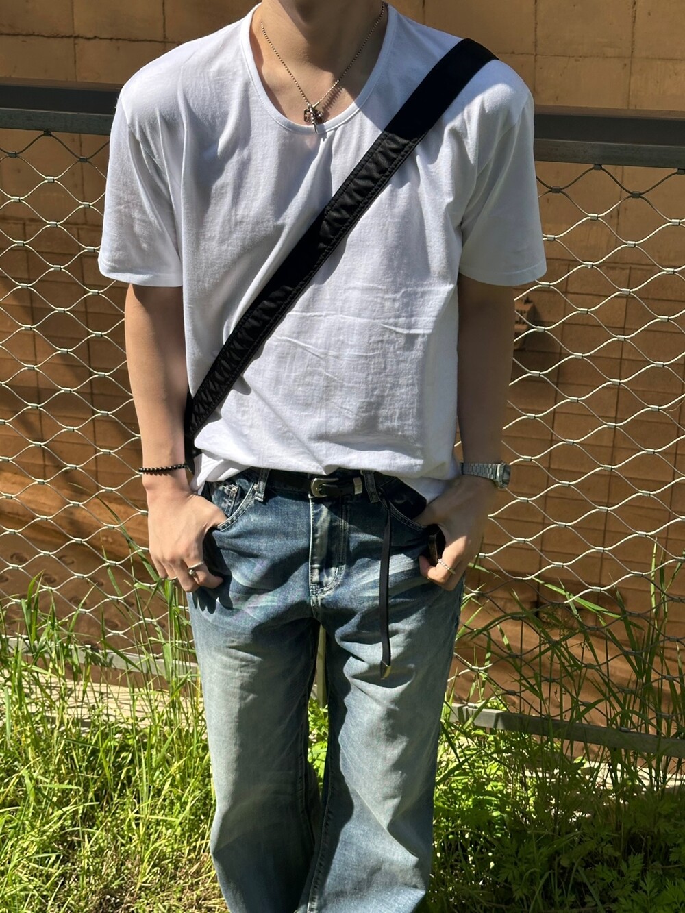 유넥이 부담스러운 분들도 착용하기 좋은 티입니다