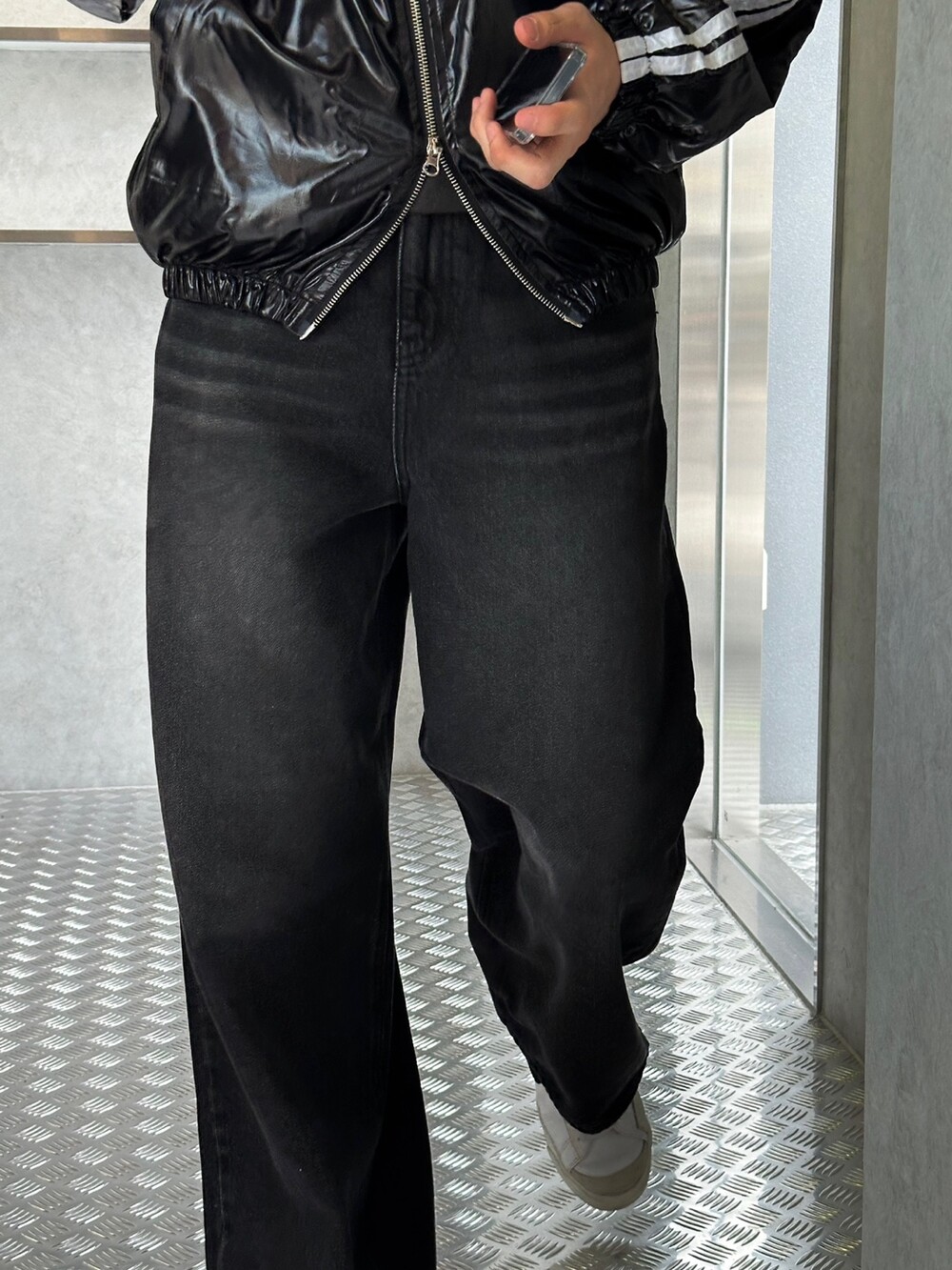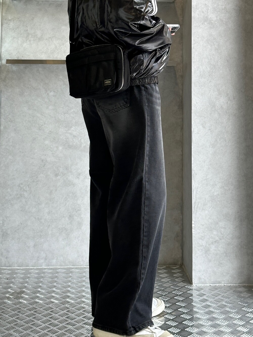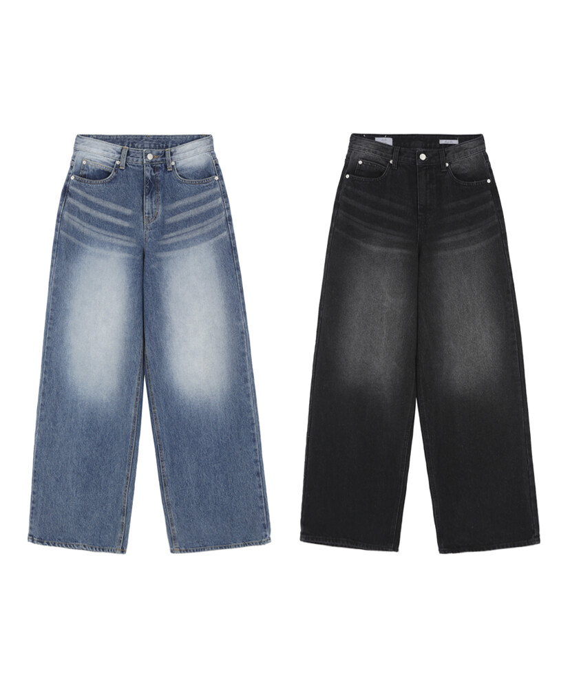 깔끔하게 들어간 캣 브러쉬 워싱에 와이드하고 롱한 기장감의 실루엣 때문에